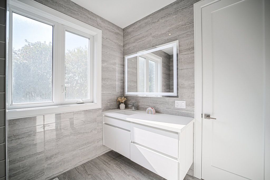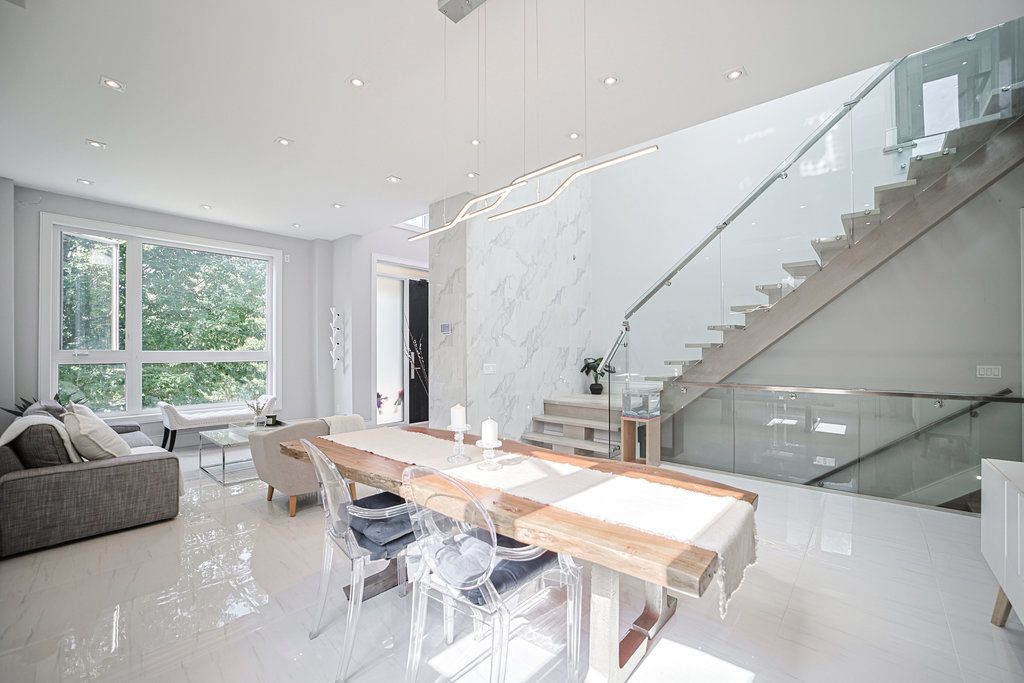 Stunning custom-built modern home in the desirable rouge neighborhood, offering over 4320sqft+1550sqft=5870sqft of living space of luxury living on a private, tree-lined lota perfect candidate for a future garden suite (subject to approvals). The 2nd floor has never been occupied and is brand new! This 5-year-old home features an open-concept layout with oversized windows, european kitchen with s/s appliances, quartz countertops throughout, and electrically heated flooring in all tiled areas (kitchen, living room & above-grade bathrooms). Enjoy comfort year-round with a hydronic heated basement slab, powered by 2 recirculation pumps on dual combi-boilers. Includes two self-contained basement apartments with separate entrances. One unit was built to legal standards with soundproofing, resilient channel, large windows, separate hvac, and hardwired smoke/co2/strobe system. The second apartment also features soundproofing and resilient channel, with two access points. Both the main floor and second-floor primary bedrooms are soundproofed. Each apartment has its own laundry, in addition to laundry on the main floor and second floor. Exceptional finishes include 8-ft custom wood doors, 6 wood baseboards, and consistent high-end materials throughout. Multiple balconies plus roof access via pull-down hatchfuture potential for a glass-enclosed rooftop terrace (permits required). Professionally landscaped with large armour stones, interlock front & back, and landscape lighting. Fully equipped smart home with motorized blinds, smart switches, interlock lighting, and more. Security system-ready with roughed-in window contacts, motion sensor wiring, and access points. A rare opportunity to own a high-end, multi-functional home in a sought-after natural setting. Endless possibilities + revenue generating.
