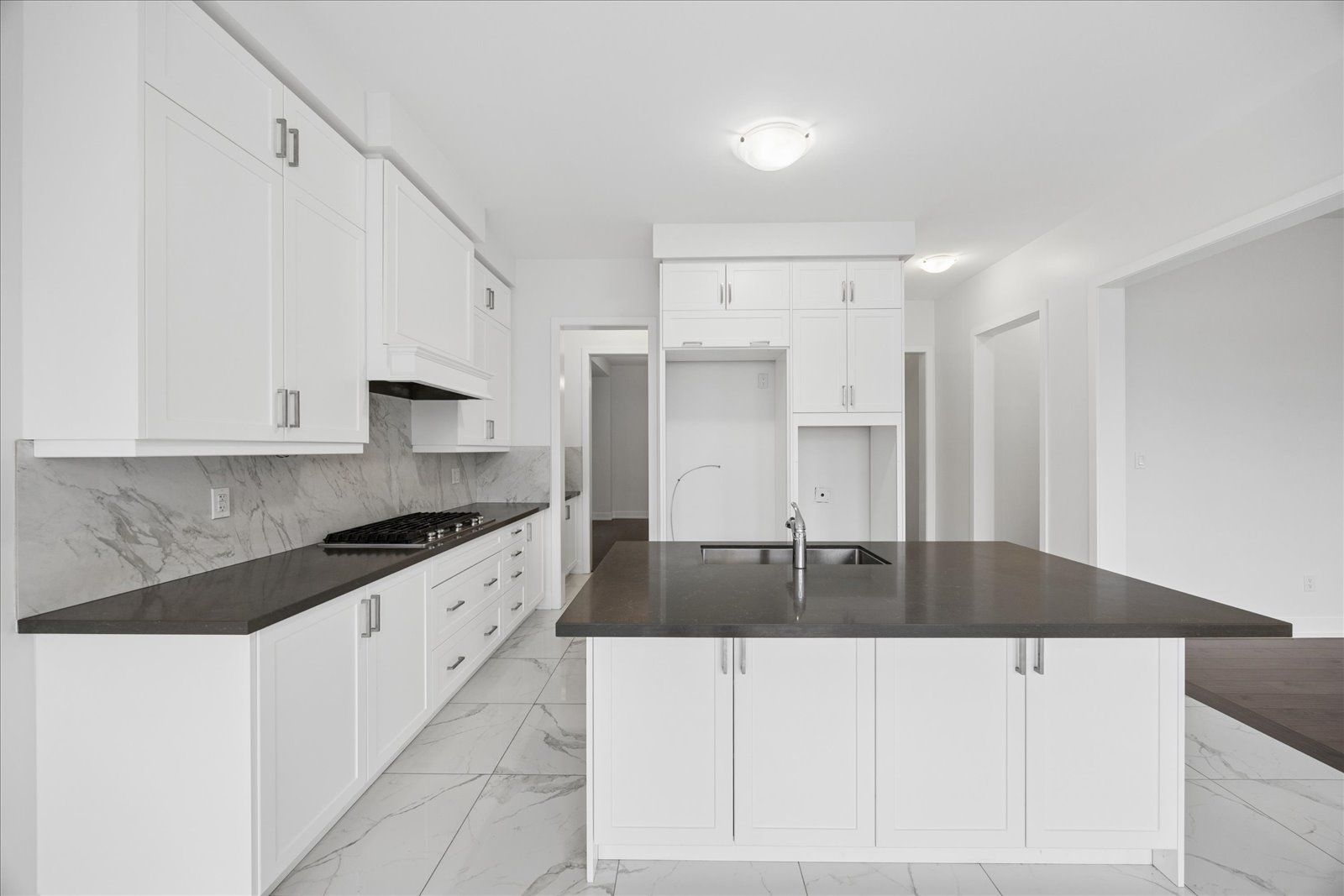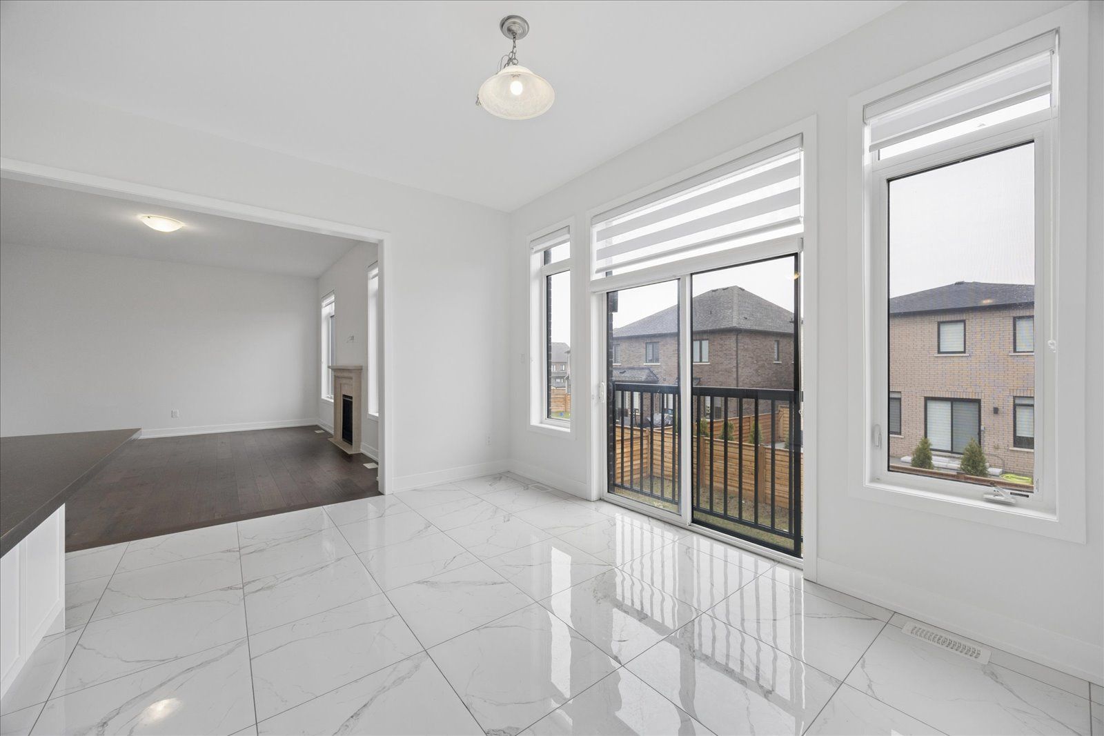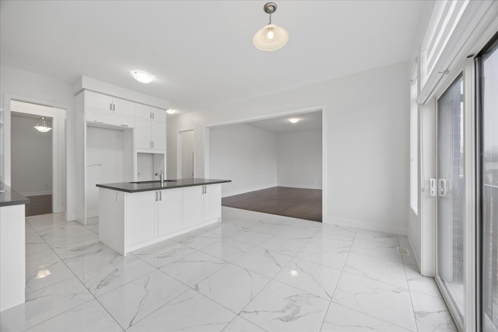 • Open concept layout with hardwood and marble floors throughout.