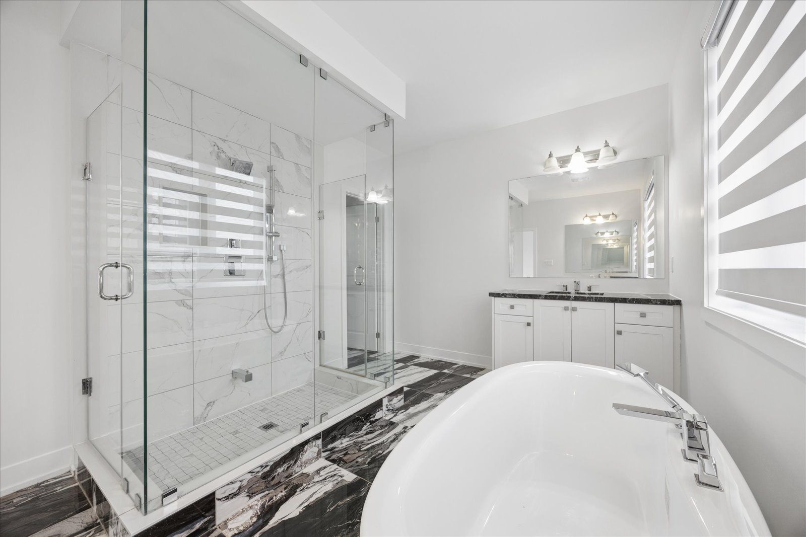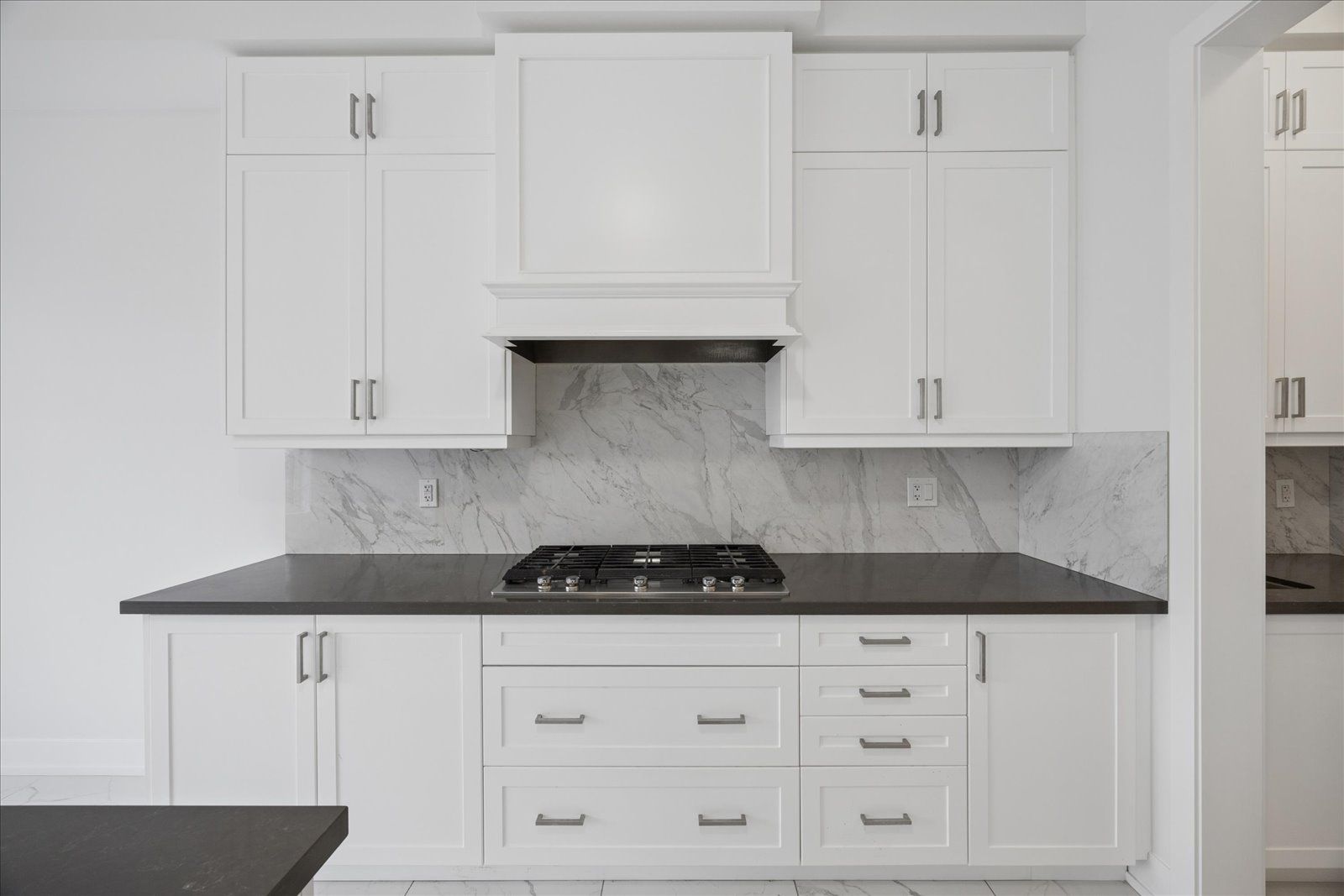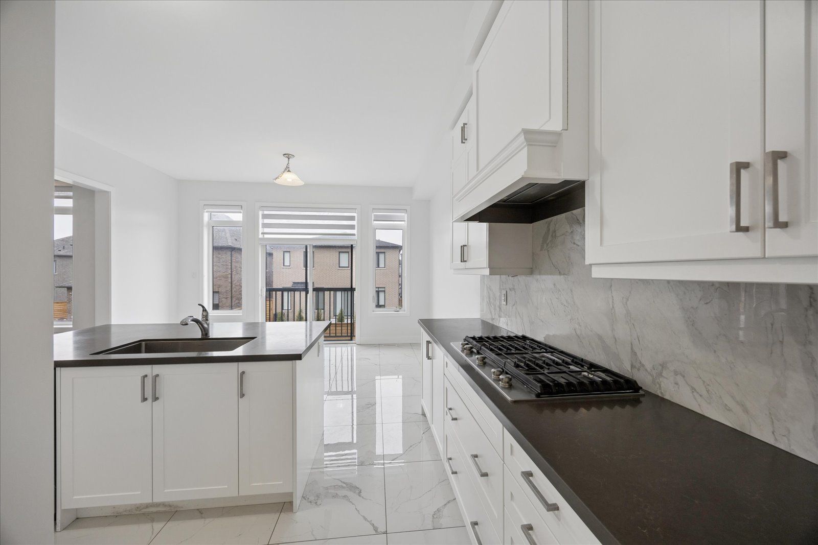 • Open concept layout with hardwood and marble floors throughout.