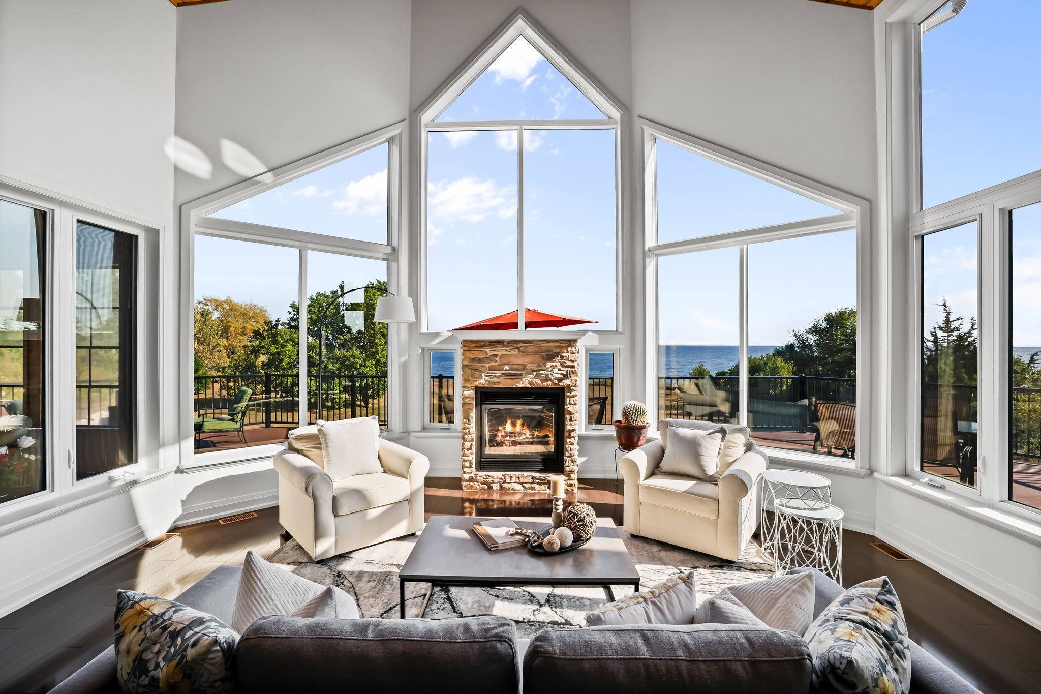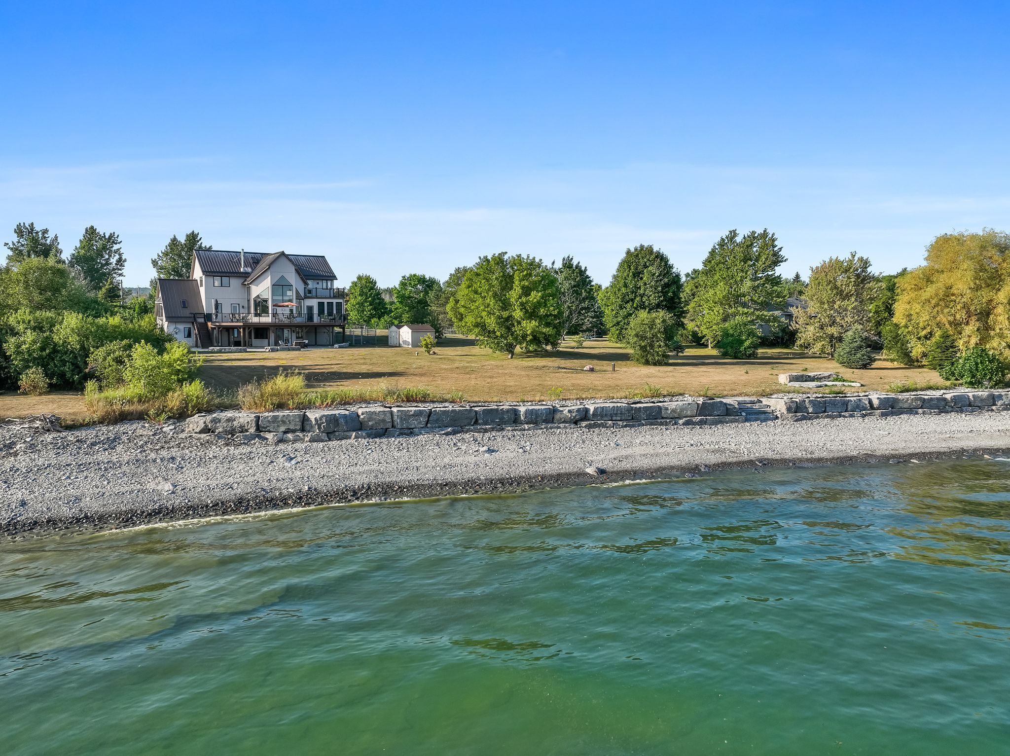 Paradise on 180 ft of pristine lake ontario waterfront! 263 lakeshore road, brighton-this executive waterfront residence on nearly 3acres of privacy with 4 bed and 6 bath, less than an hour from the gta, blends modern elegance with natural beauty, creating a true entertainer's paradise. Enjoy sprawling outdoor spaces, uninterrupted shoreline vistas & tranquil mornings by the water's edge. Host unforgettable gatherings against shimmering sunsets, or relax in serene luxury. The main floor features ceiling-to-floor windows framing panoramic lake views, flooding the great room with light. Striking gas fireplace anchors the space, while the open-concept design flows effortlessly into the chef-inspired kitchen and dining area, seamlessly connecting to the screened-in sunroom and expansive composite deck. A versatile wing offers a spacious area ideal for an in-law suite or games and entertainment lounge, complete with a 3-pc bath and separate entrance. A separate office and laundry room complete the main floor. Upstairs, the primary suite is a private sanctuary with a juliette balcony overlooking the water... Perfect for evening wine under the stars, spa-inspired ensuite with double walk-in shower and massive wi closet. A two-sided fireplace connects the suite to the loft, adding warmth and architectural drama. 3 additional bedrooms provide ample space for family or guests. The lower level offers a walkout to a covered patio, extending living space outdoors. Thoughtful features include a kitchenette in rec room, cold storage, dog run & pet grooming mud room plus direct access to the double car garage-ideal for both convenience and functionality. Efficient geothermal heat/cool system. Minutes from amenities, marinas, conservation parks, shopping, waterfront dining, and a short drive to cobourg or prince edward county's award-winning wineries, white sand beaches & acclaimed restaurants. This isn't just a home - it's your exclusive gateway to the ultimate waterfront lifestyle!