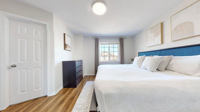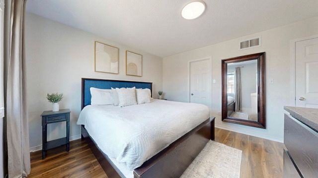 Welcome to this move-in ready, turnkey home in the highly sought-after dempsey neighbourhood, showcasing premium upgrades and thoughtful renovations throughout! Nestled on a quiet, low-traffic street, it offers great curb appeal with a welcoming covered front porch - perfect for relaxing in peaceful surroundings - no sidewalk to maintain, and a fully fenced private backyard ideal for entertaining. The main floor features a bright, open-concept living and dining area with sliding doors to a private patio and backyard, creating seamless indoor-outdoor living. The kitchen is equipped with s/s appliances, a modern backsplash, refreshed cabinetry, a large window overlooking the yard, and a convenient pass-through to the main living space. A spacious front foyer offers natural light and a walk-in closet with built-in shelving, along with an ecobee smart thermostat and a stylish 2pc powder room with an updated quartz vanity. Upstairs, the primary bedroom easily accommodates a king-size bed and includes a generous walk-in closet with a large window, plus semi-ensuite access to a 4pc bathroom with a whirlpool tub and updated quartz vanity. All three bedrooms feature large windows and ample closet space, providing bright and functional living for the whole family. The finished basement, with a separate side entrance, adds nearly 600 sqft of additional living space and includes a 3pc bathroom and wet bar - ideal for a media room, home office, or in-law suite. Additional highlights include a new furnace (2025), a cold room, utility room, enclosed laundry area, offering plenty of additional storage space. The long driveway and garage provide parking for 3 vehicles, with an automatic gdo and interior garage access for added convenience. Located within walking distance to public transit, go train, shopping, medical services, parks, and top-rated schools, this home delivers the perfect blend of convenience, comfort, and modern living - everything you need is right at your doorstep!