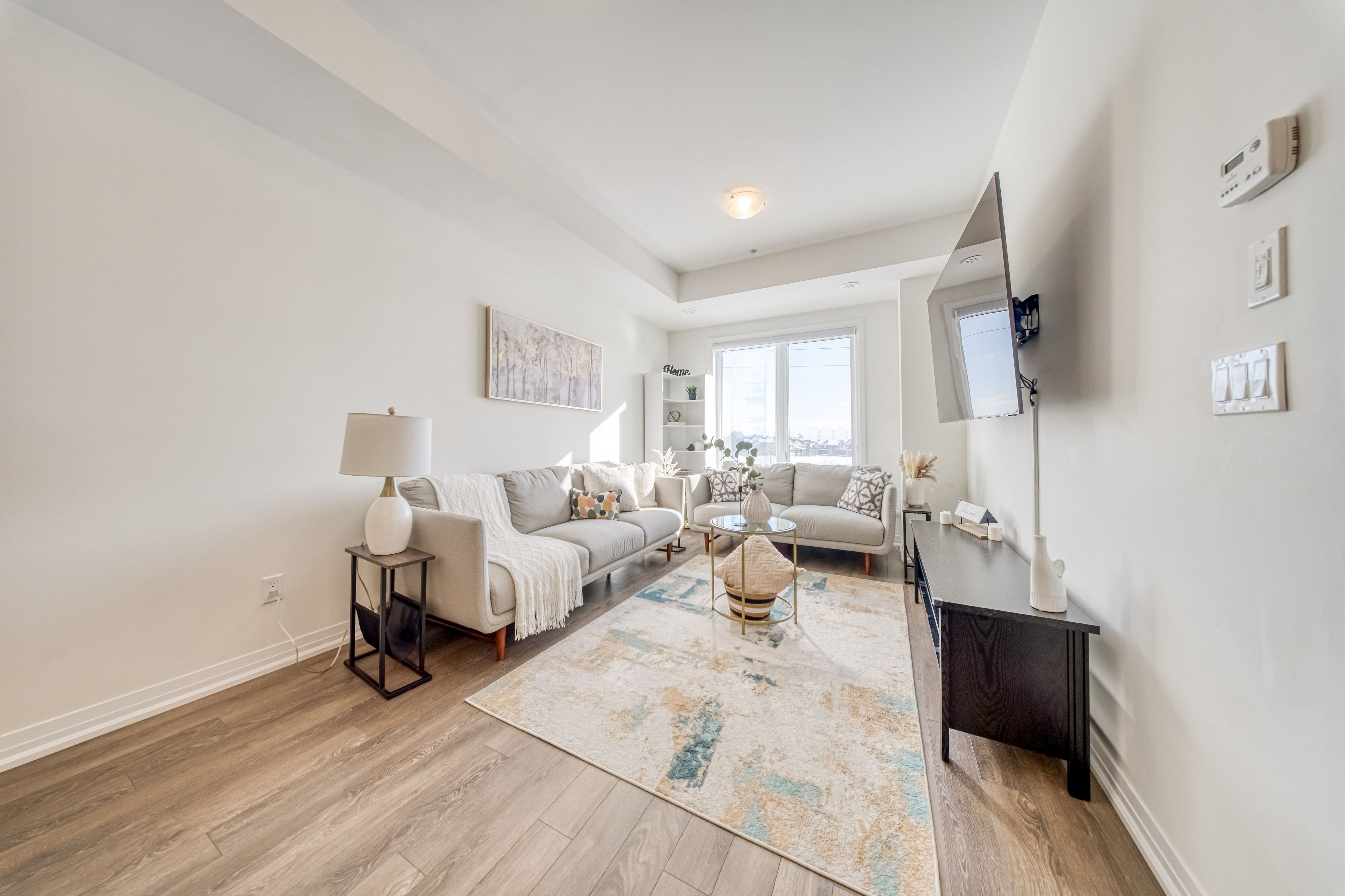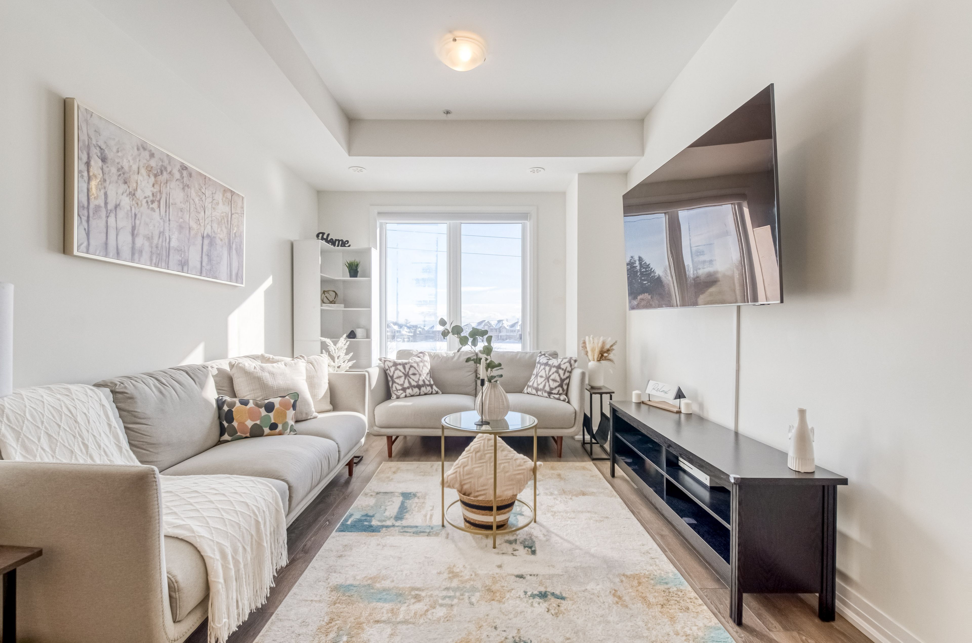 • Open-concept main living area filled with natural light from oversized windows.