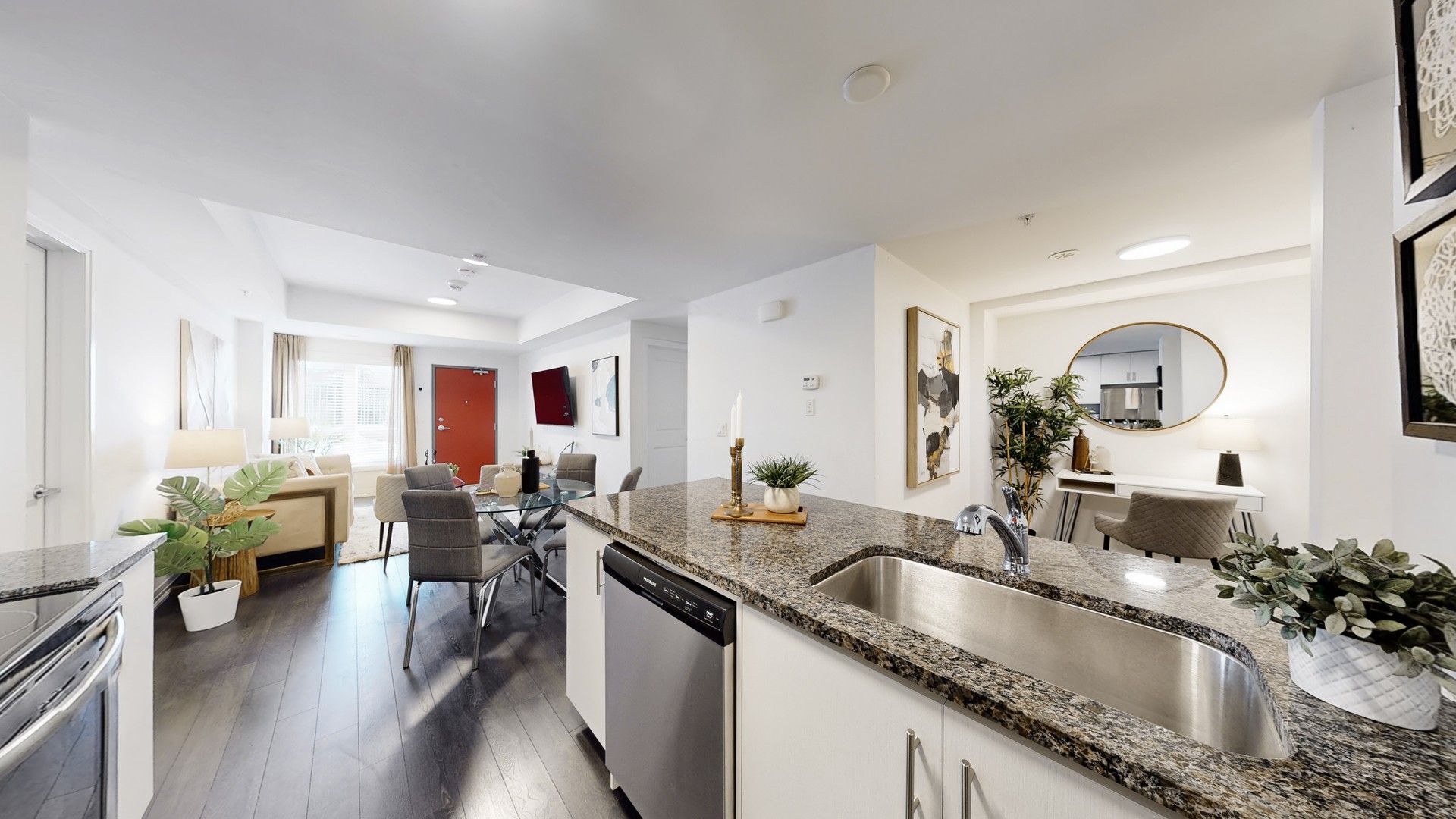 • Open-concept living area with 9ft ceilings, perfect for entertaining and relaxing.