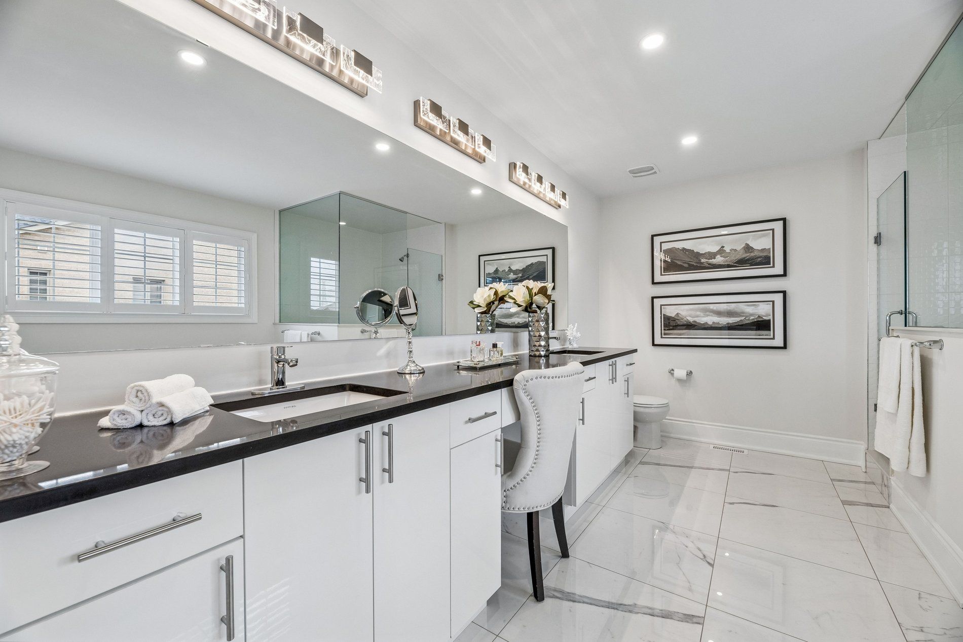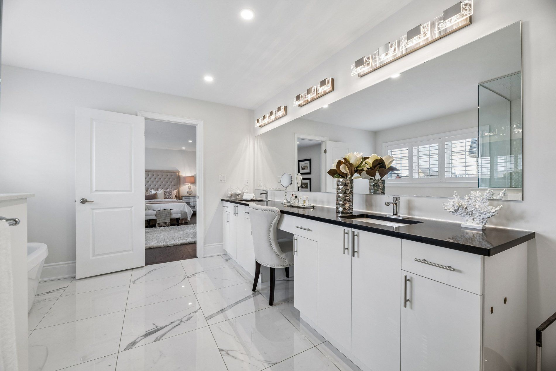 • Spacious bedrooms all with direct bathroom access and California shutters.