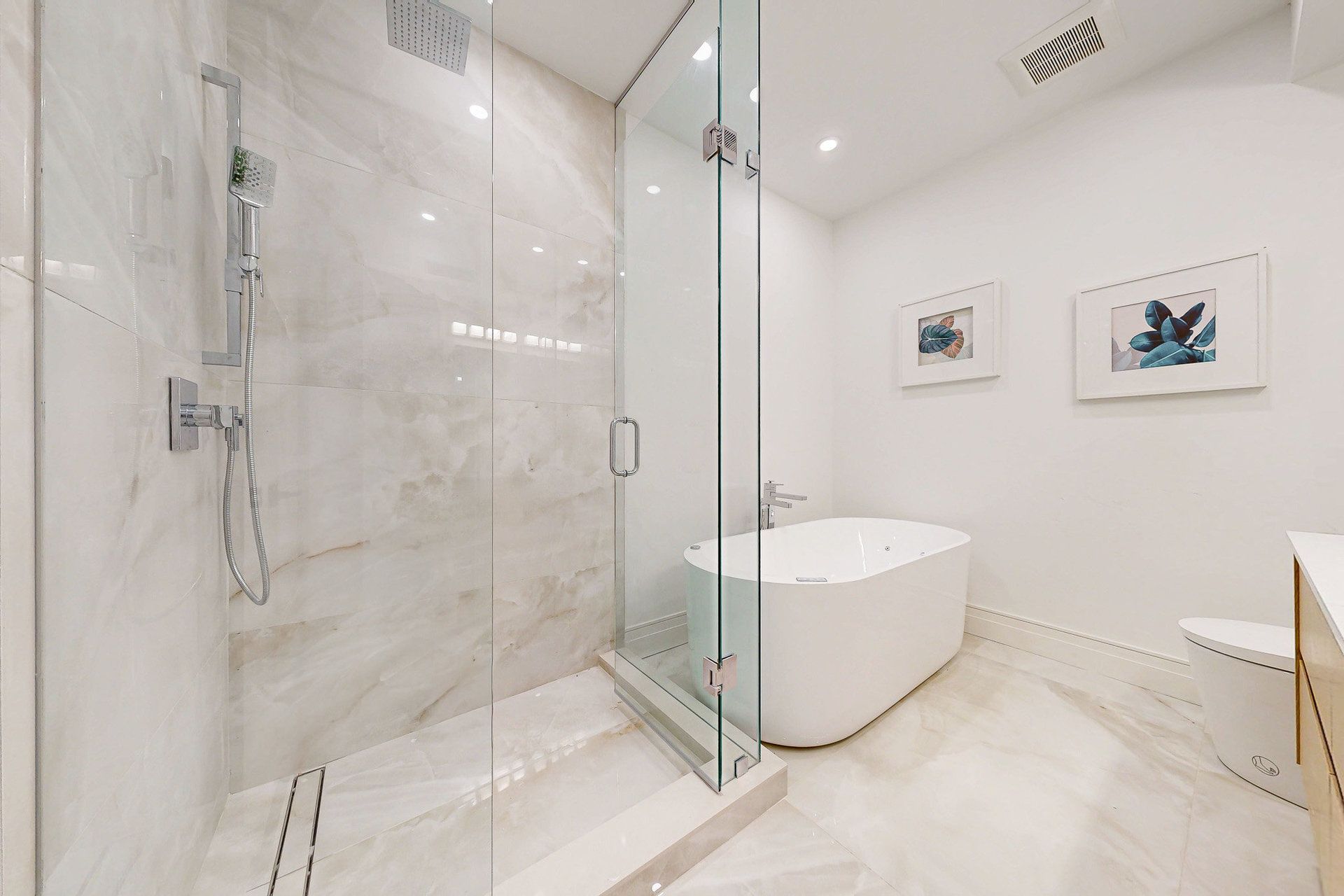 Welcome to 2639r dundas st unit 2, newly custom built 2600 sq ft sophisticated luxury townhouse tucked just behind dundas on a private lot, exclusive complex of only4 units. Features 356 sq ft roof top deck with skyline/cn tower views, a private backyard and a glass balcony off the kitchen to enjoy the outdoors. Refined craftsmanship and superior high-end finishes throughout sure to impress, featuring an open floor plan, sleek custom made 15 ft kitchen 9x3 ft quartz island with waterfall feature , floor to ceiling windows. Airy bright family room with large window, media wall, fireplace and open shelves. Master bedroom retreat with floor to ceiling windows, 12x5 walk-in closet with custom built in cabinets, spa like bath features deep whirlpool tub, glass shower with waterfall, and heated floors. Bedrooms 2&3 both have double built in closets and share a 4-pc bath. Features 12 feet ceilings on main, 10 feet on second, and 9 feet on third. Skylight over staircase brings natural light to all levels. Welcoming foyer with 6x4 ceramic tiles with heated floors, floor to ceiling closet/cabinets and direct access to a 220 sq foot garage. Impressive ground level recreation room with12 foot ceilings, 3pc bath, with direct access to private backyard, this room would also suit a home office, gym or nanny suite. These are just some of the exceptional features of this home, full list on feature sheet. Prime junction located within a short walk to bloor subway and go train line to downtown or airport, and just minutes to roncesvalles village, high park, and bloor west village shops, restaurants and great school district. Truly unique opportunity and great value that's almost impossible to find. Note photo's used are of model unit 4 all units identical except a few interior details (unit4 end unit sold $1. 780. 000) your opportunity awaits to purchase one of the remaining 3 units!!!