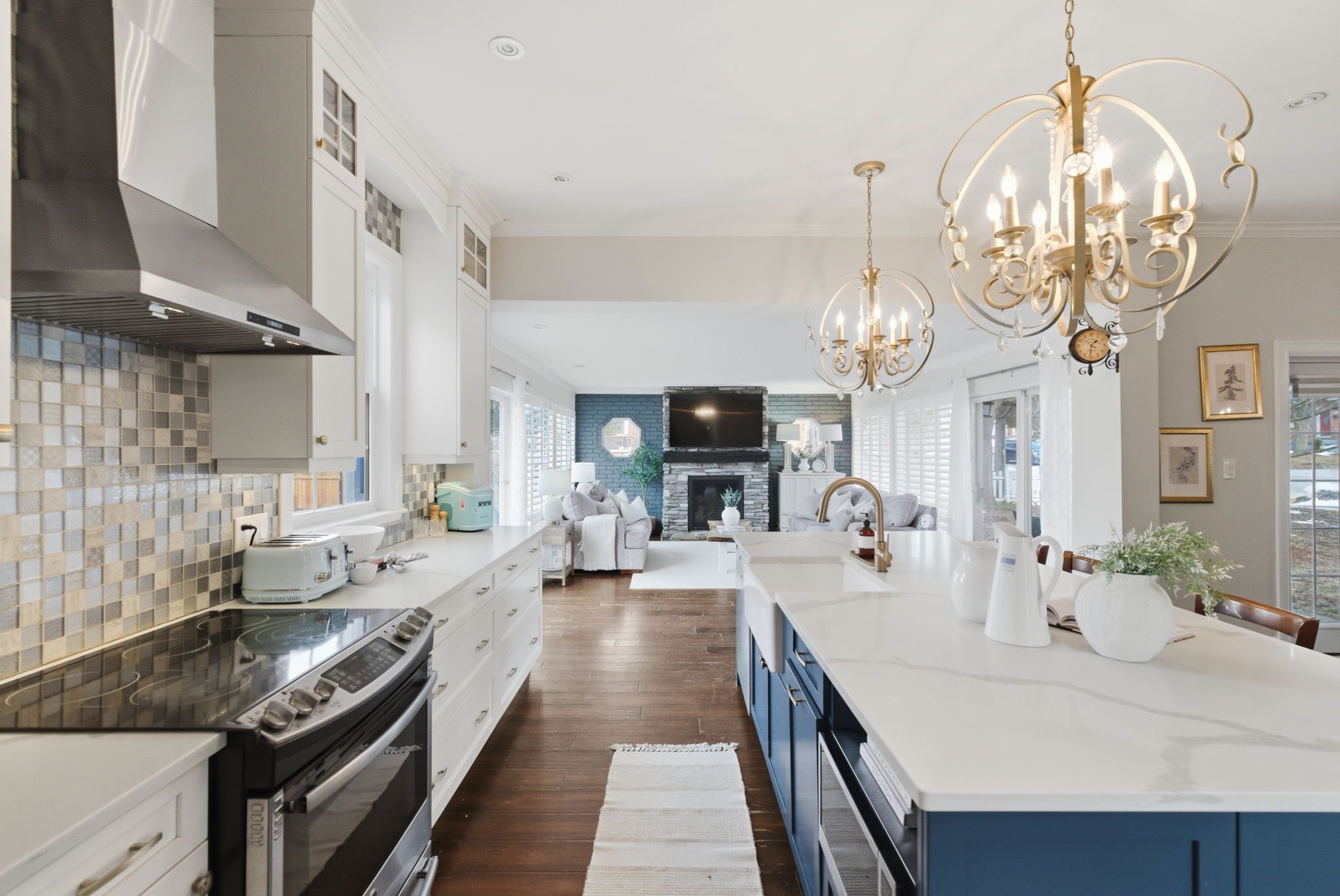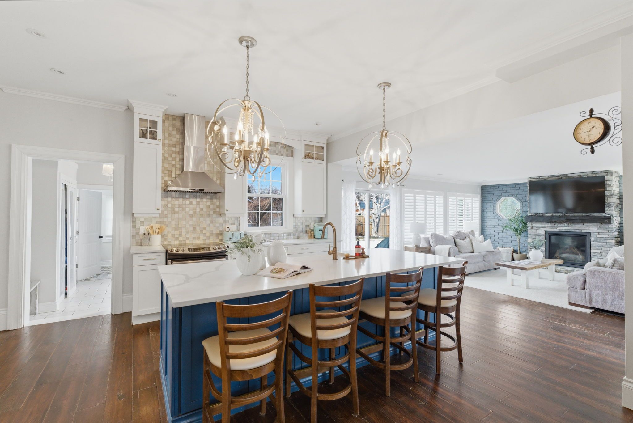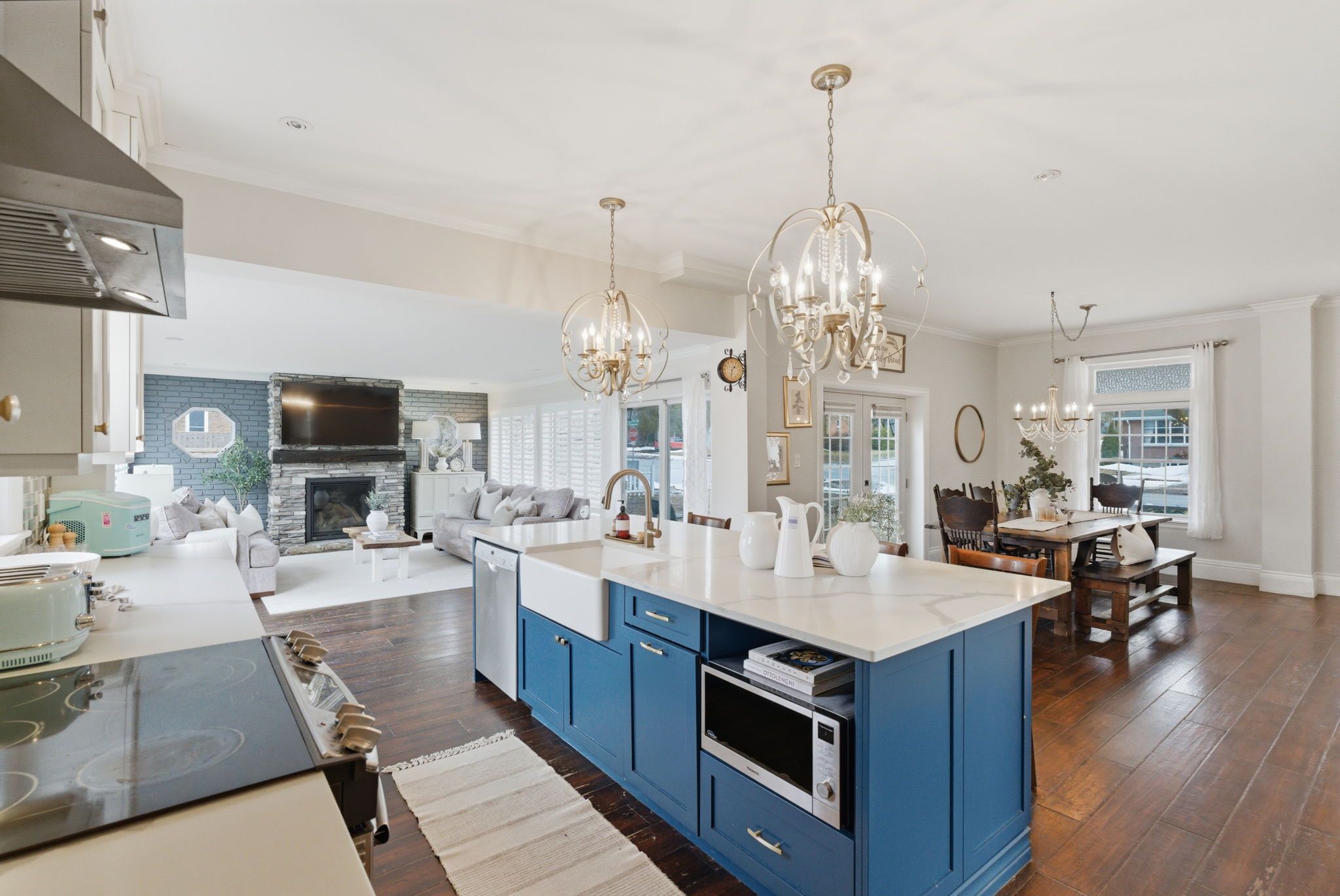 • Bright open-concept design featuring a spacious custom kitchen and family room.