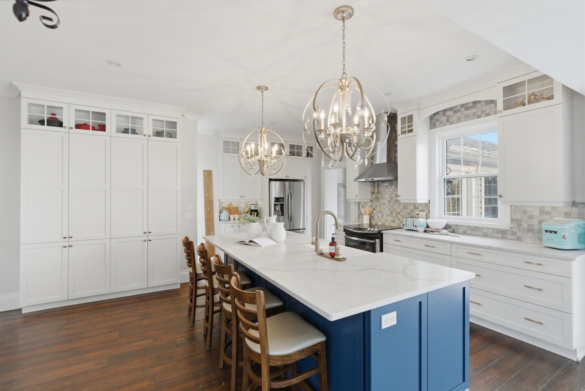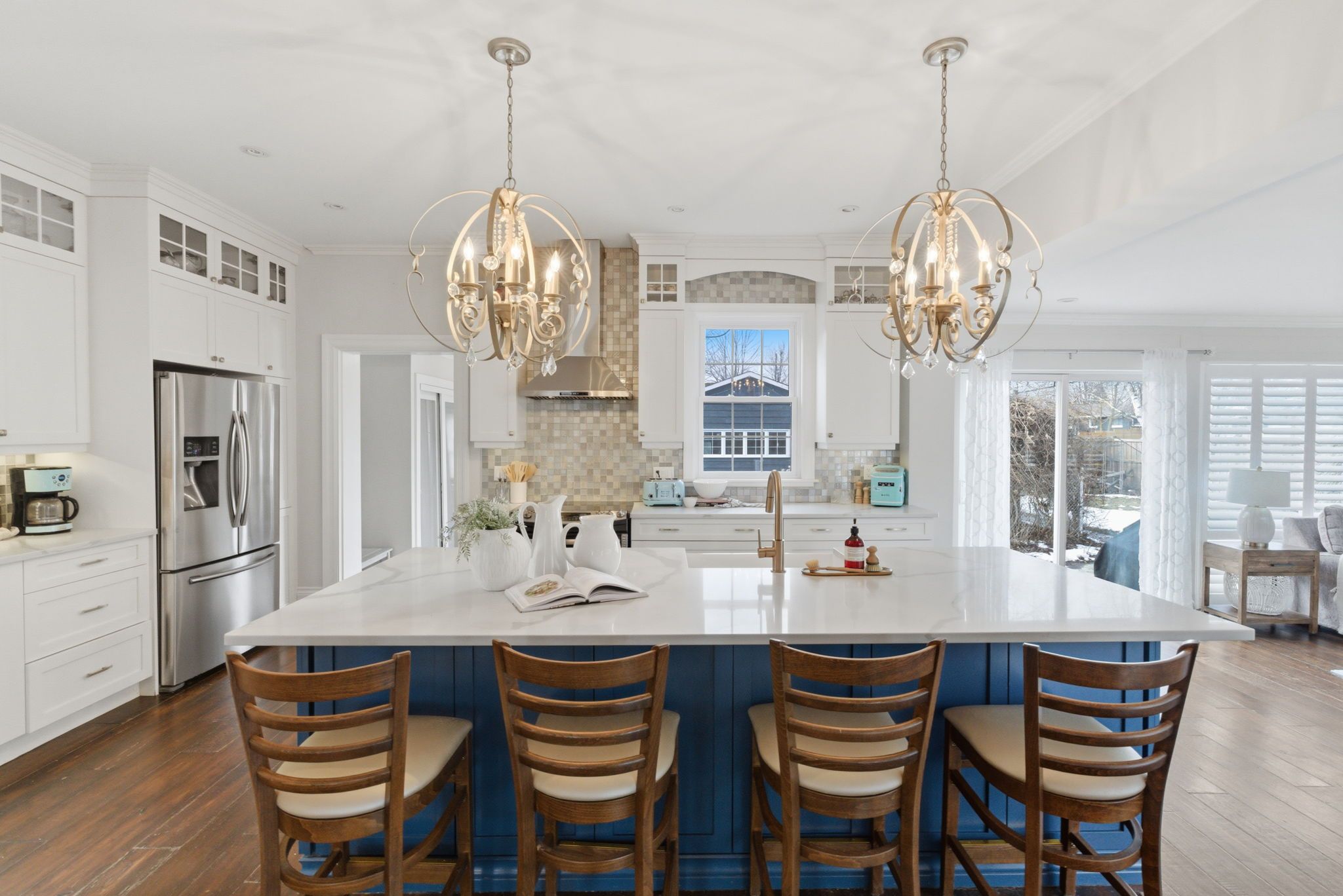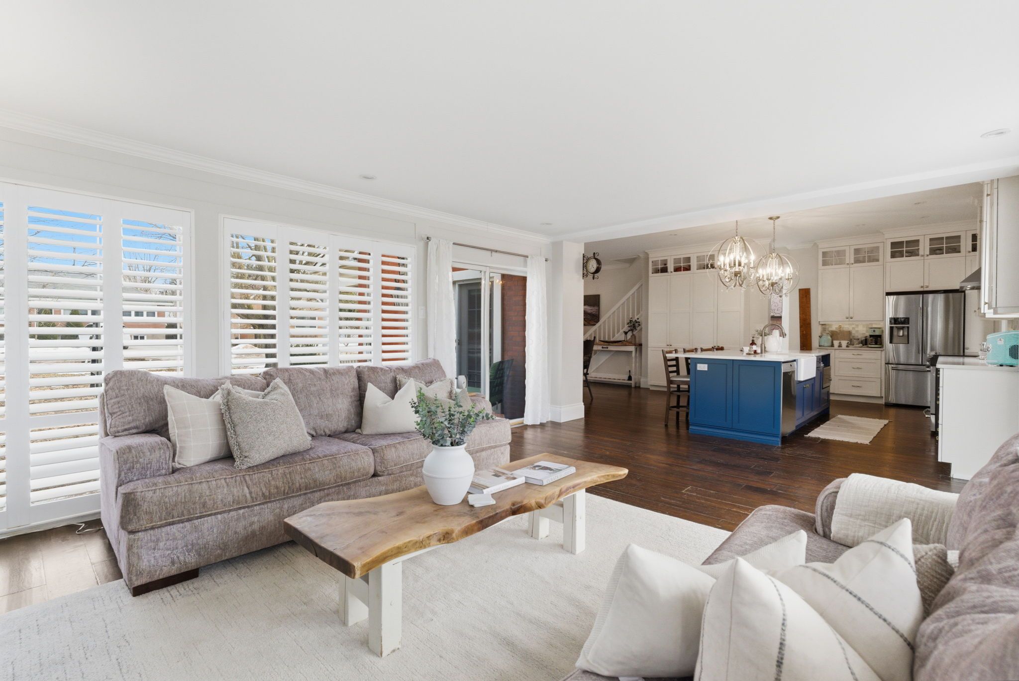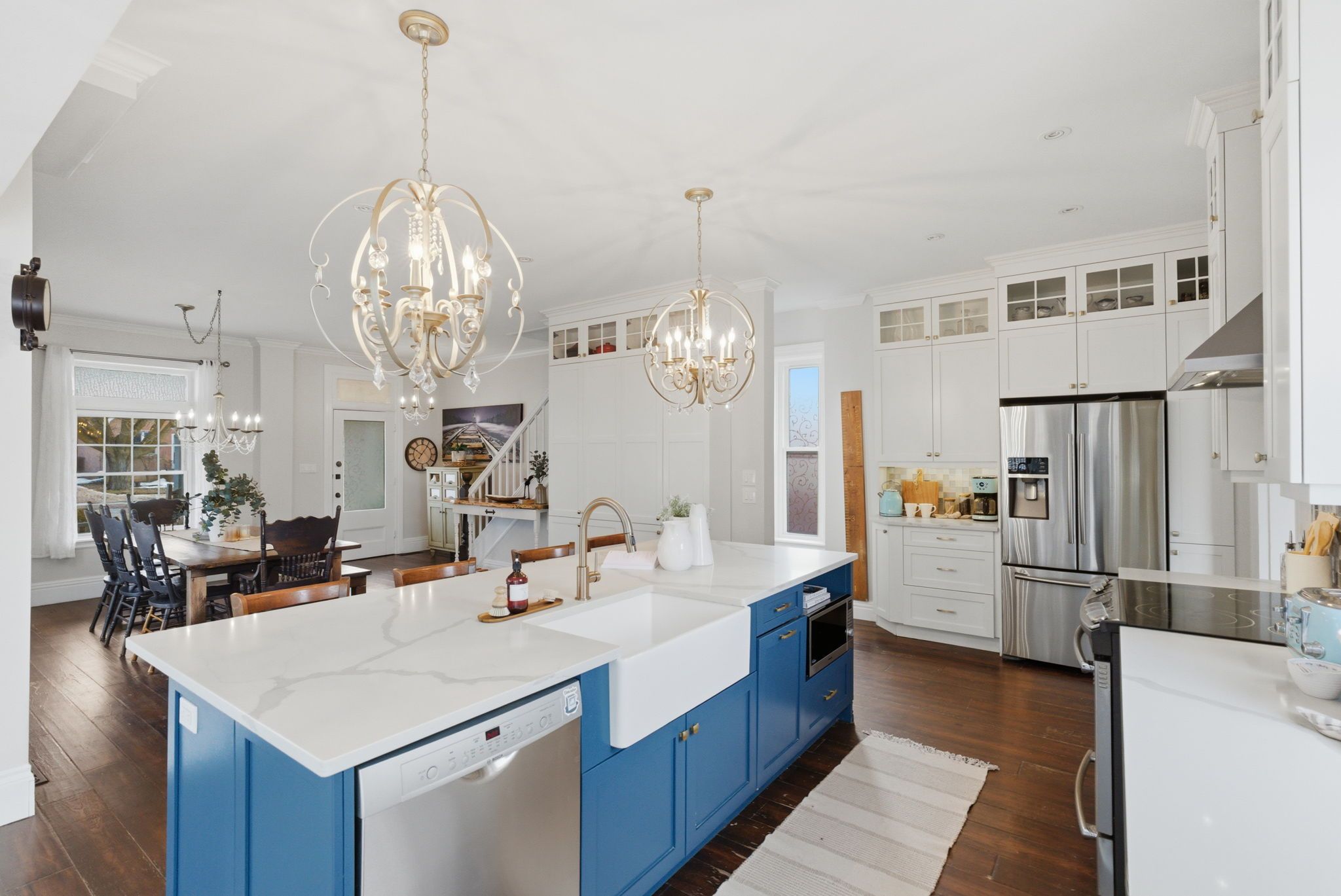 • Bright open-concept design featuring a spacious custom kitchen and family room.