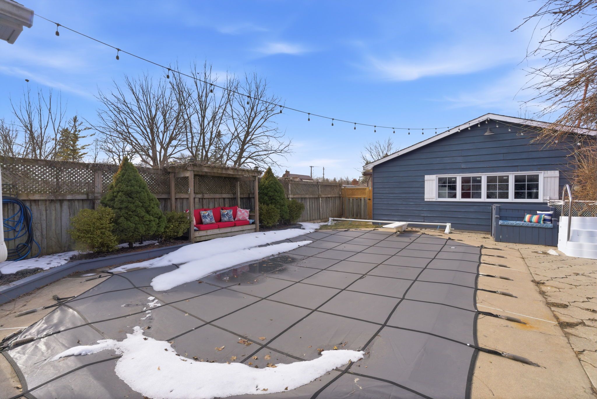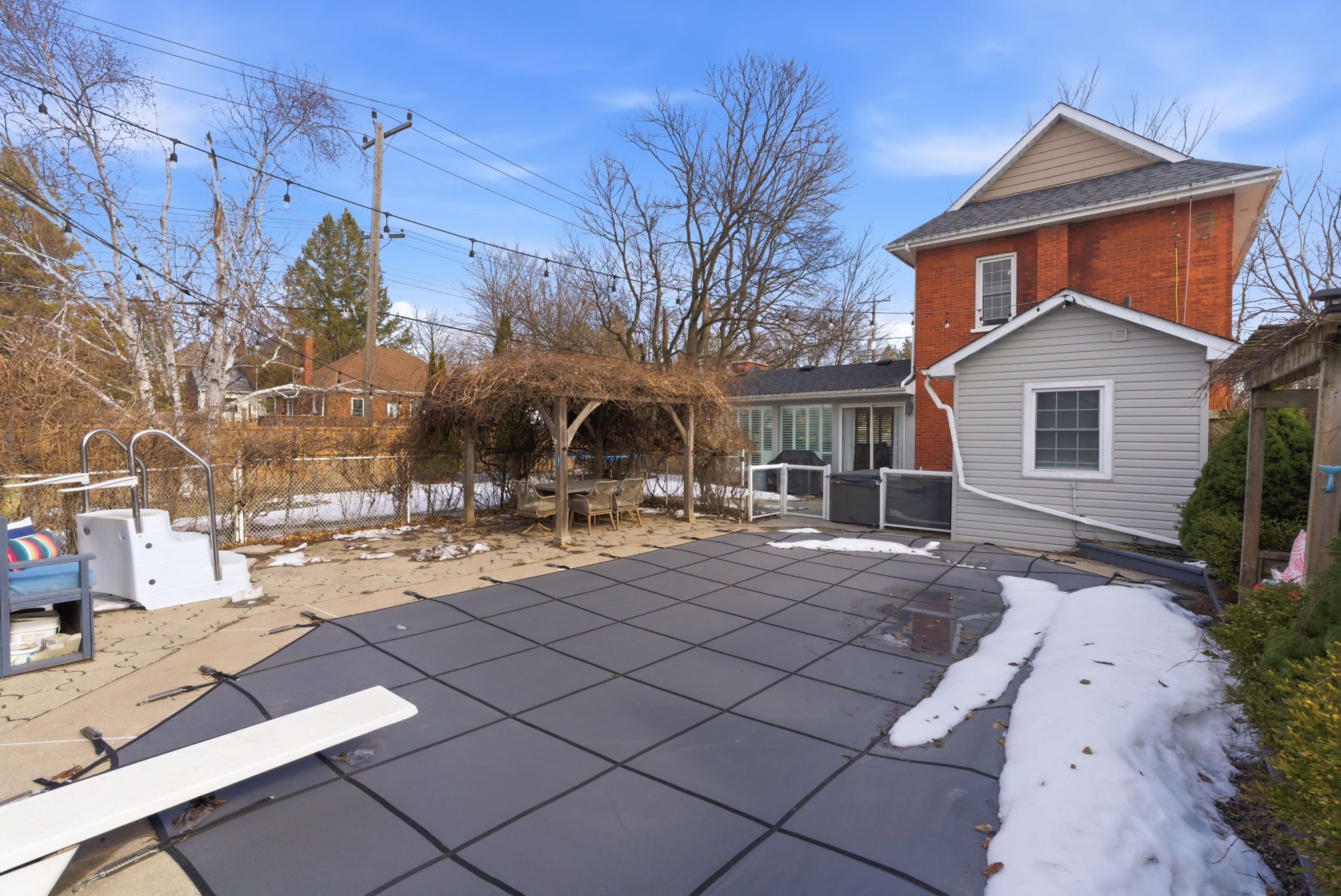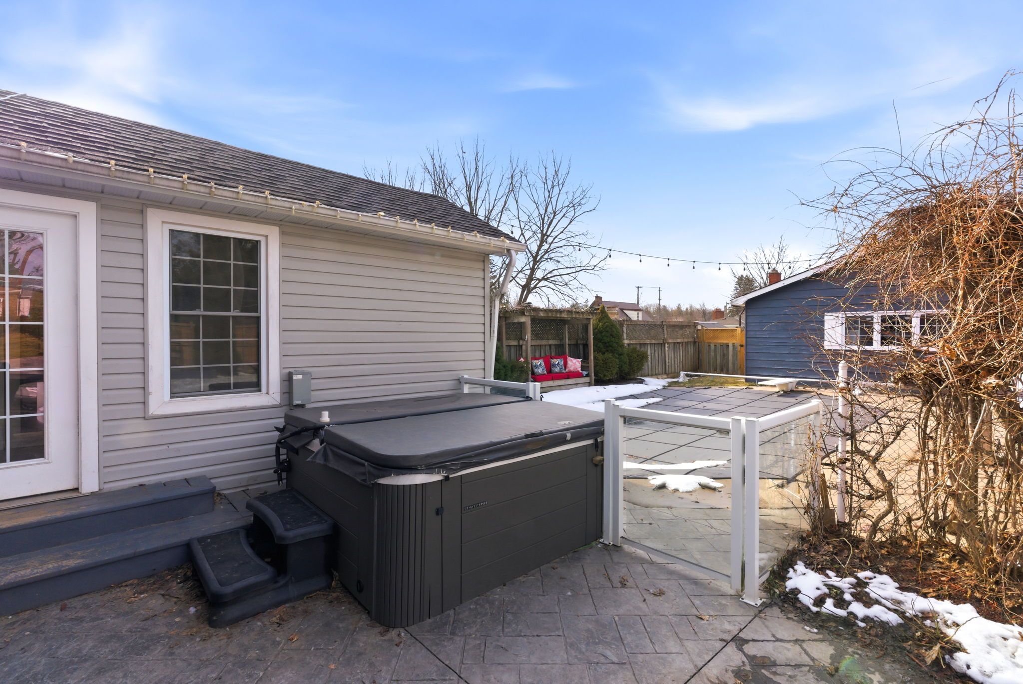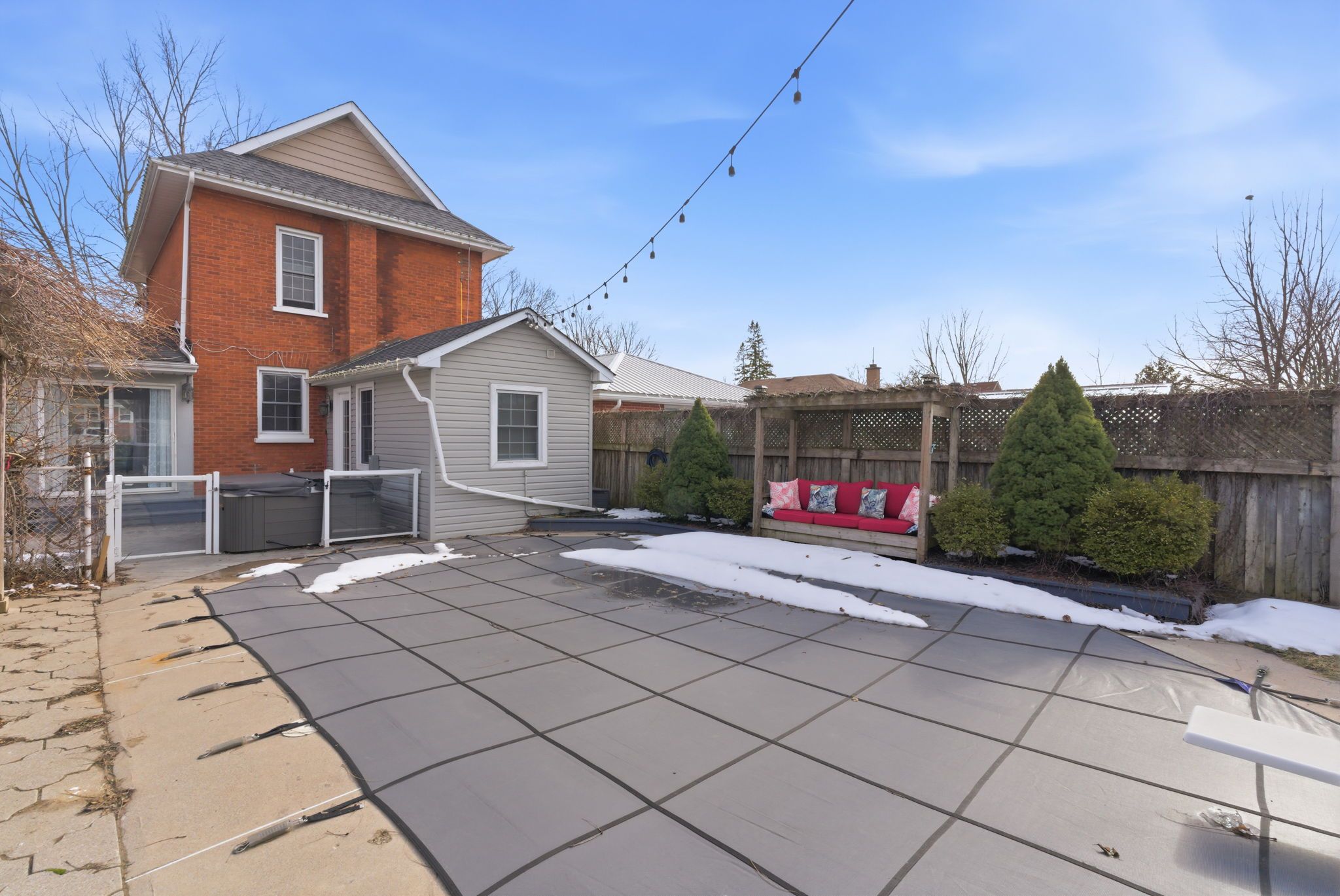 • Private backyard oasis with inground pool, hot tub, and detached double garage.