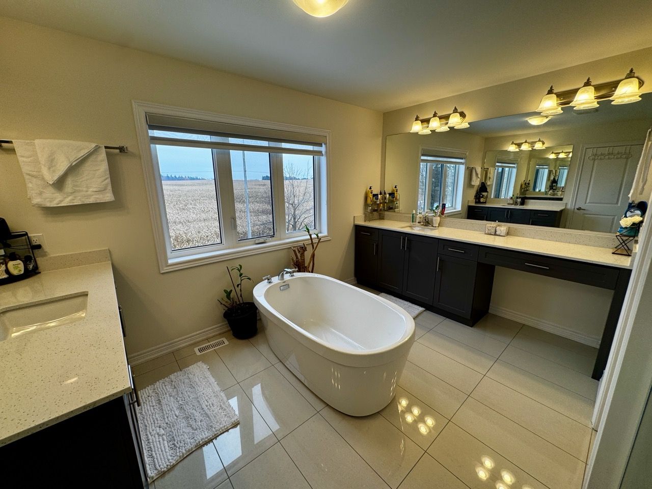 • Spacious master suite with walk-in closet and freestanding tub.