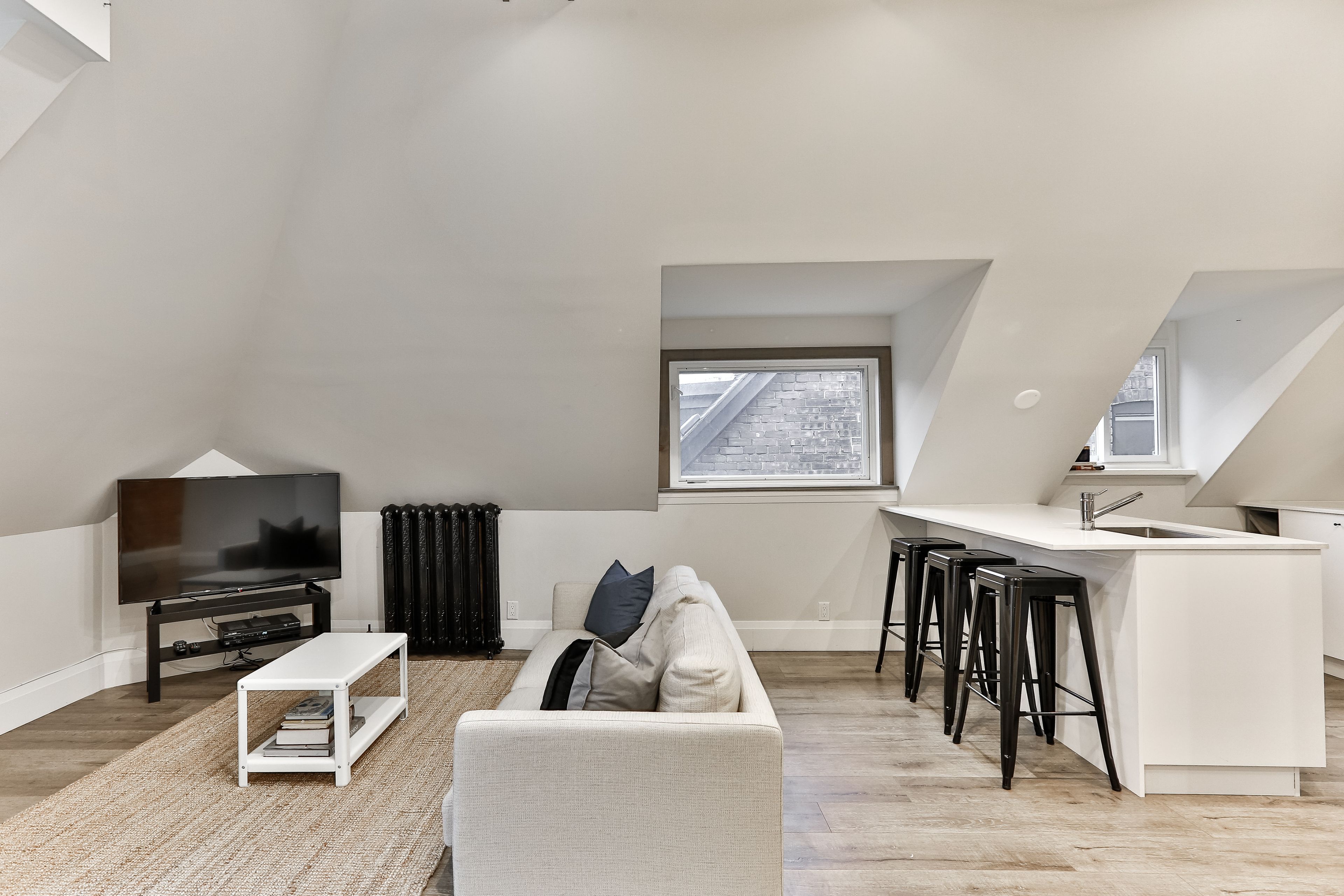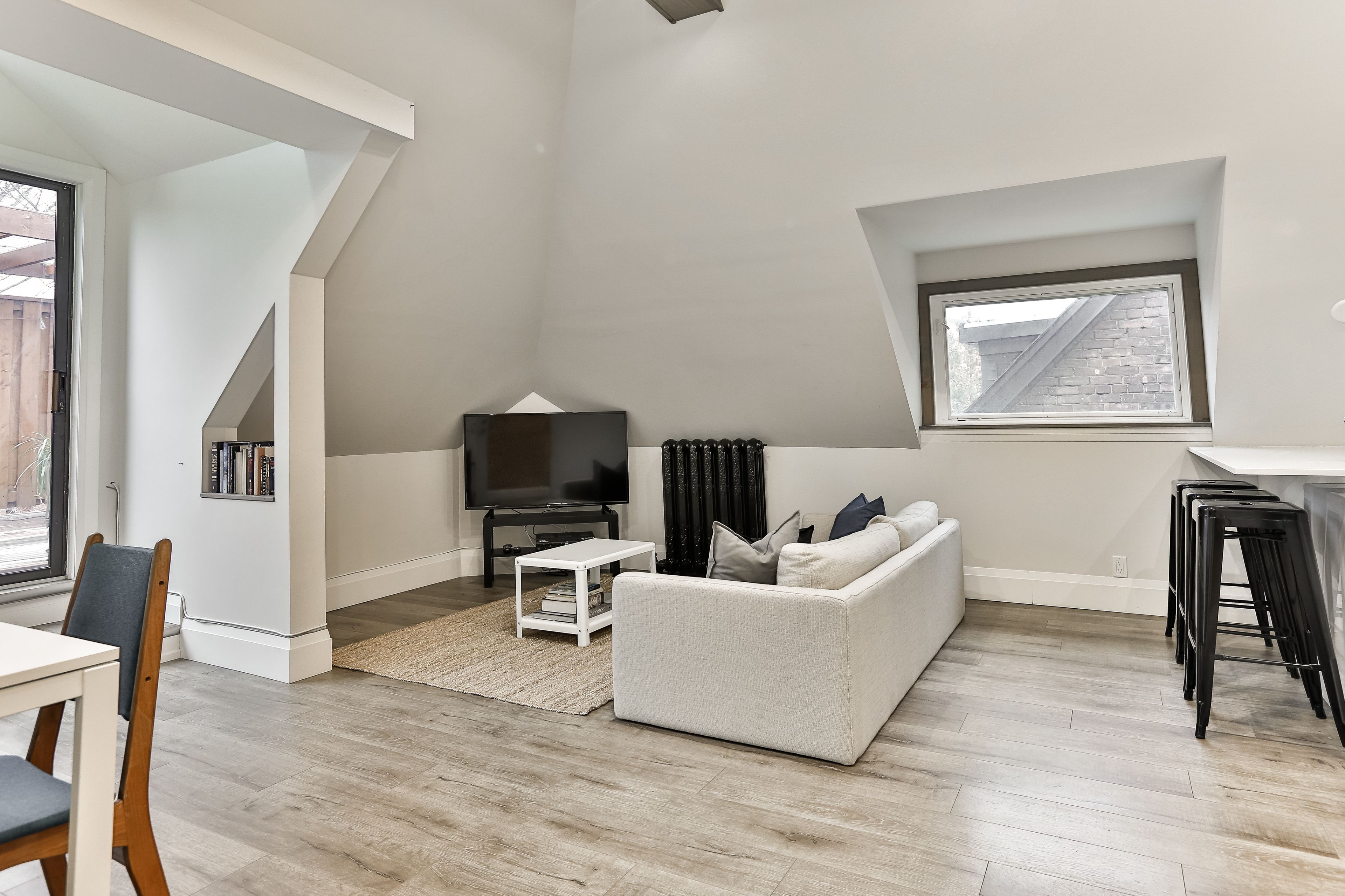 Top-floor 2-bedroom suite with designer touches and private terrace thoughtfully renovated with input from a semi-renowned designer, this well-laid-out 2-bedroom, 1-bath offers modern warmth with exposed brick, high ceilings, and an open-concept kitchen featuring quartz counters. The functional floor plan maximizes space with two large bedrooms and a private terrace, perfect for your morning coffee or evening unwind. Positioned in the heart of little portugal between queen and dundas, you're steps from the energy of west queen west and minutes from the vibrant ossington strip packed with acclaimed restaurants, indie shops, and nightlife. The 505 streetcar at your door connects you to the city, and ossington station is a quick ride away. This pocket sits at the intersection of cool and convenient-tree-lined residential streets meet one of toronto's most culturally dynamic neighbourhoods.