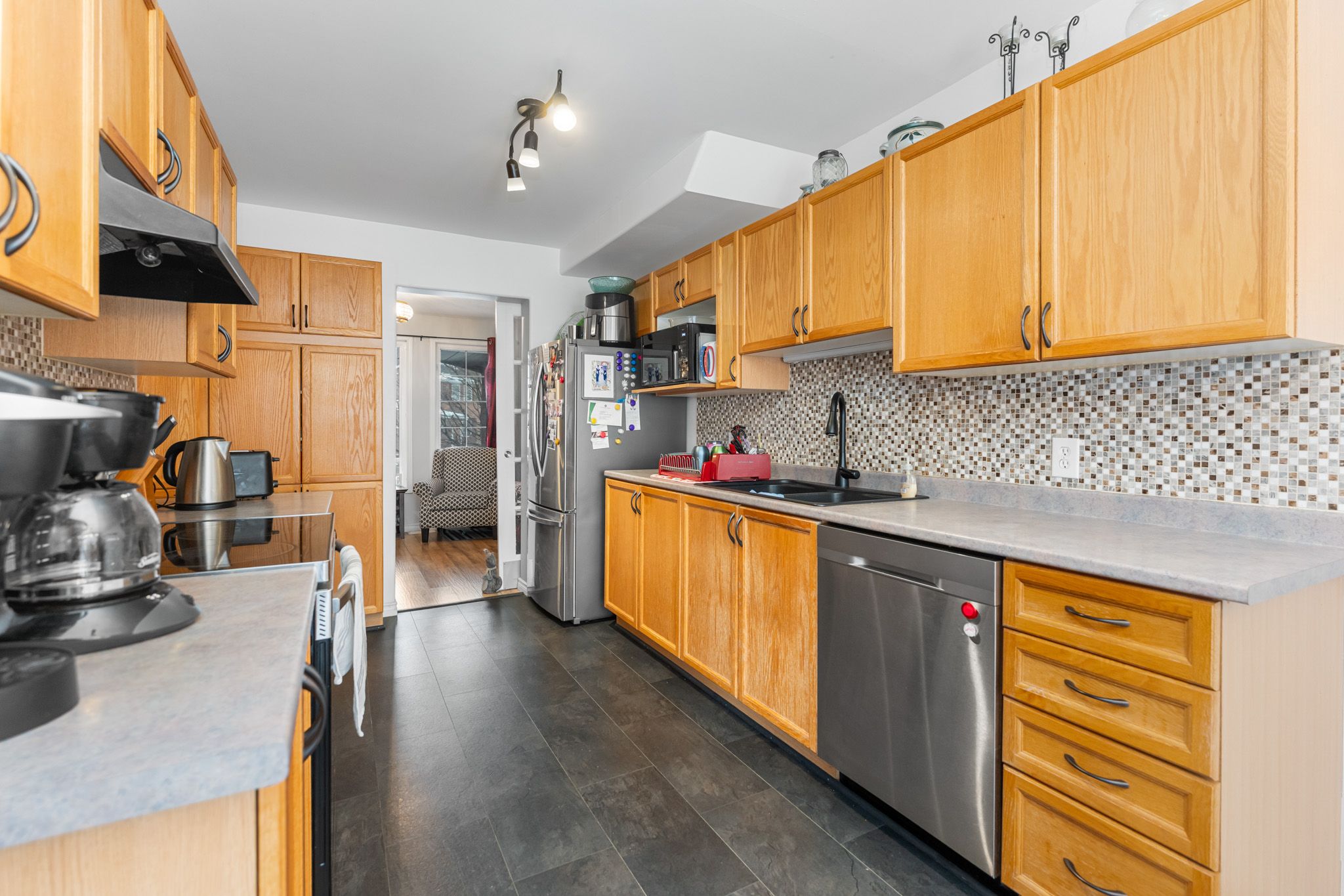 • Eat-in kitchen with plenty of cabinetry and workspace for daily use.