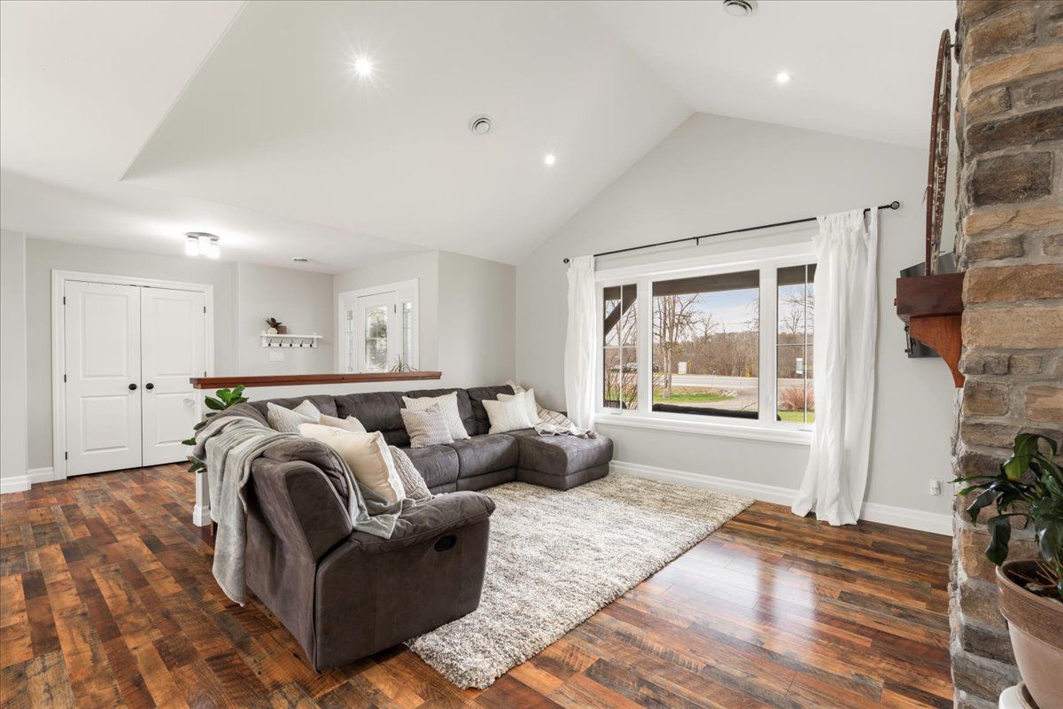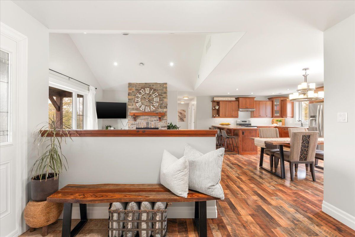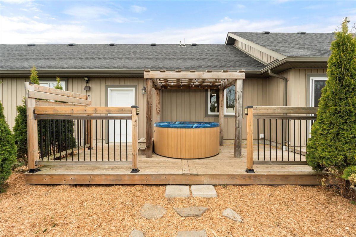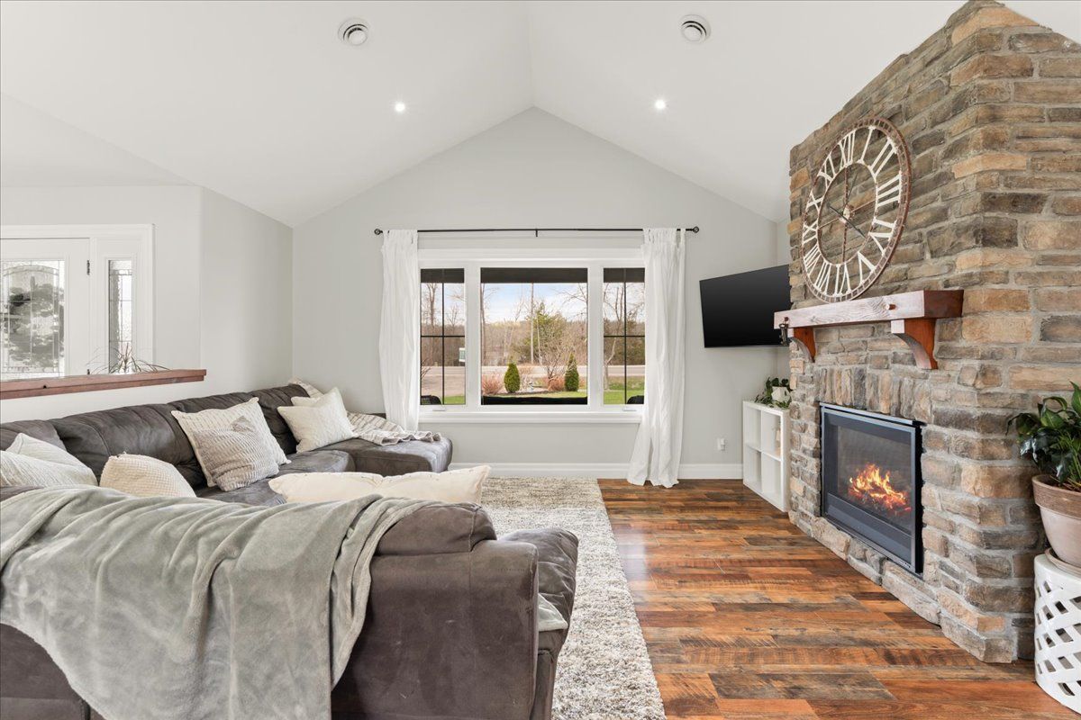Built in 2017, this rare all-on-one-floor bungalow delivers efficient, low-maintenance living with impressively low utility costs-something you won't find often. Offering 3 bedrooms, 2 bathrooms and garage space for 4 vehicles (triple + single), this home blends function with standout curb appeal on a large lot with municipal water. Inside features vaulted ceilings, a striking stone gas fireplace, radiant in-floor heating and an updated kitchen with 2024 stainless steel appliances. Enjoy seamless access to a large rear deck and a west-facing front deck for sunset views. Steps to the trent river and minutes to the 401, ymca and amenities-an incredible value.