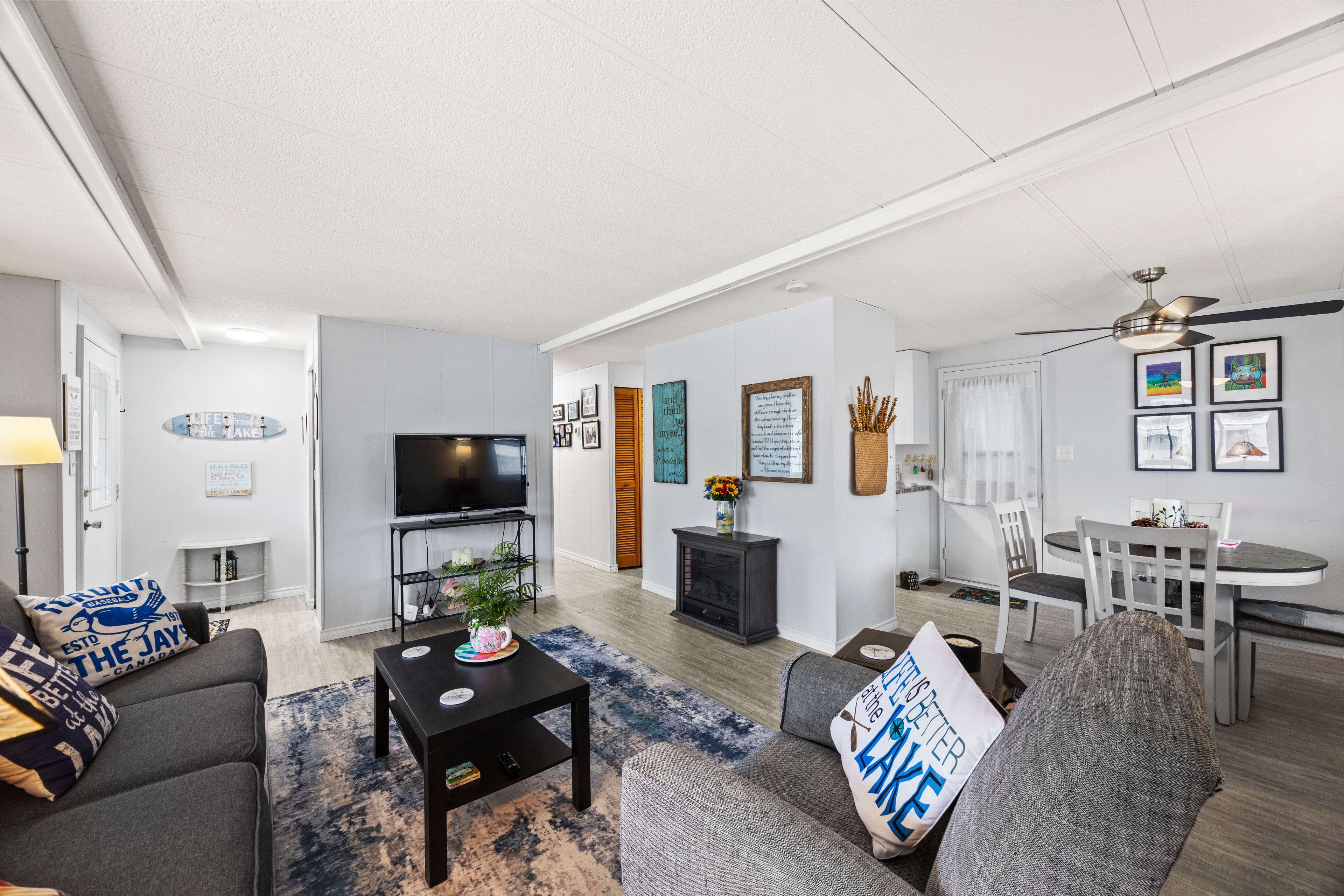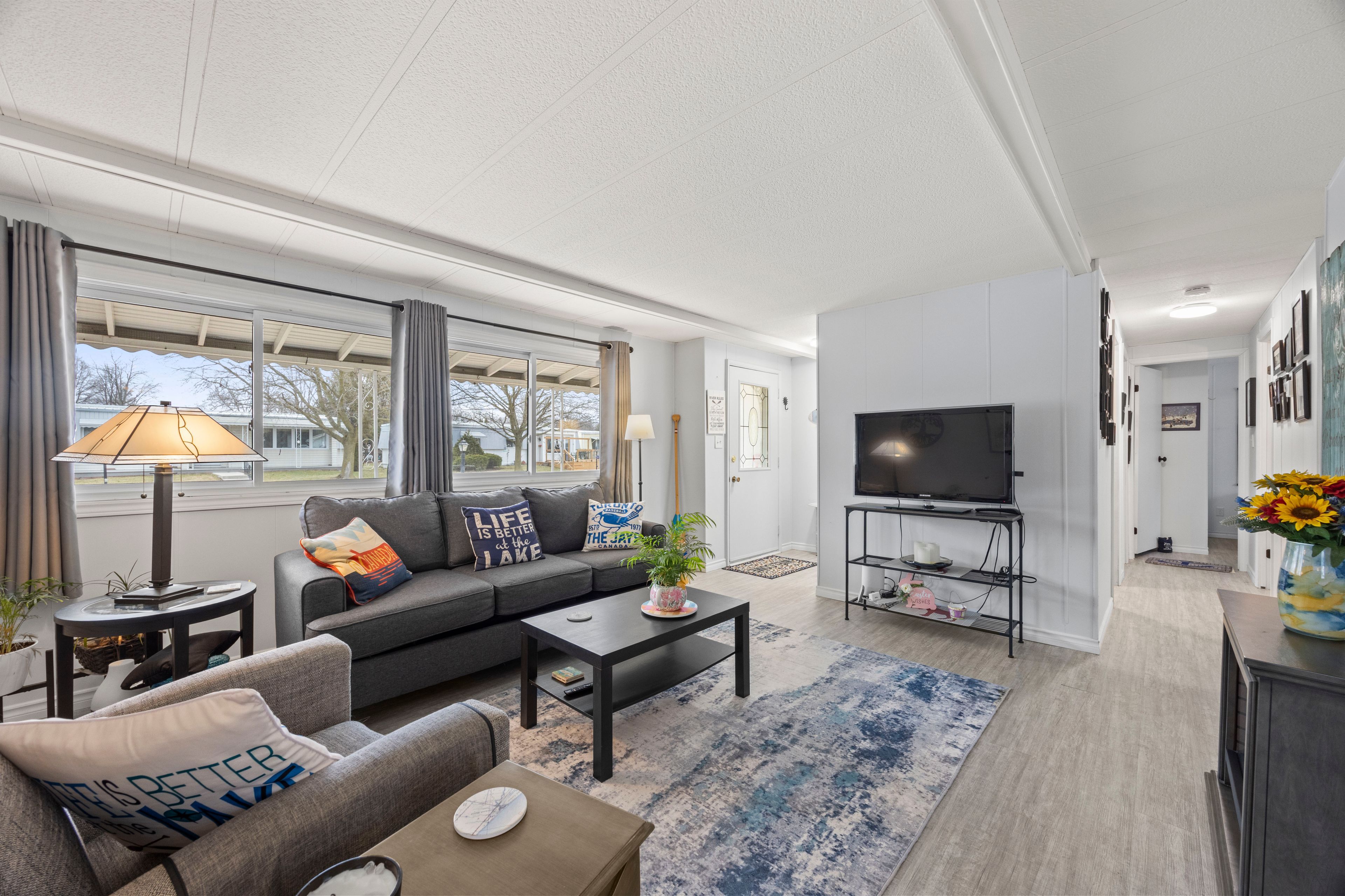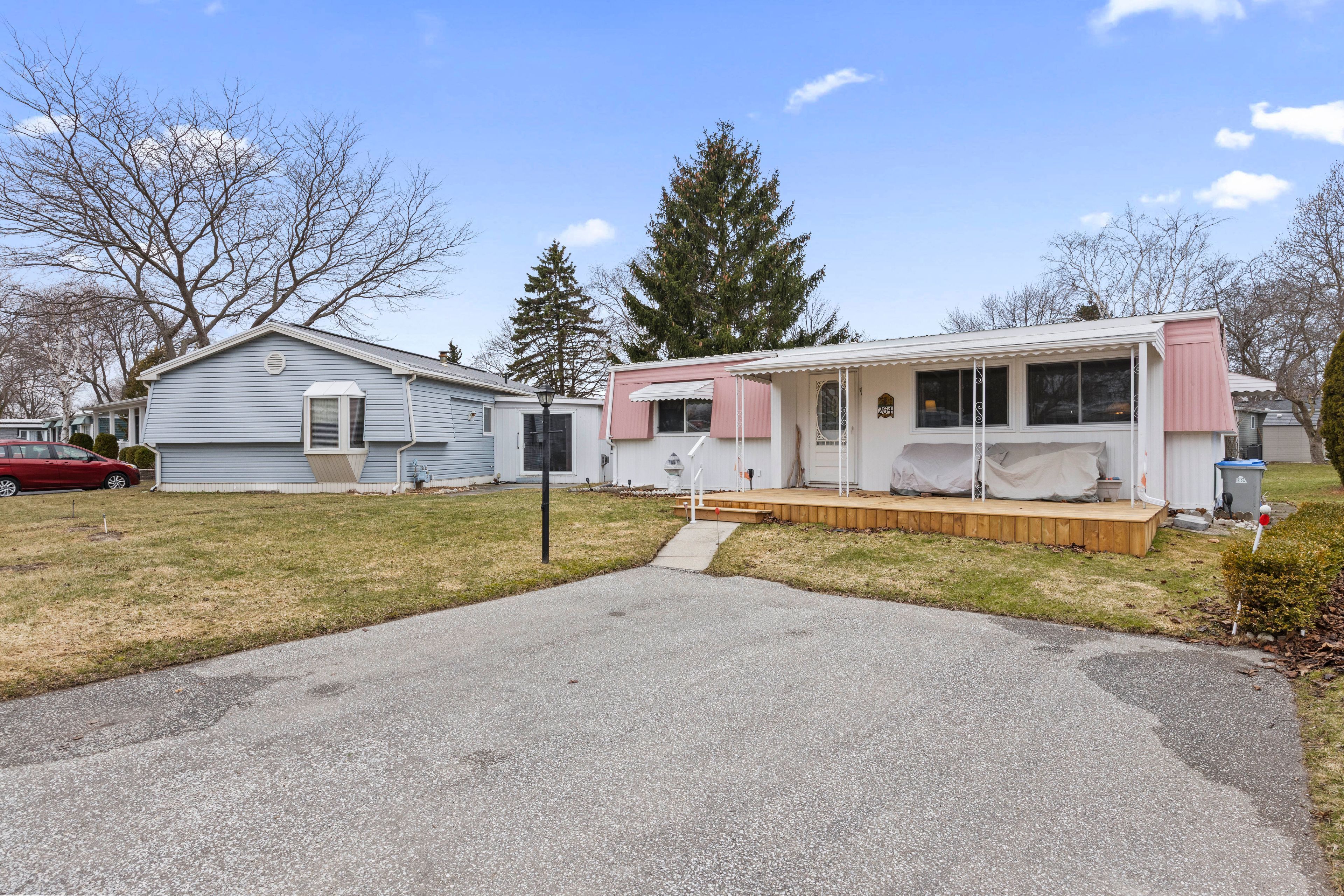 Welcome to relaxed, low-maintenance living in the highly desirable grand cove estates community in the heart of grand bend! This charming land lease home is perfect for those looking to downsize while still enjoying comfort, space, and an active lifestyle. Offering 2 bedrooms and 1 full bathroom, this home features a functional layout filled with natural light and inviting living spaces. A standout feature is the bonus sunroom, perfect for enjoying your morning coffee, reading, or entertaining guests year-round. The home also includes the convenience of 2 dedicated parking spots. Grand cove estates is known for its vibrant, community-focused lifestyle. Residents enjoy access to a variety of amenities including lawn bowling, pickleball, bocce ball, darts, and organized fitness classes-creating endless opportunities to stay active and social. Located just minutes from the beautiful beaches of lake huron, as well as grand bend's shops, restaurants, and amenities, this is an ideal opportunity to enjoy carefree living in one of ontario's most sought-after lakeside communities.