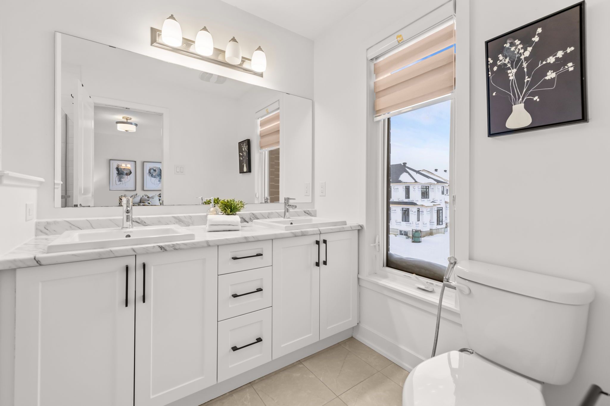 Welcome to 264 monticello, a beautifully maintained 2023-built claridge cypress model offering 1,985 sq. Ft. Of thoughtfully designed living space in the family-friendly community of bridlewood trails, kanata. This 3-bedroom, 3-bathroom townhome with a fully finished basement delivers both style and functionality. The main level features a welcoming foyer and a bright, open-concept living and dining area-ideal for everyday living and entertaining. The modern kitchen showcases upgraded cabinetry, quartz countertops, stainless steel appliances, a centre island, and ample space for family meals and gatherings. Upstairs, the spacious primary suite offers a walk-in closet and a 4-piece ensuite complete with glass shower and double vanity. Two additional generously sized bedrooms, a 3-piece main bath, and a convenient second-floor laundry room complete this level. The fully finished basement provides additional living space, a dedicated storage room, and a rough-in for a fourth bathroom. Enjoy a spacious backyard, perfect for outdoor entertaining and relaxation. Ideally located close to schools, parks, grocery stores, public transit, and the trans canada trail, this home checks all the boxes for modern family living. A fantastic opportunity to own a move-in-ready home in one of kanata's most sought-after neighborhoods-come see it for yourself!