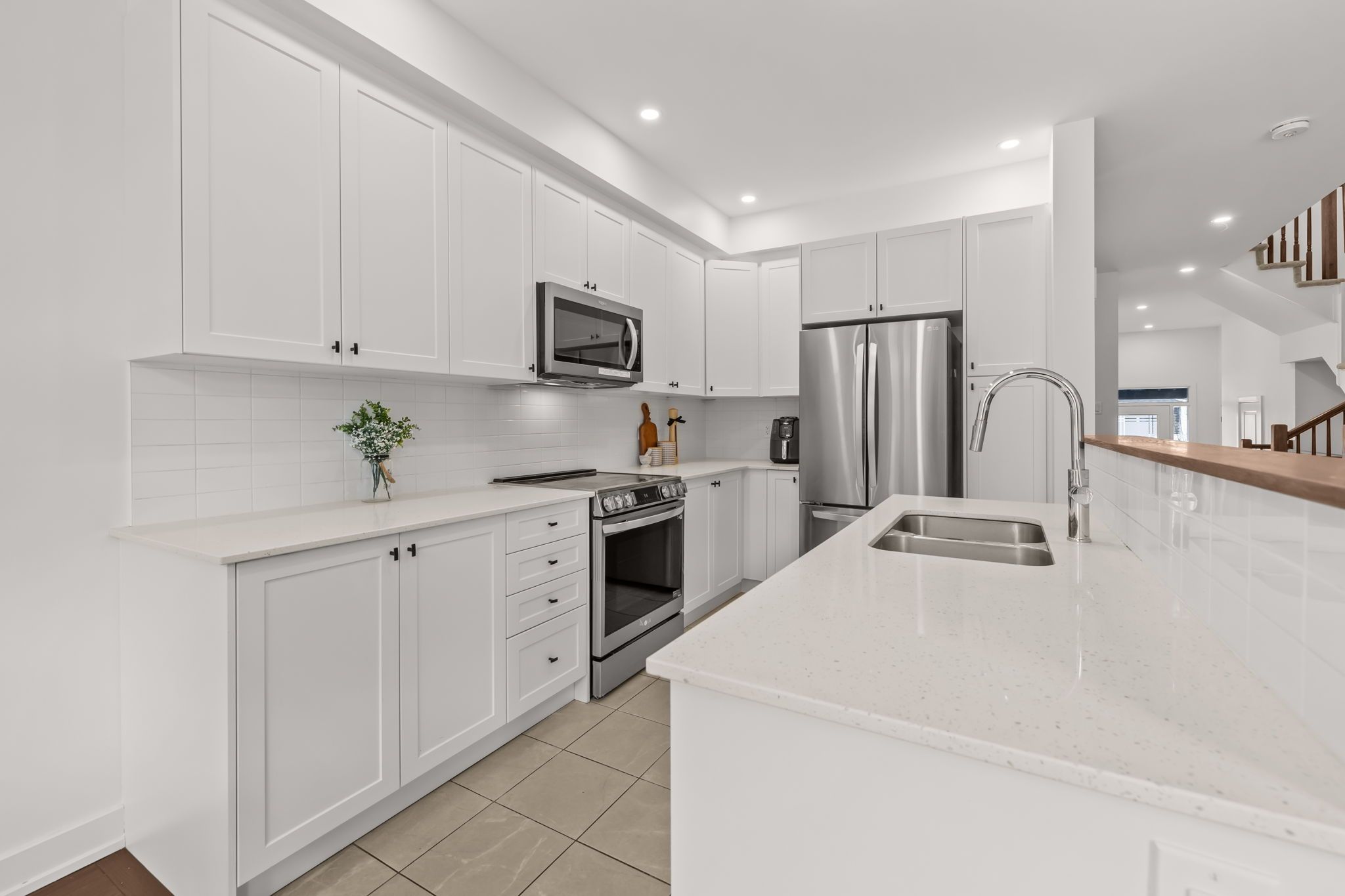 • Modern kitchen with upgraded finishes and ample family dining space.