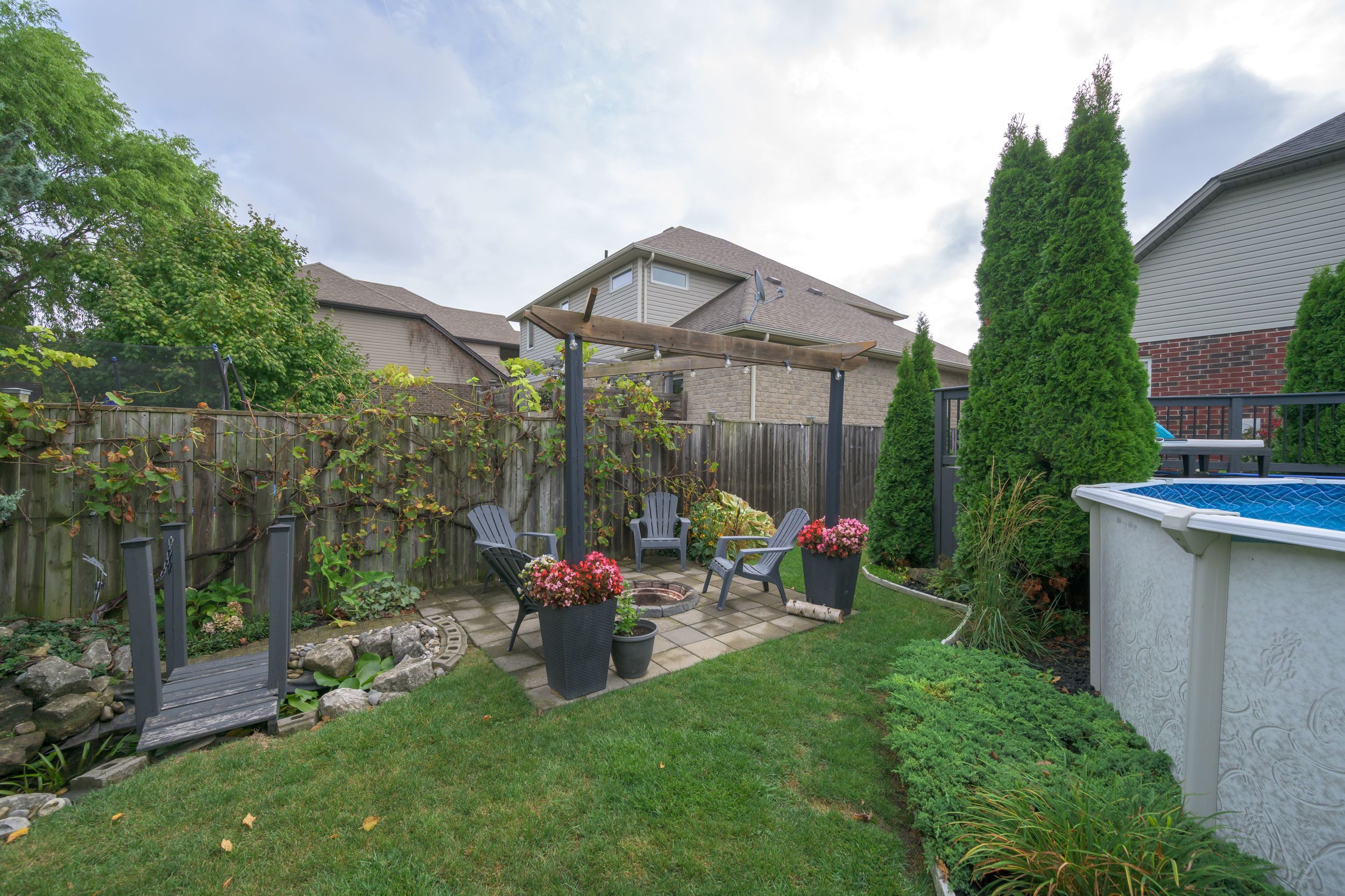 Modern and sleek - simply put this home is gorgeous! Single owner and the pride of ownership shows. Wide open living space; spacious kitchen with quartz countertops, ample cabinet and cupboard space, stainless steel appliances and breakfast bar island. Tray ceiling in the living room, with a gas fireplace and feature wall. Main floor office is perfect for those that work from home. Convenient main floor laundry. Master bedroom with 3pc ensuite and walk-in closet, 2 spacious bedrooms and a 4pc bathroom complete the second floor. The lower level features a finished family room and doubles as a 4th bedroom with a 3 pc bath. Lots of potential with the large unfinished space for a 5th bedroom, recroom, or both. Many updates throughout the years including roof 2024. Meticulously landscaped front to back! Step outside to the backyard oasis with lush vegetation featuring a multi-tiered partially covered deck, koi pond, fire pit, above ground pool, and shed. Located on a very quiet family friendly court, close to several amenities including western university, masonville mall, and more!
