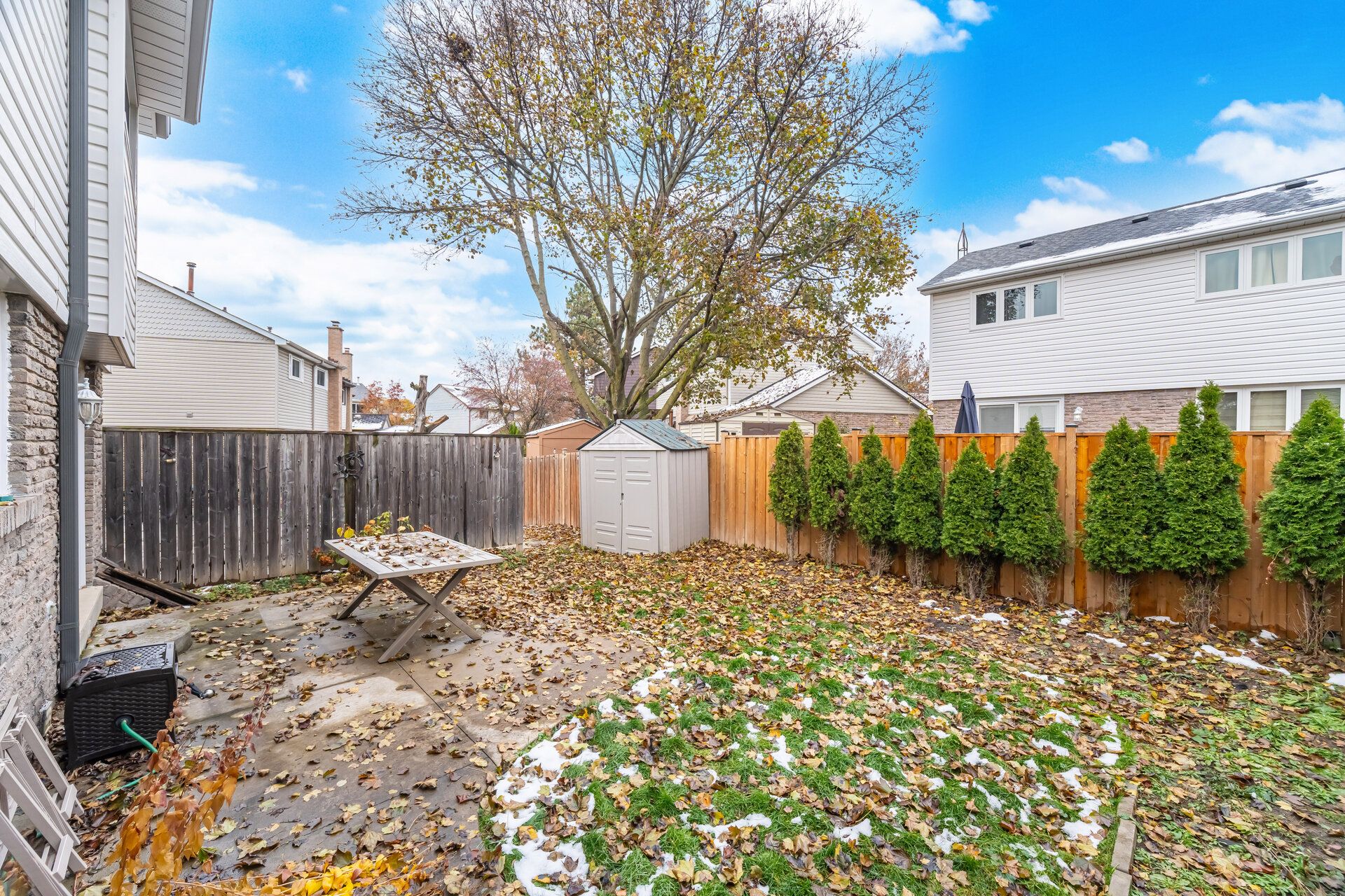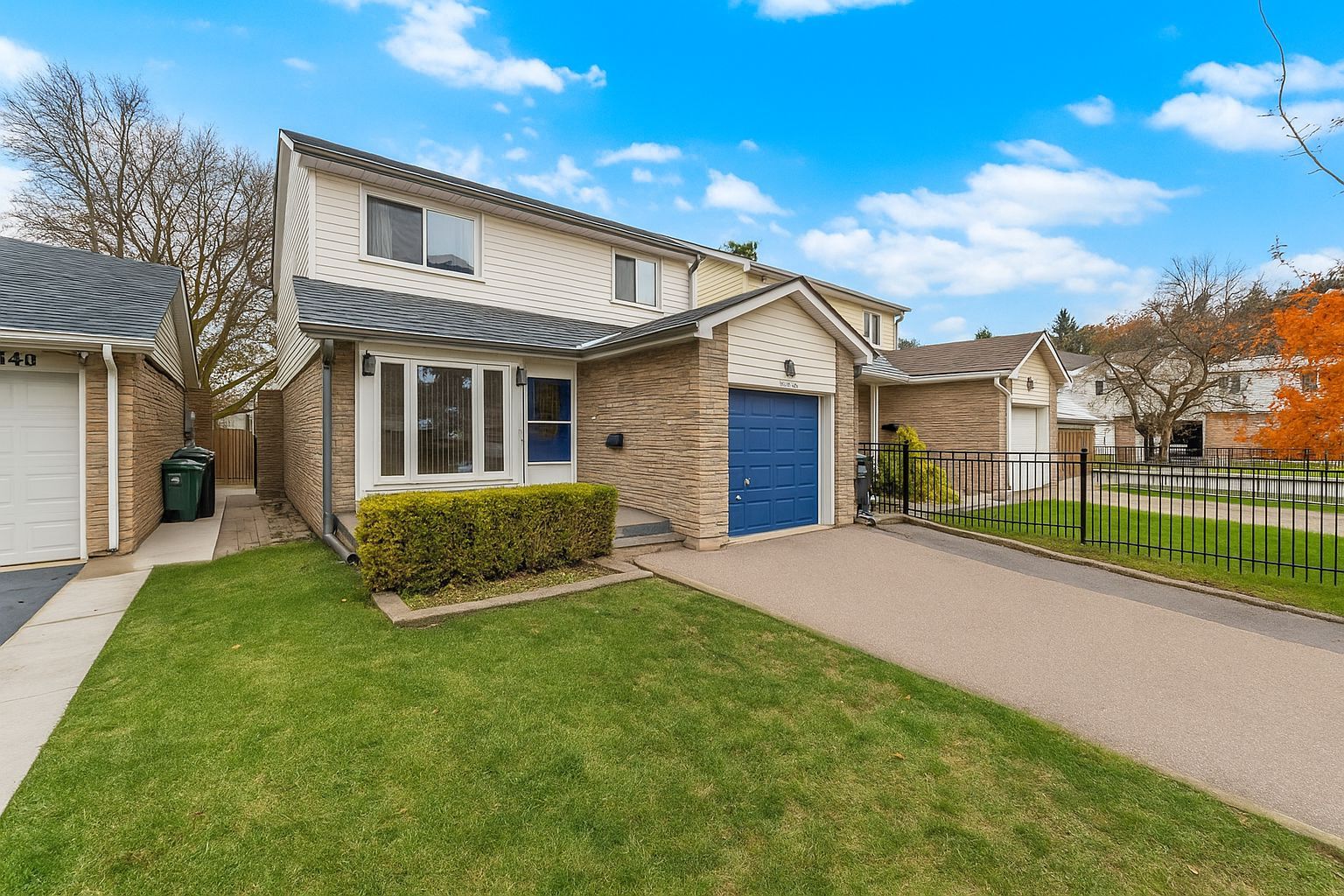 Nestled on a serene, family friendly court in the heart of meadowvale, this detached 3 bedroom home offers comfortable living in a peaceful setting. The main floor features separate, spacious living and dining rooms, with the dining room opening directly to the backyard for easy indoor outdoor entertaining. A family sized kitchen with under valance lighting, ample cabinetry and a bright window overlooks the yard. Upstairs, find three generous bedrooms. The primary bedroom includes a large walk through closet that leads to a 4 piece semi ensuite bath. The finished basement adds a cozy recreation room, ideal for movie nights or a play area. Outside, enjoy a landscaped lot with evergreens, and storage shed. The extended driveway parks up to four cars, and the separate side entrance adds flexibility. Perfectly located within walking distance to schools, shopping, scenic walking trails, lake aquitaine park, and the meadowvale community centre and theatre. For commuters, the home offers quick access to highways 401, 403, and 410, and its only a five-minute drive to meadowvale go station.