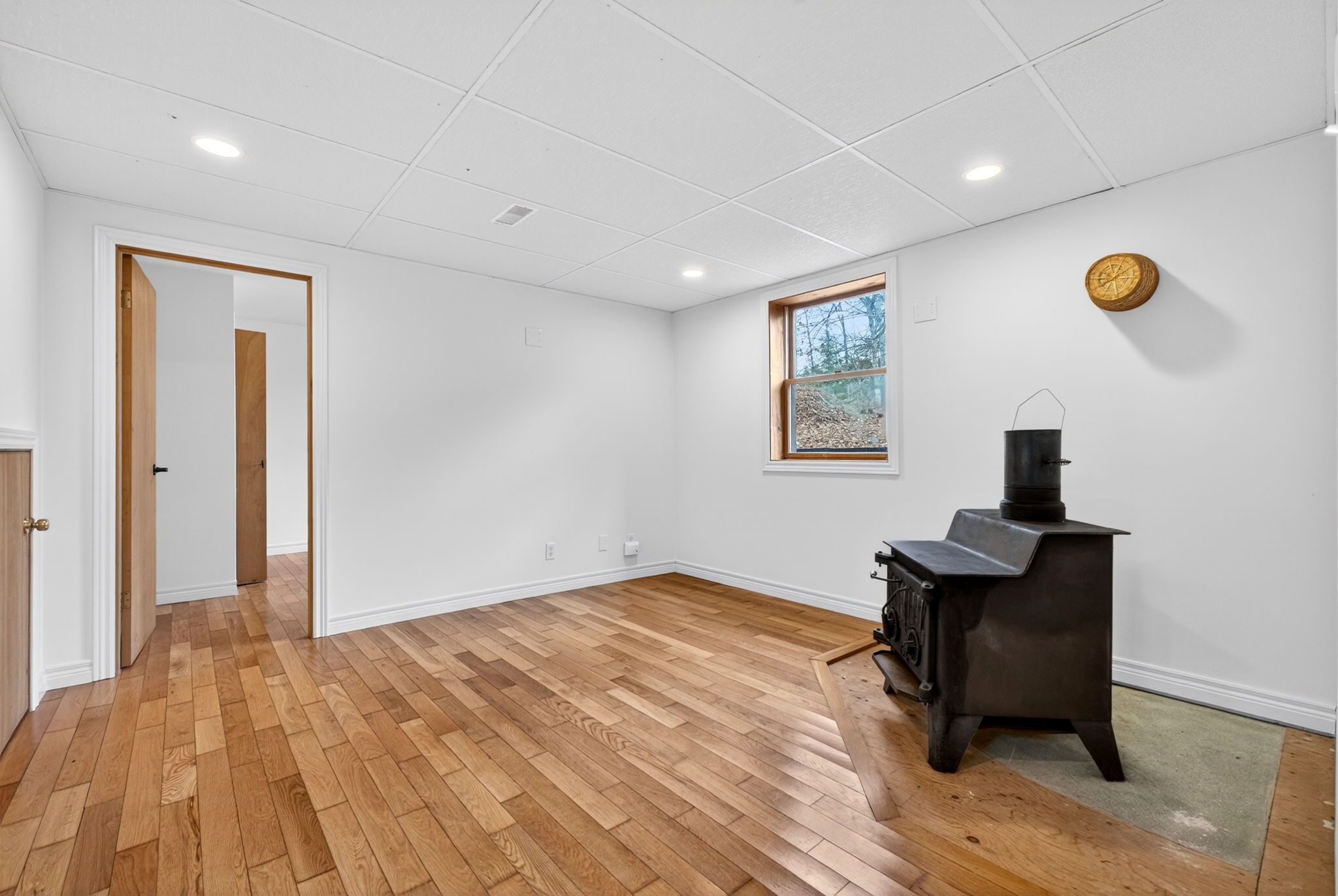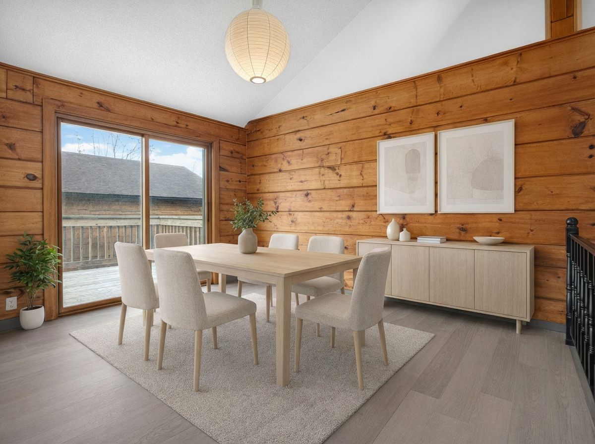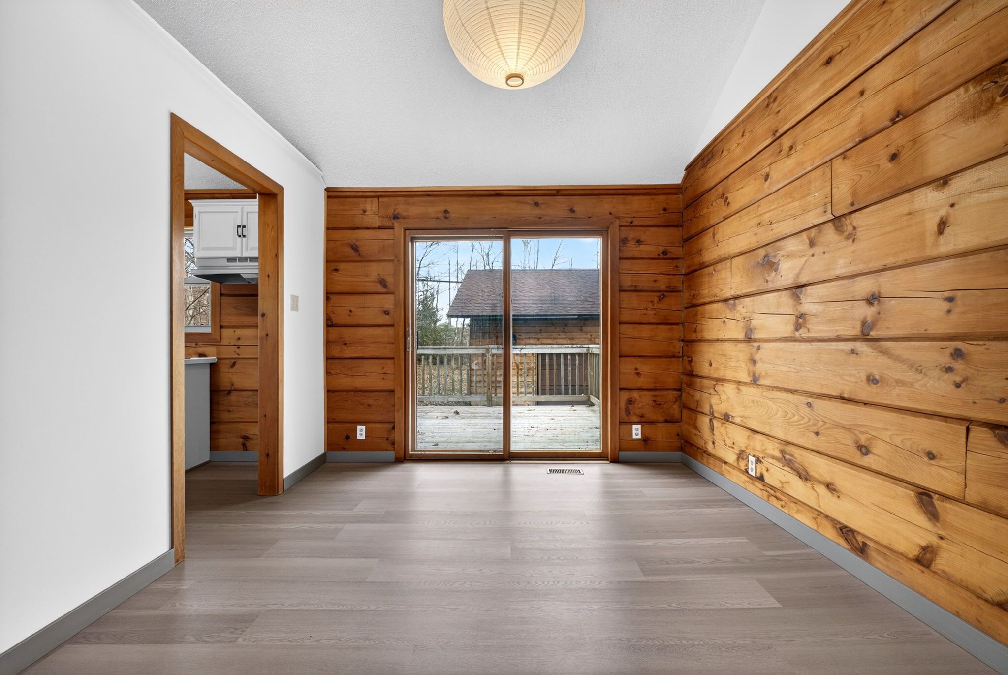 Located across from chemong lake, with beautiful water views. Set on a quiet, family friendly cul-de-sac, just shy of 1/2 an acre & nestled in the heart of the kawartha's, this 5-bedroom viceroy log split level home offers a unique blend of rustic charm and modern updates. Launch your paddle board or canoe & enjoy the lake life with right of way access without the lakefront taxes! Recently refreshed and move-in ready, the home features new laminate flooring throughout, updated bathroom fixtures and lighting, & fresh paint. The bright, three-level layout showcases soaring cathedral ceilings in the family room and transom windows that fill the space with natural light. The dining area offers patio doors that open to a large cedar deck and a private backyard surrounded by mature maple, aspen, and oak trees. The main floor offers a spacious primary bedroom with a walk-in closet and updated ensuite with new vanity, mirror, faucet, lighting, and toilet. The cozy kitchen features solid wood cabinetry, freshly painted with new hardware. Opportunity to create a beautiful open concept eating/dining area. Upstairs includes an updated bathroom with new sink, and shower surround, plus two well-sized bedrooms with closets overlooking the backyard. The sunlight filled lower level features hardwood flooring, a rec room, two additional bedrooms, and a laundry room with well-maintained systems and access to the crawl space and furnace. A standout feature is the log-faced oversized 2-car garage and workshop (approx. 810 sq ft) with 11-foot ceilings. The workshop is finished with barn board wainscoting and tongue-and-groove pine, and is equipped for future heating or stove installation. Enjoy peaceful country living with lake access, space, and versatility-just minutes from lakefield amenities.