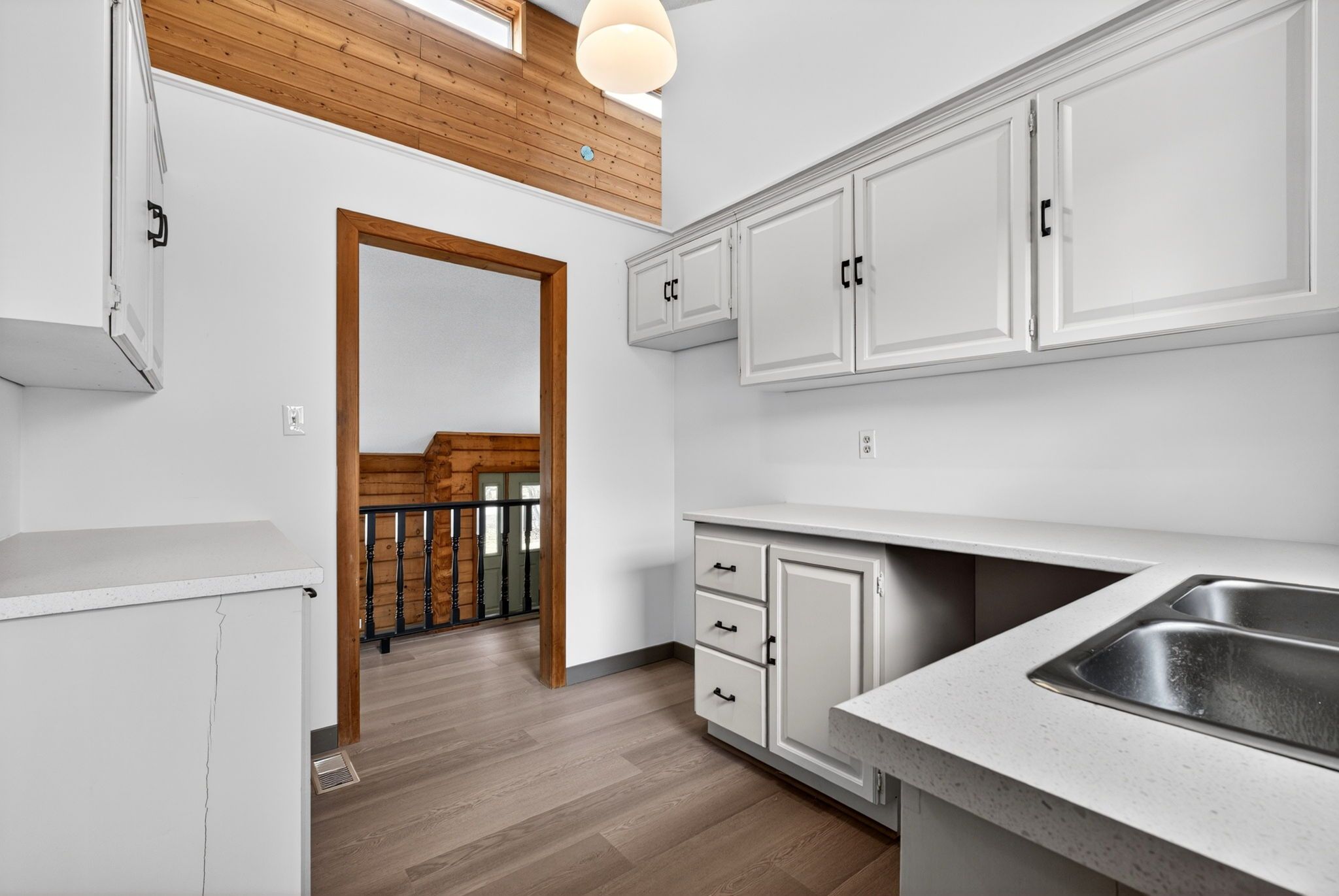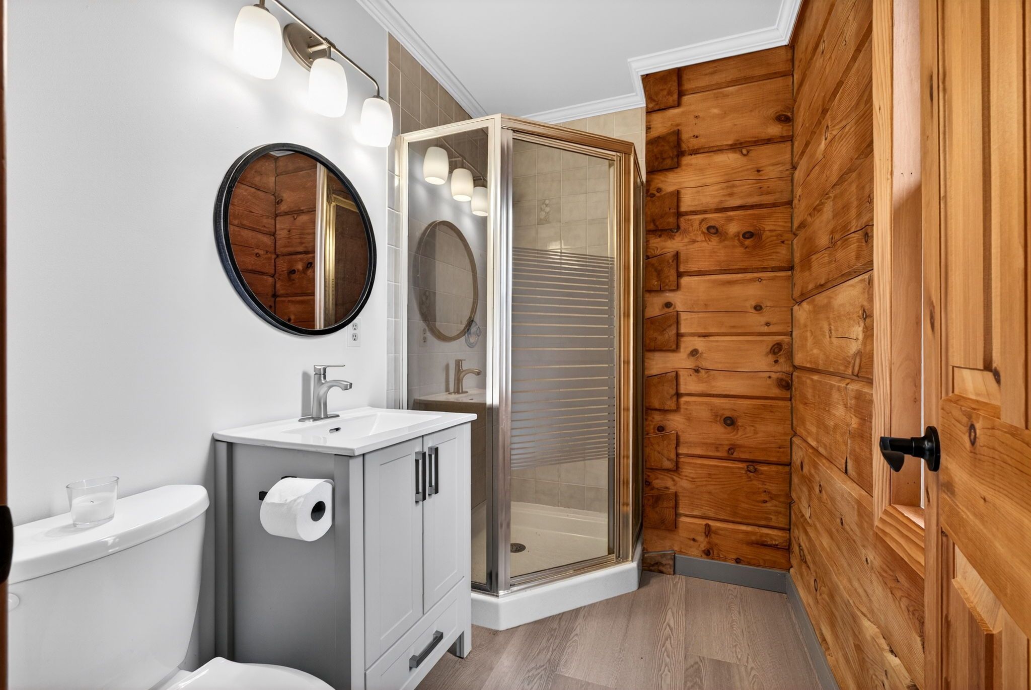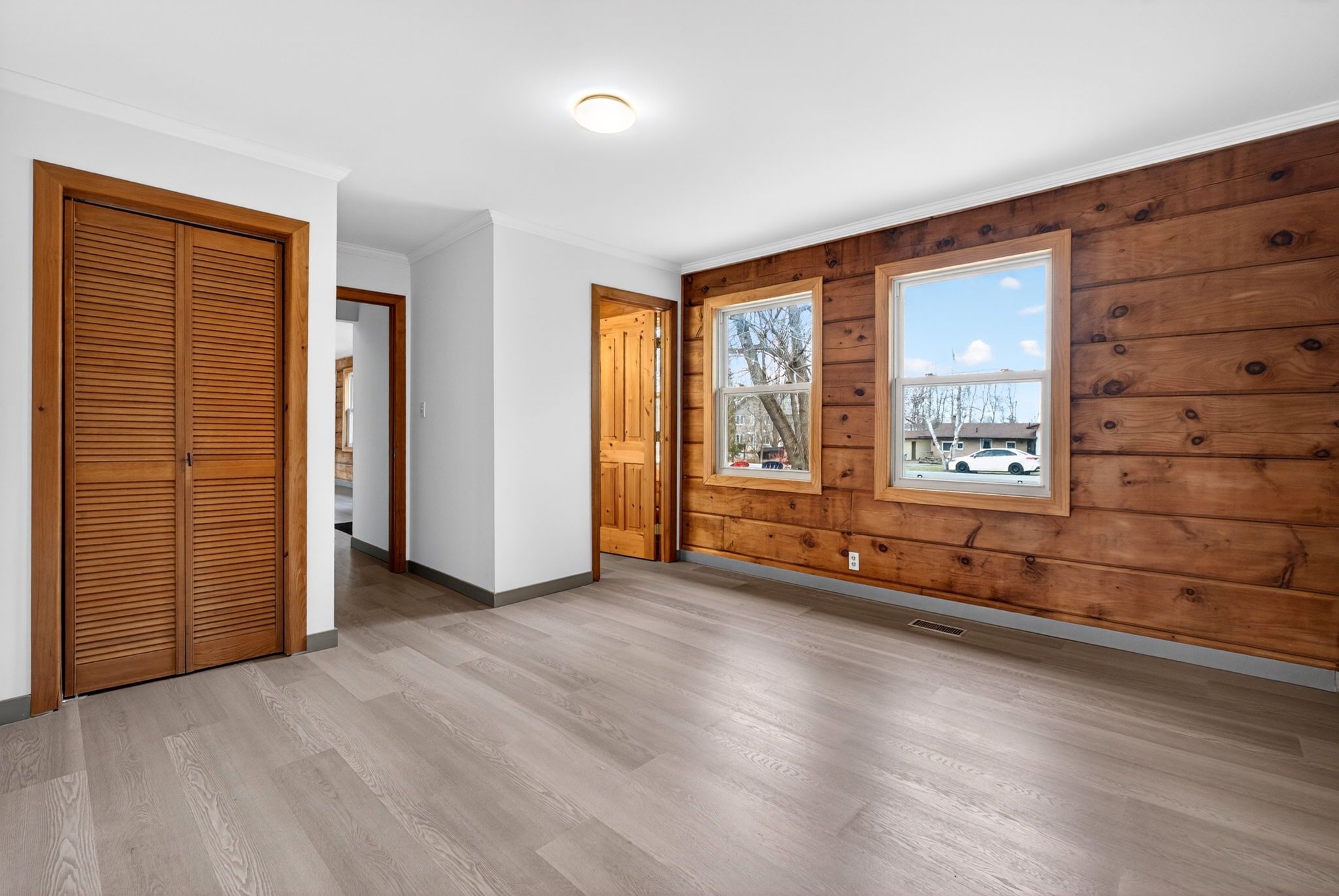 Located across from chemong lake, with beautiful water views. Set on a quiet, family friendly cul-de-sac, just shy of 1/2 an acre & nestled in the heart of the kawartha's, this 5-bedroom viceroy log split level home offers a unique blend of rustic charm and modern updates. Launch your paddle board or canoe & enjoy the lake life with right of way access without the lakefront taxes! Recently refreshed and move-in ready, the home features new laminate flooring throughout, updated bathroom fixtures and lighting, & fresh paint. The bright, three-level layout showcases soaring cathedral ceilings in the family room and transom windows that fill the space with natural light. The dining area offers patio doors that open to a large cedar deck and a private backyard surrounded by mature maple, aspen, and oak trees. The main floor offers a spacious primary bedroom with a walk-in closet and updated ensuite with new vanity, mirror, faucet, lighting, and toilet. The cozy kitchen features solid wood cabinetry, freshly painted with new hardware. Opportunity to create a beautiful open concept eating/dining area. Upstairs includes an updated bathroom with new sink, and shower surround, plus two well-sized bedrooms with closets overlooking the backyard. The sunlight filled lower level features hardwood flooring, a rec room, two additional bedrooms, and a laundry room with well-maintained systems and access to the crawl space and furnace. A standout feature is the log-faced oversized 2-car garage and workshop (approx. 810 sq ft) with 11-foot ceilings. The workshop is finished with barn board wainscoting and tongue-and-groove pine, and is equipped for future heating or stove installation. Enjoy peaceful country living with lake access, space, and versatility-just minutes from lakefield amenities.