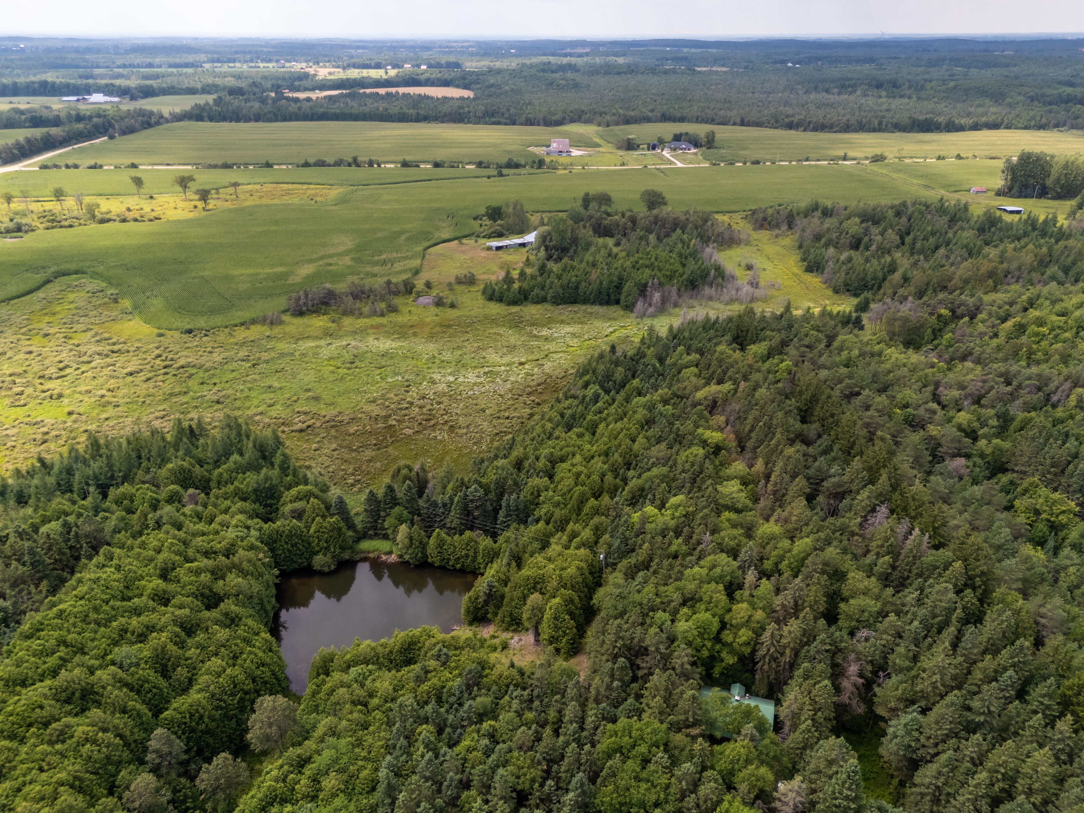 Welcome to your very own private escape on this 80+ acre recreational property in southgate, located on a quiet, unopened road allowance surrounded by a hardwood forest. This secluded retreat is perfect for disconnecting and enjoying the outdoors, whether for a quiet getaway, a potential hunt camp, or year-round recreation. The unique two-storey coach house features 2 bedrooms, a 3-piece bathroom, and an open-concept living space with a kitchen and dining area. Equipped with hydro, baseboard heating, and a quebec heater, it ensures comfort in all seasons, along with a steel roof, board and batten exterior, an attached two-car garage, a drilled well, owned water heater, and an approved septic system. Outdoors, the land is a mix of mature coniferous forest at the front and approximately 40 acres of deciduous forest at the back, creating a beautiful and varied natural landscape with income potential . The property was formerly enrolled in the managed forest tax incentive program, which could provide a financial benefit for new owners who choose to re-apply. A large, spring-fed pond and the mud river wind through the property, while the adjacent trail is ideal for hiking, atving, or simply enjoying the peace and quiet of the woods. A solid coach house with water and power offers additional storage or workspace. Just 15 minutes from durham and about two hours from toronto, this property offers access to the scenic and adventure-rich grey county, known for its outdoor activities like swimming, fishing, hiking, and skiing. This is a unique opportunity to own a quiet, secluded retreat where you can rest, relax, and listen to the birds and the breezes. With its 80+ acres of natural beauty, two-storey coach house, and potential income/tax benefits, this property is a dream for those seeking a rural escape or a recreational investment.