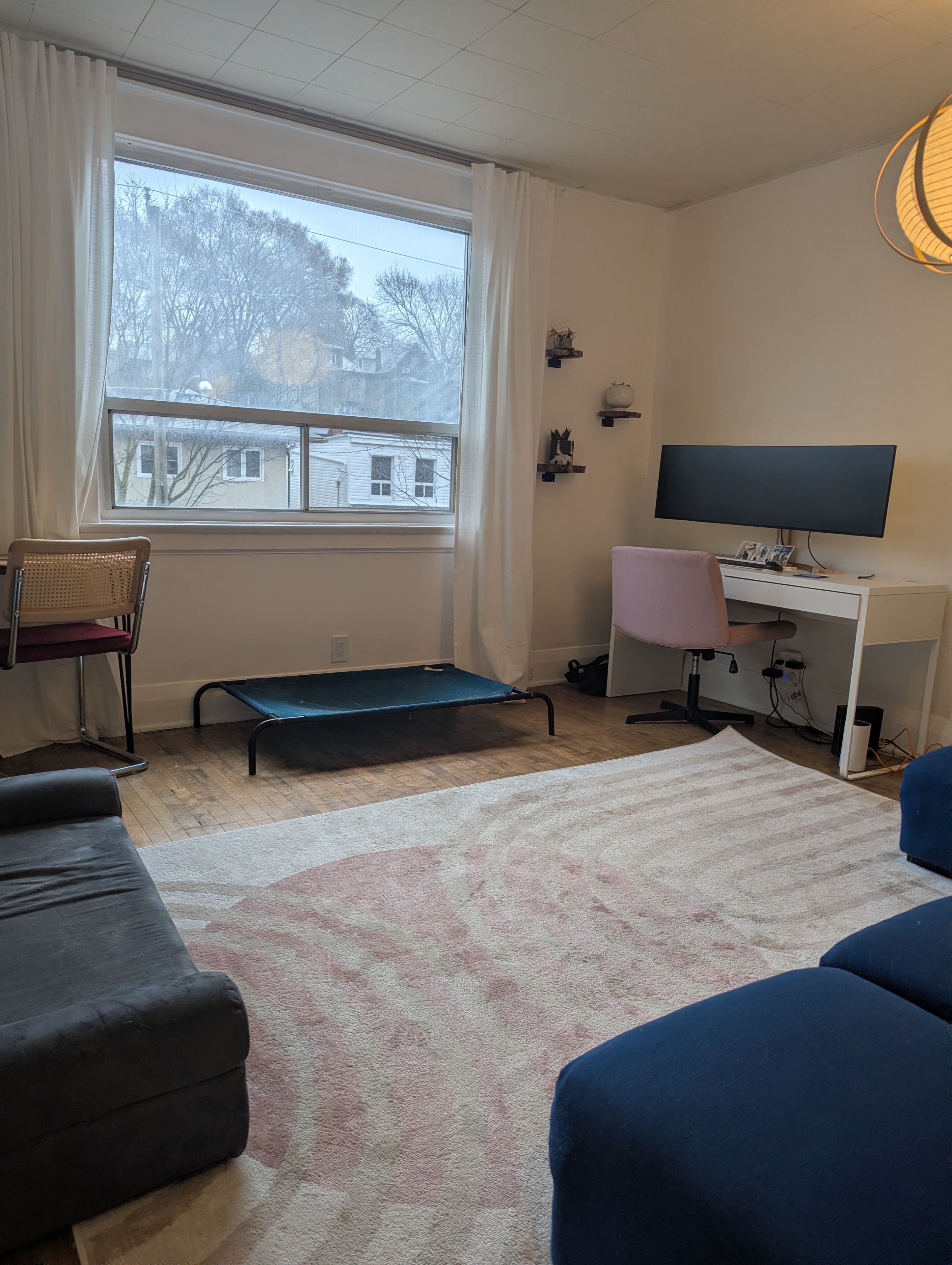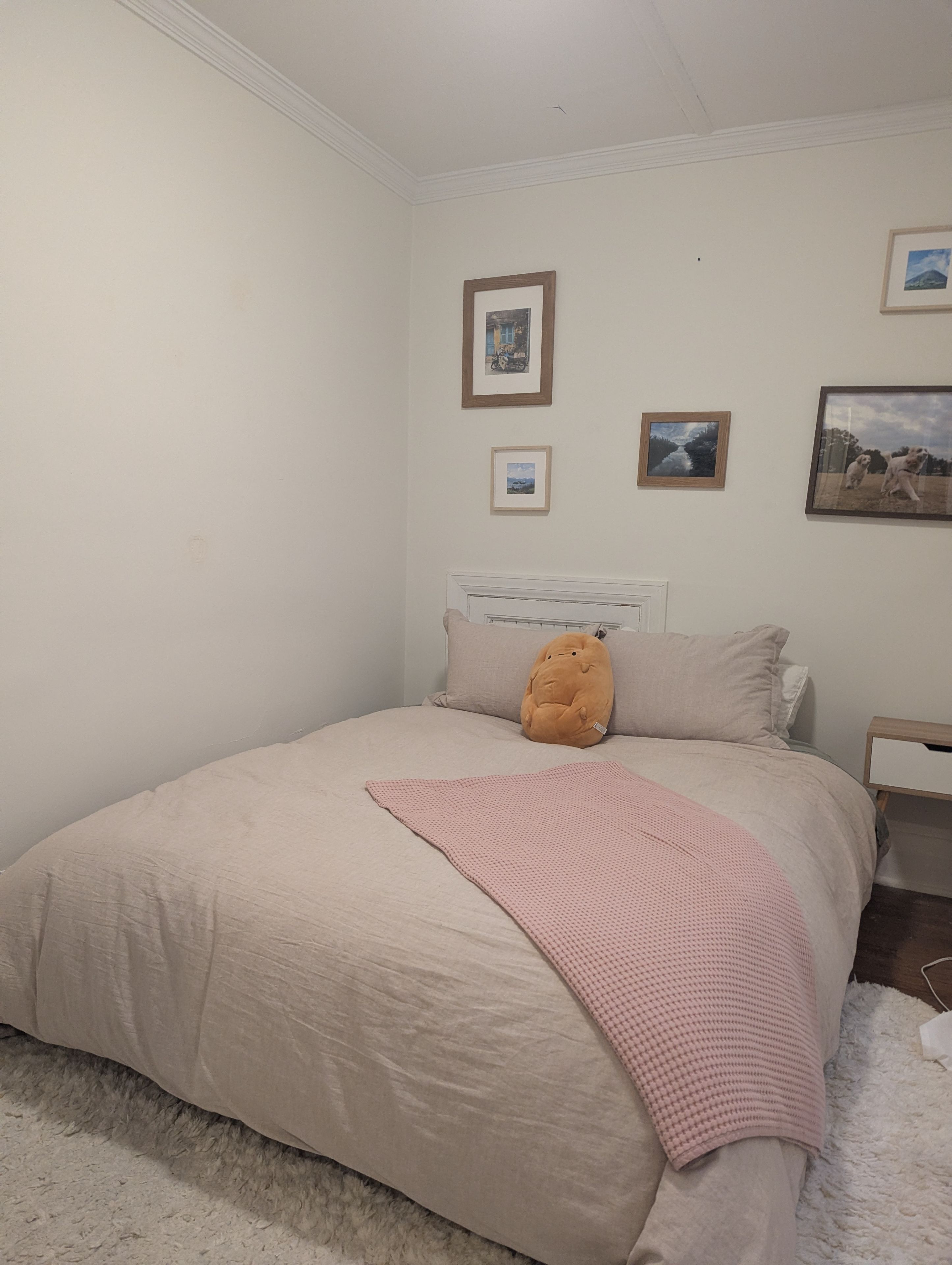 • Cozy one-bedroom apartment on a quiet tree-lined street.
