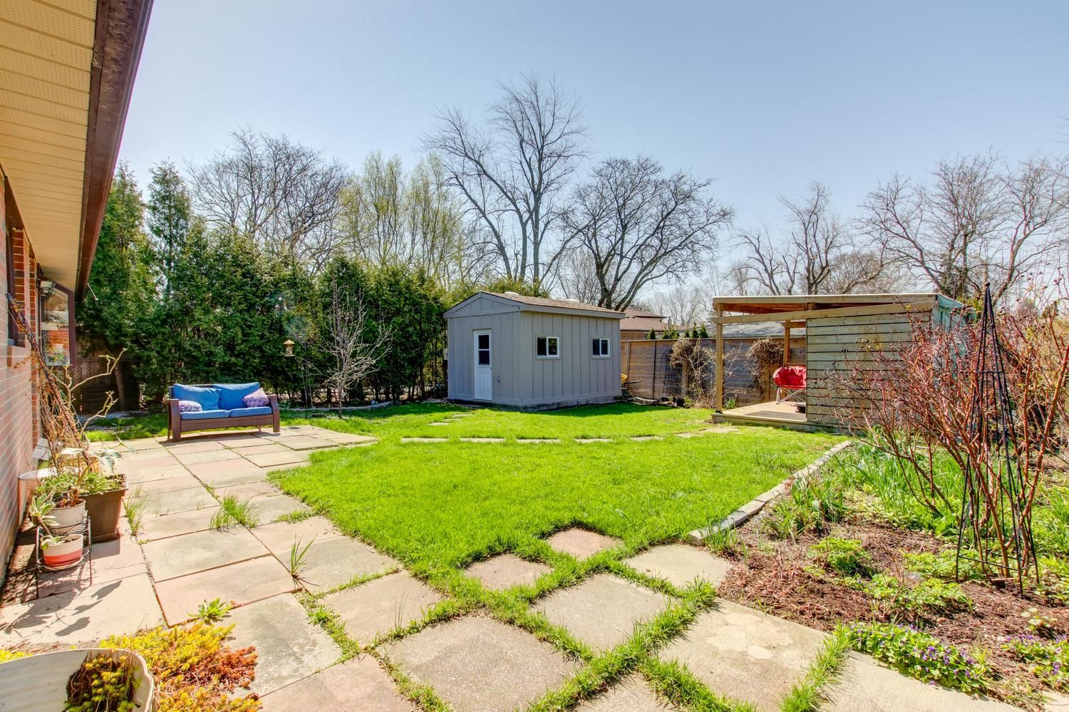 Gorgeous brick and stone detached bungalow on a premium 63' x 115' landscaped lot in desirable peel village ! Mainfloor features an eat - in kitchen with stainless steel appliances and garden window, oversized master bedroom with a large walk - in closet and open concept great room with electric fireplace. Nicely finished lower level with separate entrance, 3 - pc bath, two bedrooms, pot lights and corner wood stove ( excellent in-law suite potential ). High efficiency furnace ( owned ), hot water tank ( owned ), updated circuit breaker panel, new laminate floor (2026 ), glass insert front door and built - in shelving. Professionally landscaped yard with desirable south exposure, mature tress, cedar hedge, garden shed with hydro, 3 car driveway with french curbs, walking distance to schools, parks, shopping and transit. Amazing curb appeal, shows well and is priced to sell !