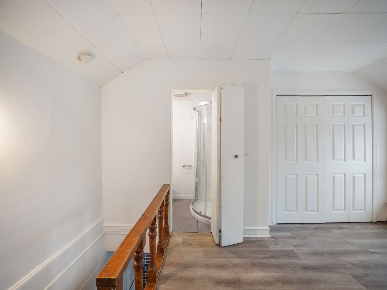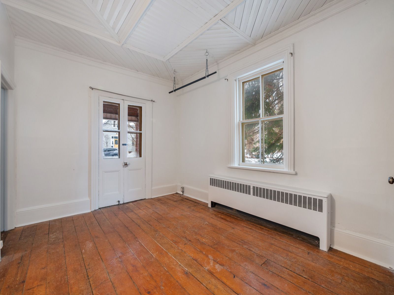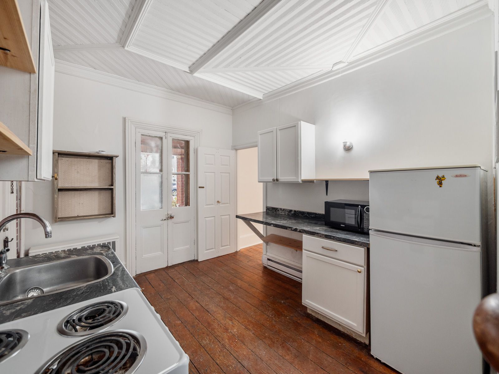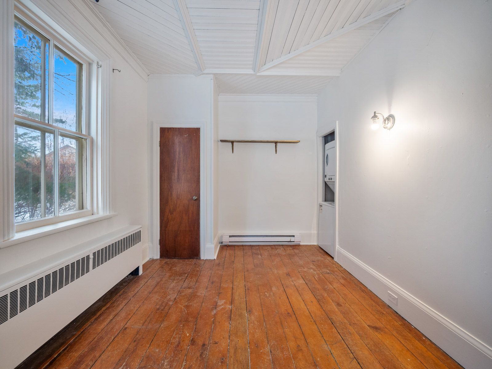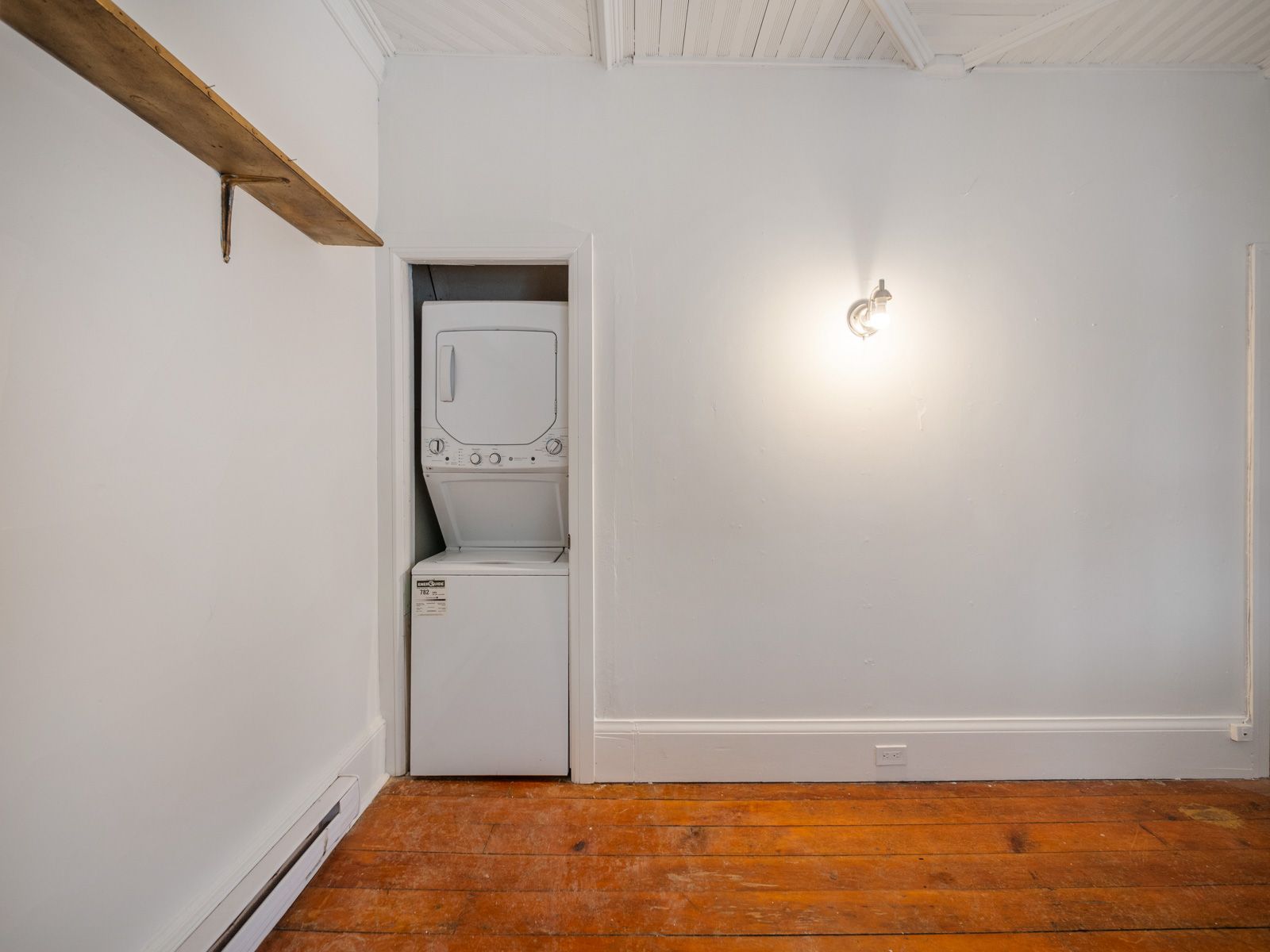 Classic, updated two storey, one bed corner suite in a well maintained and charming character triplex only a few steps from cobourg's famous beach and downtown! Inviting classic facade and beautiful masonry, high waffle ceilings, original plank floors, large closet and a large bedroom. Ample natural light with lots of windows. Walk out to covered front verandah. Versatile layout - large upper room could be a bedroom or living room. Ensuite laundry. This unit is the only one on the south side of the building, and there is nobody above or below you! Parking for one car and some outdoor space included in the rent! Beautiful tree lined street and with great neighbors. A rare opportunity for a unit of this caliber at this price point in an unparalleled location. Don't miss it! Tenant pays for separately metered water/sewer and hydro, and hot water heater rental. Landlord pays for gas water heating, snow and grass maintenance.