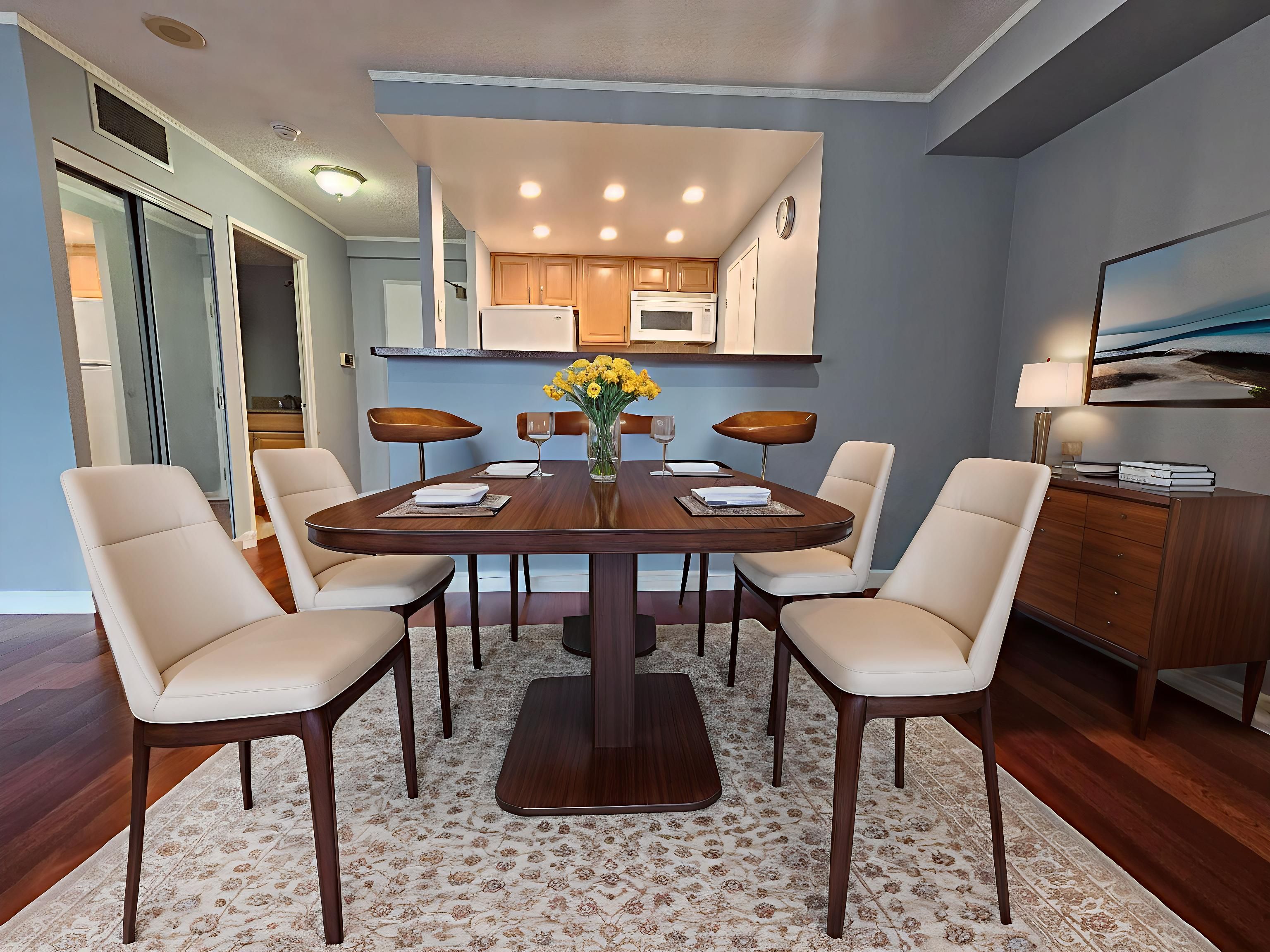 • Exceptional amenities include pool, gym, sauna, and 24-hour concierge.