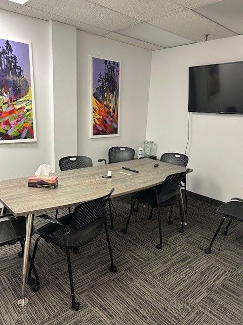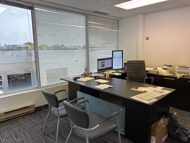 • Includes four private offices, boardroom, kitchenette, and reception area.
