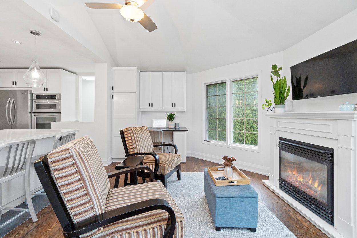 • Renovated kitchen with modern appliances and a large island for gatherings.