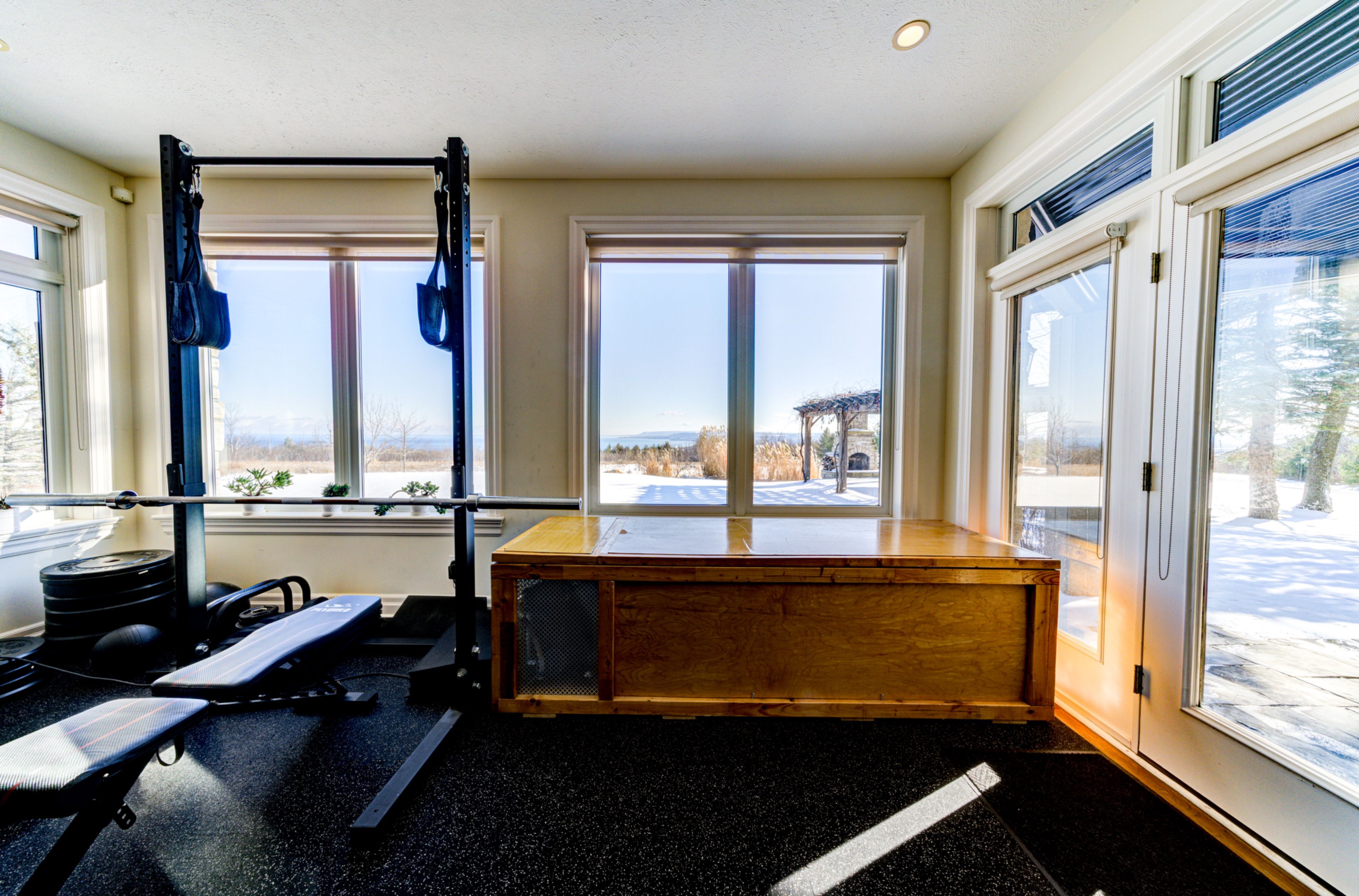 • Furnished with a sauna, cold plunge, and dedicated training room for wellness.