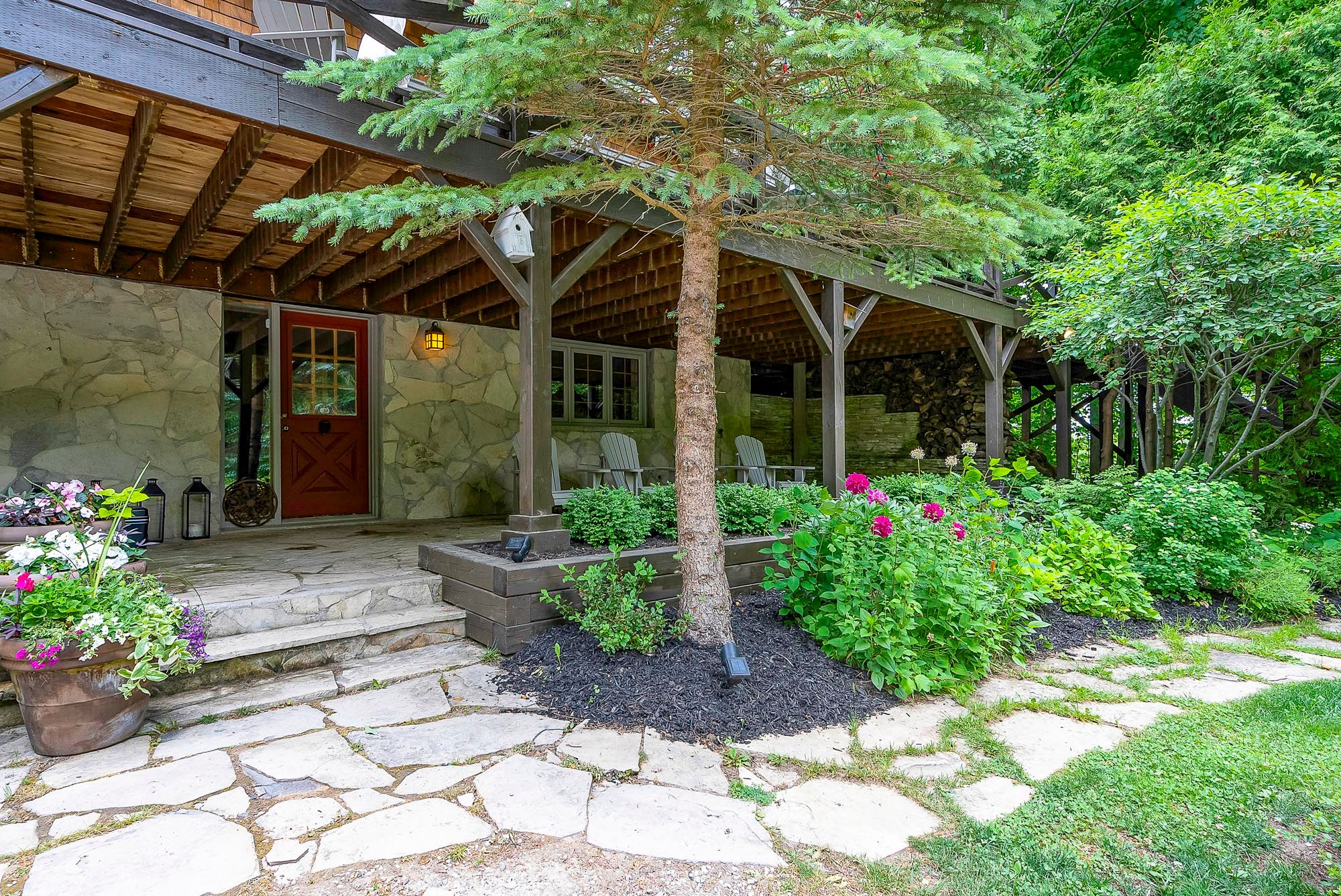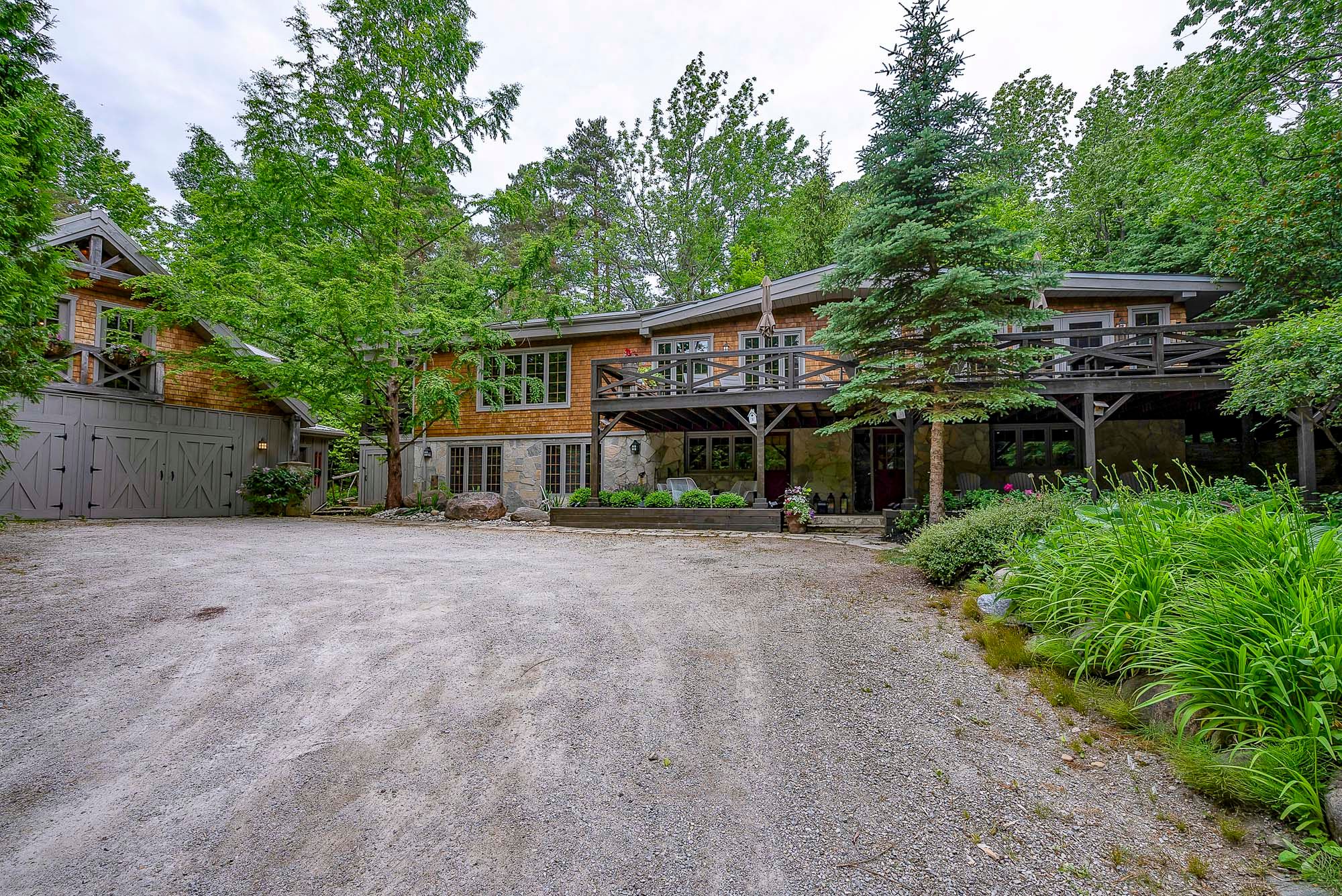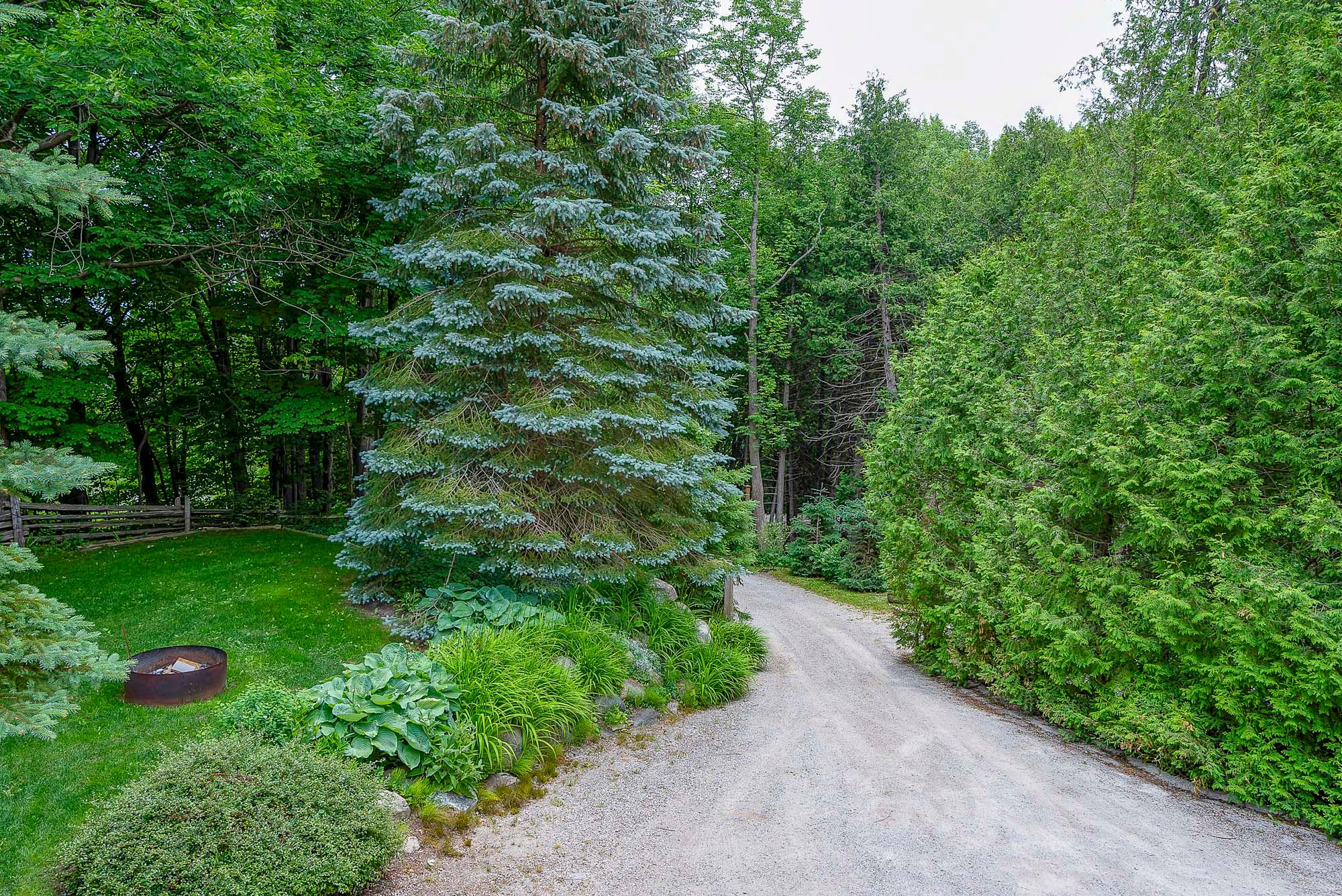 Le coin perdu a private 13-acre estate retreat! Welcome to le coin perdu, a rare sanctuary where timeless craftsmanship meets modern luxury living. Nestled on nearly 13 acres of former vineyard, this private estate offers trails, a managed forest with 300-500 new trees planted annually over 20 years, and a tranquil pond creating the ultimate retreat in nature. Step inside the custom-built residence completely renovated in 1998. Experience rustic elegance at its finest. Hand-hewn post-and-beam timber ceilings, flagstone and bc pine flooring, and two dramatic stone fireplaces showcase authentic artistry with locally sourced stone and granite finishes. Oversized windows flood the home with light, framing views of lush greenery. The gourmet kitchen features a striking stone sink, stainless steel appliances, reverse osmosis water system, and a dining area with a solid wood table and wraparound banquette perfect for hosting family and friends. The spa-inspired bath offers a jet soaker tub, rainfall shower, and a cedar sauna for four. Outdoors, unwind in the hot tub beneath a canopy of trees, refresh in the outdoor shower, or relax on expansive wraparound decks. The private primary suite includes its own deck for sunset views. A detached 2-car garage built in 2006, crafted with vintage barn board and fieldstone, features a finished 30x40 loft with kitchenette, brass sink, pool table, tv lounge, and full field stone bathroom with open shower ideal for entertaining. Located minutes from georgian bays pristine shoreline, meaford harbour, premier golf, ski clubs, hiking, biking trails, and vibrant local markets, le coin perdu offers an unmatched lifestyle of luxury, privacy, and adventure. This one-of-a-kind retreat blends european charm, rustic warmth, and modern amenities into a legacy property designed for those who value nature, comfort, and timeless beauty.