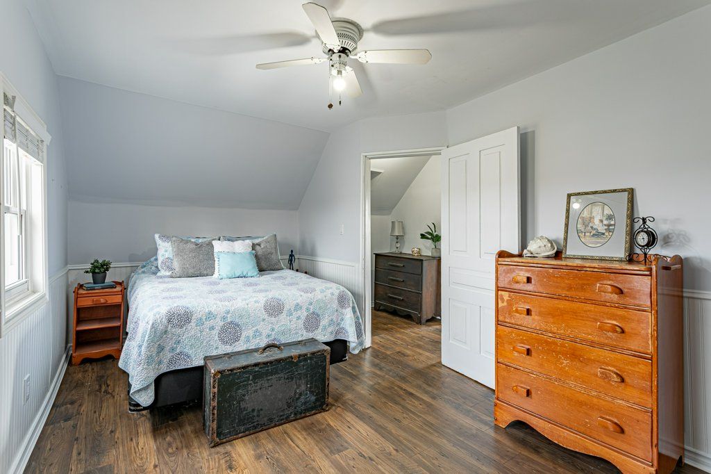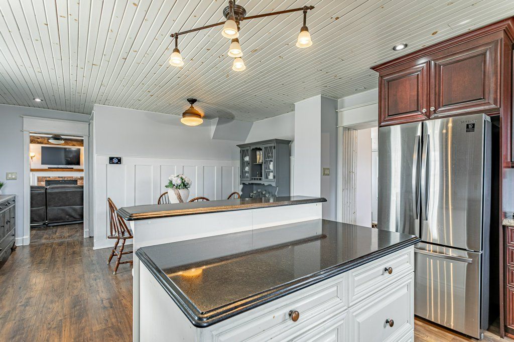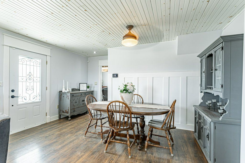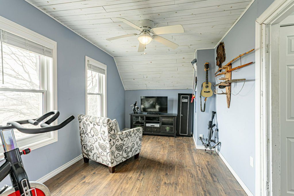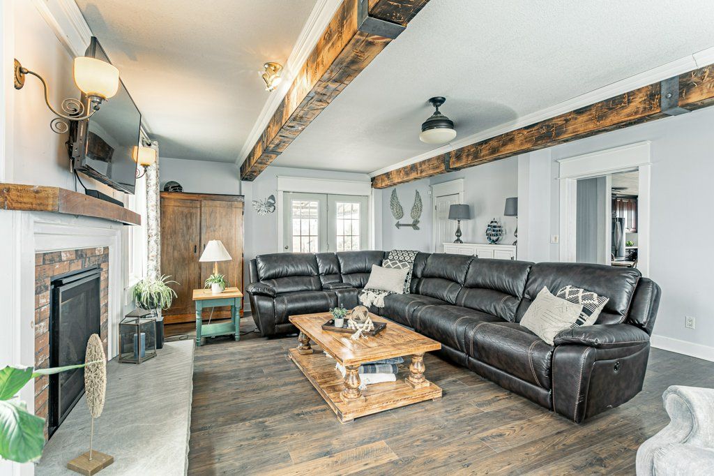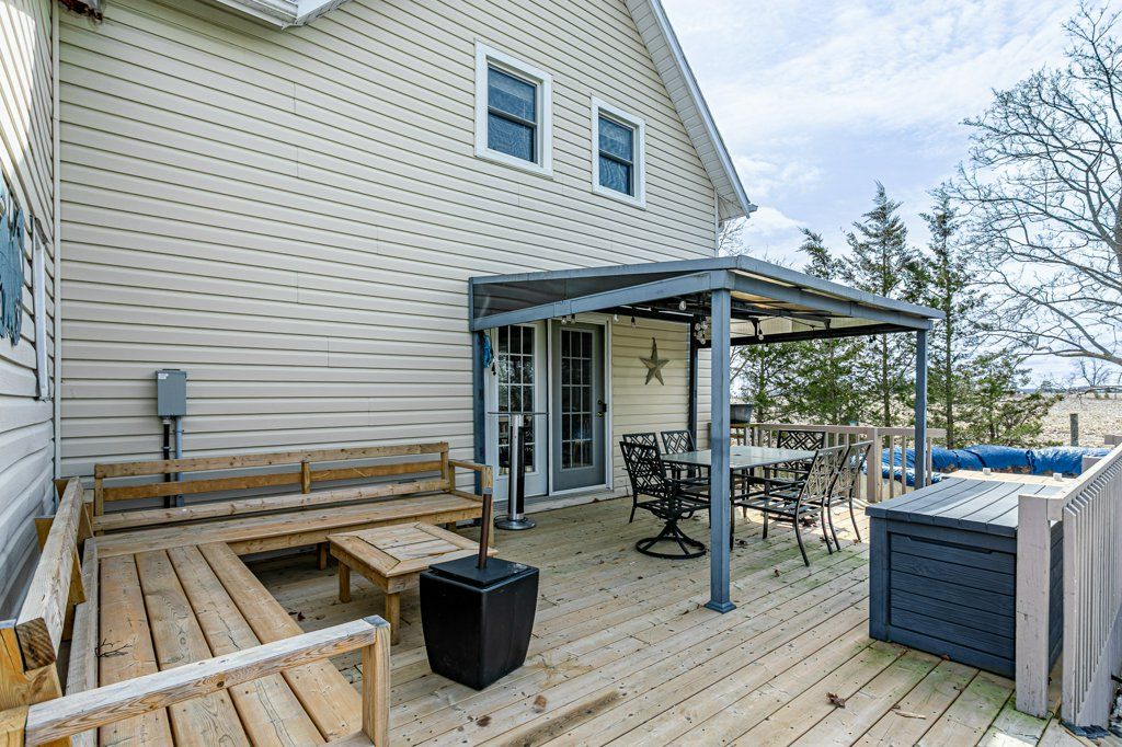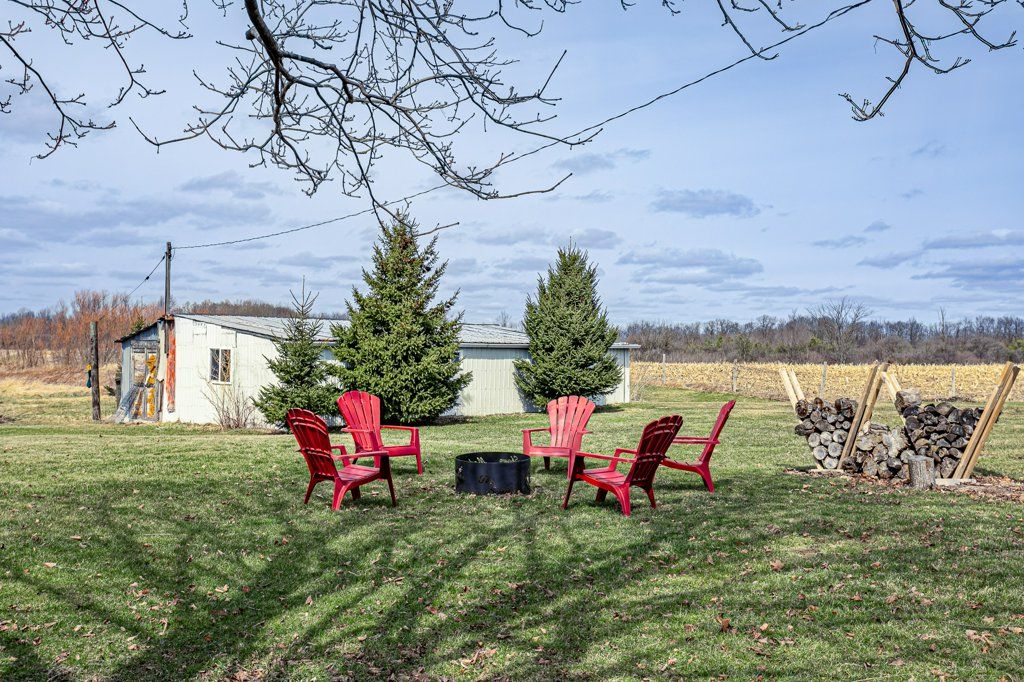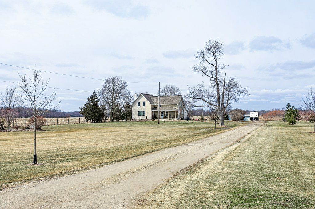 Charming two-storey farmhouse set on 1. 9 acres, surrounded by peaceful farmland views. The main level features a welcoming eat-in kitchen, cozy family room with gas fireplace an beautiful wood beams, with patio doors to a large deck, great for entertaining. The main floor also includes a large mudroom/laundry room with a convenient 2pc bath. The second level is home to 3 generously sized bedrooms and a beautifully updated 4pc bath. Outside, enjoy a professionally landscaped yard along with a separate workshop - perfect for hobbies or extra storage. A perfect blend of rural tranquility and comfortable family living. Updates in the past 5 years include furnace, ac, water heater, windows, doors, sump pump and landscaping.