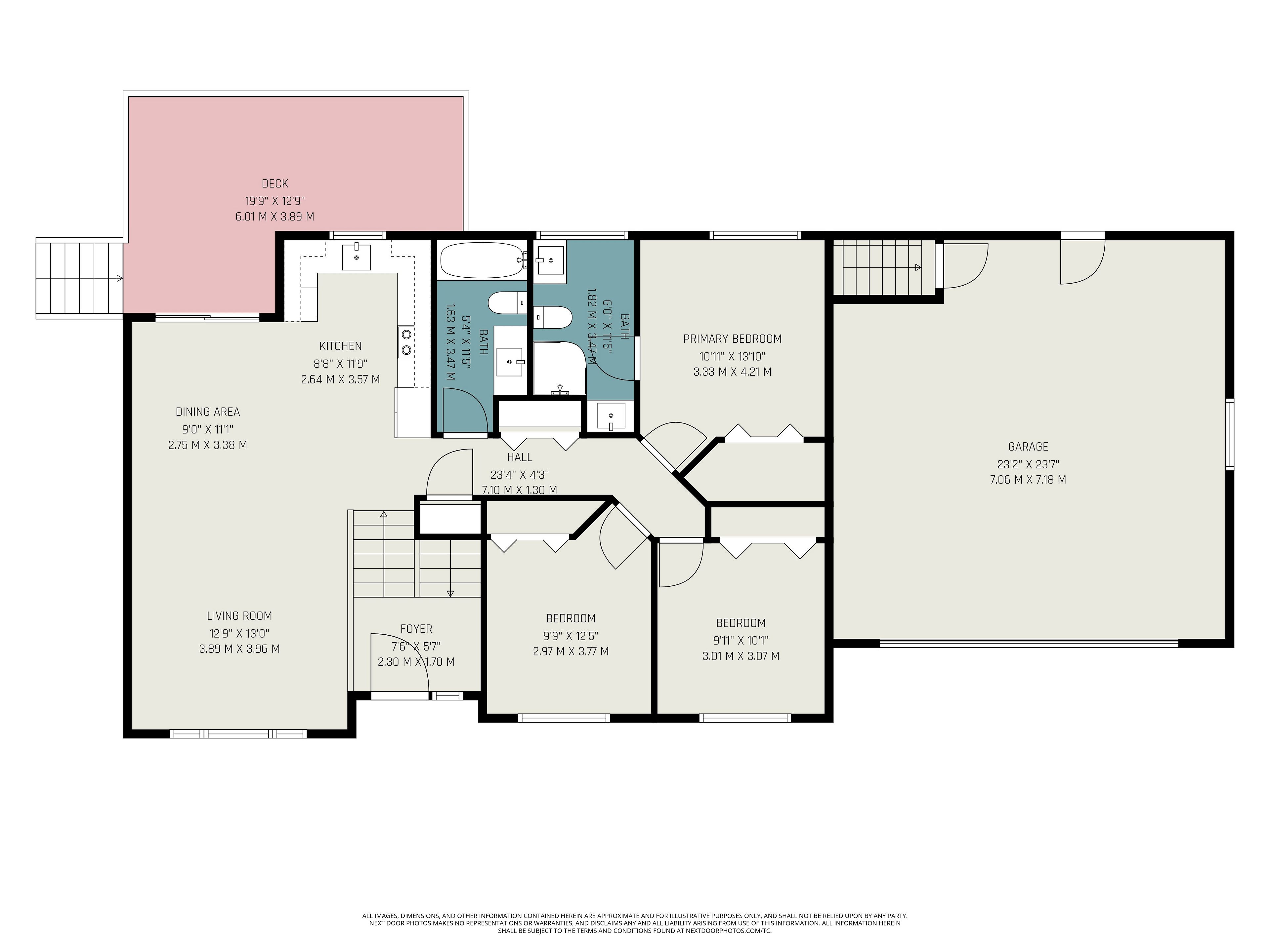 • Private backyard oasis with a deck, ideal for relaxing and entertaining.