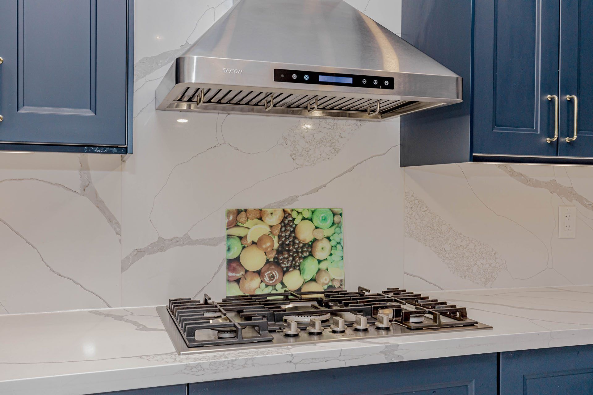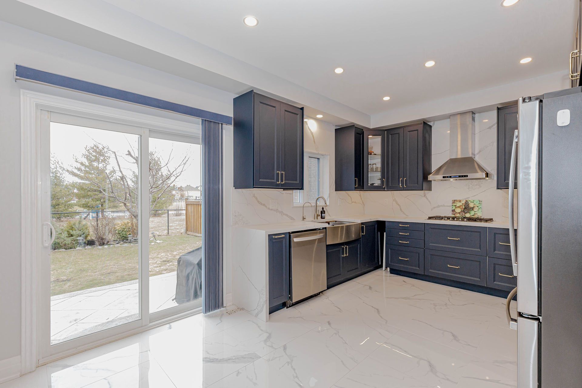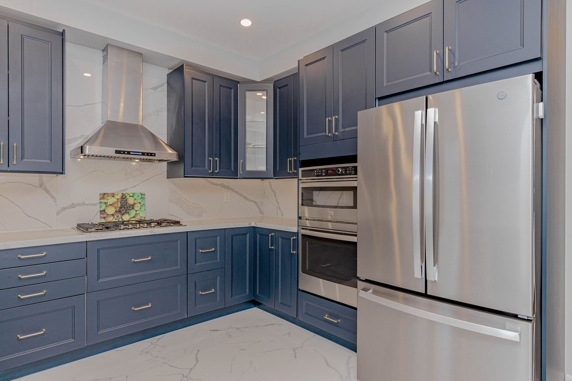 • Gourmet kitchen features quartz countertops and stainless steel appliances.