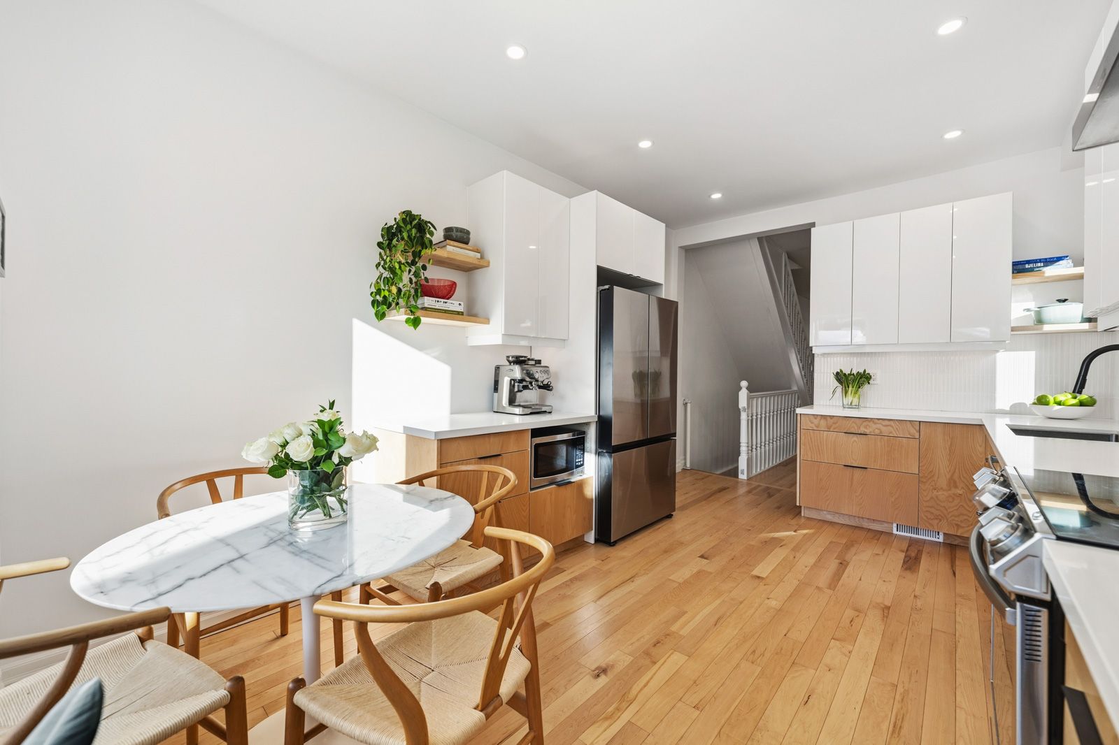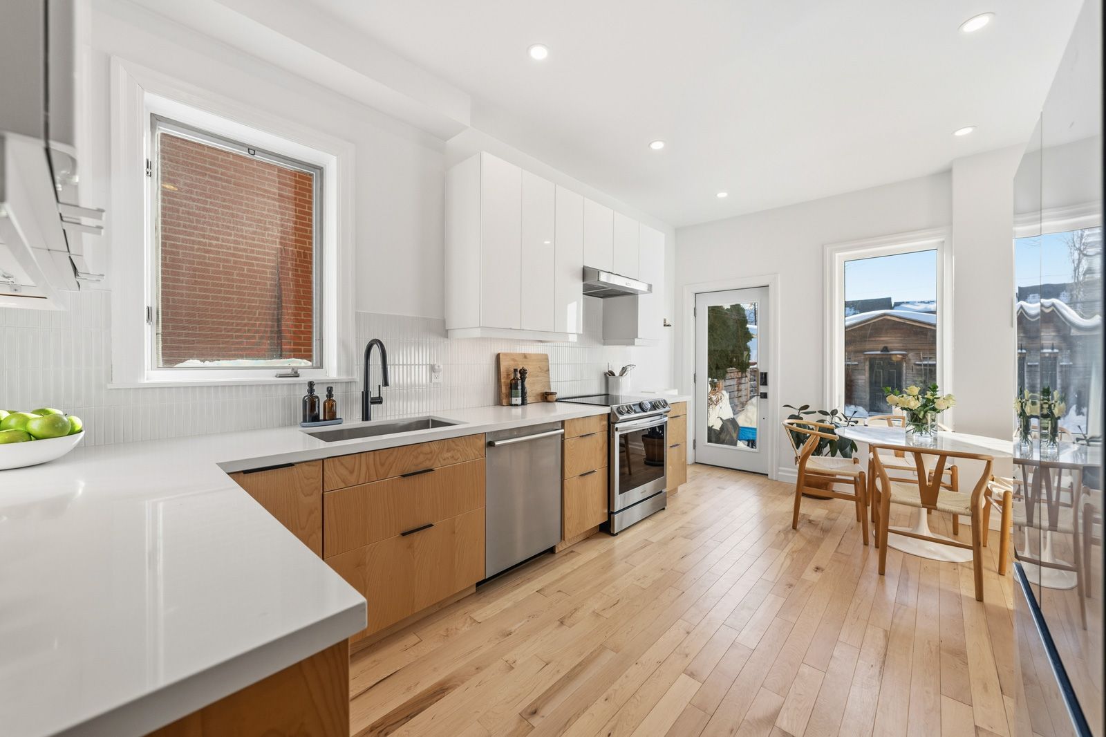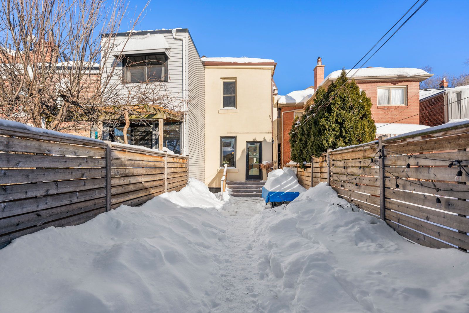 Welcome to 266 delaware avenue - a beautifully renovated red brick end of row house (like a semi-detached) set on a 14 x 127 ft lot in the heart of dovercourt village, offering over 2000sqft of living space. Built in 1898, this character-rich home seamlessly blends timeless charm with thoughtful modern upgrades - all in a location that truly delivers. From the moment you arrive, the large, private front porch, framed by a mature japanese maple, sets the tone. It's a peaceful, sun-dappled spot to relax, unwind, and enjoy the rhythm of the neighbourhood. Inside, soaring ceilings, and abundant natural light create an airy, welcoming feel. The living room is anchored by a stunning window, decorative fireplace, and new hardwood floors, flowing effortlessly into a generous open-concept dining area - perfect for hosting family and friends. The newly remodeled west-facing kitchen is bright, sleek, and highly functional, featuring an eat-in nook, ample cabinetry, and expansive counter space. Walk out to the beautifully landscaped backyard and new deck for seamless indoor-outdoor living, and enjoy the rare convenience of a private garage off the rear lane for parking and additional storage. The second floor offers three spacious, light-filled bedrooms, including a front-facing primary with three large windows and a double closet. A finished loft adds exceptional bonus space - ideal for a home office, playroom, or workout area. The basement features separate front and rear entrances and offers flexible space for a rec room, gym, or playroom, complete with a second bathroom, dedicated laundry room, and ample storage. There is also excellent potential to create a self-contained apartment for added income. All of this in an unbeatable, walk-everywhere location. Steps to neighbourhood favourites like mac's pizza, the common, paradise grapevine, and fiesta farms, with easy access to bloor st w, dundas west and geary avenue.