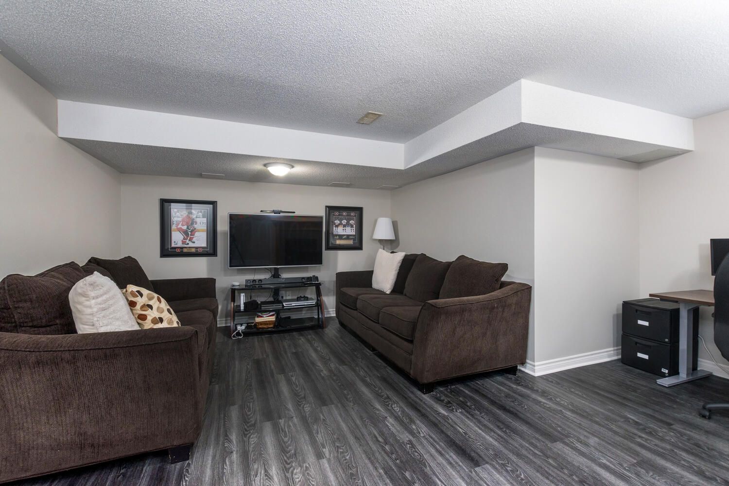 • Finished basement with extra living space and second gas fireplace.