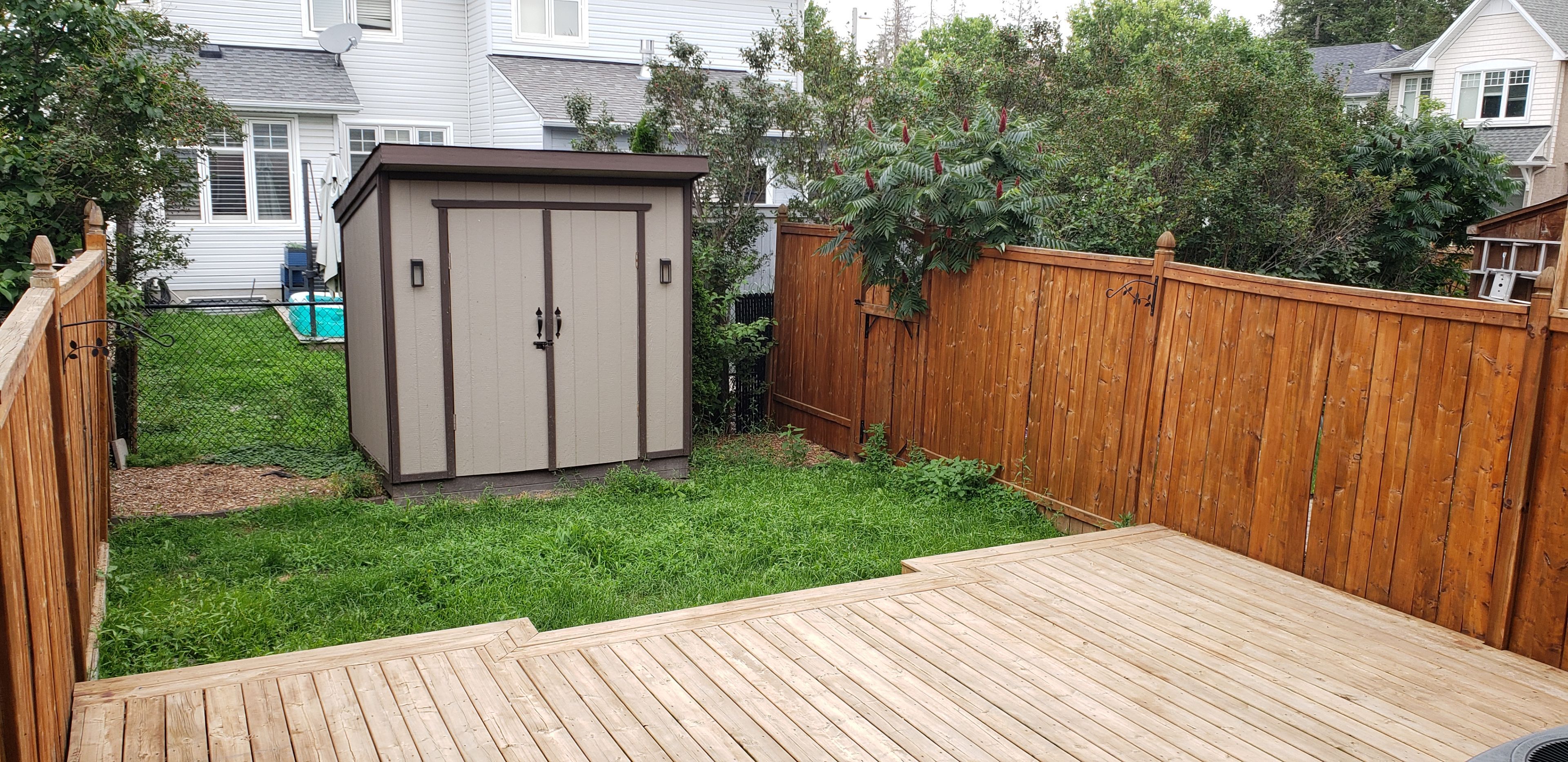 • Private fenced backyard with a large deck for outdoor enjoyment.
