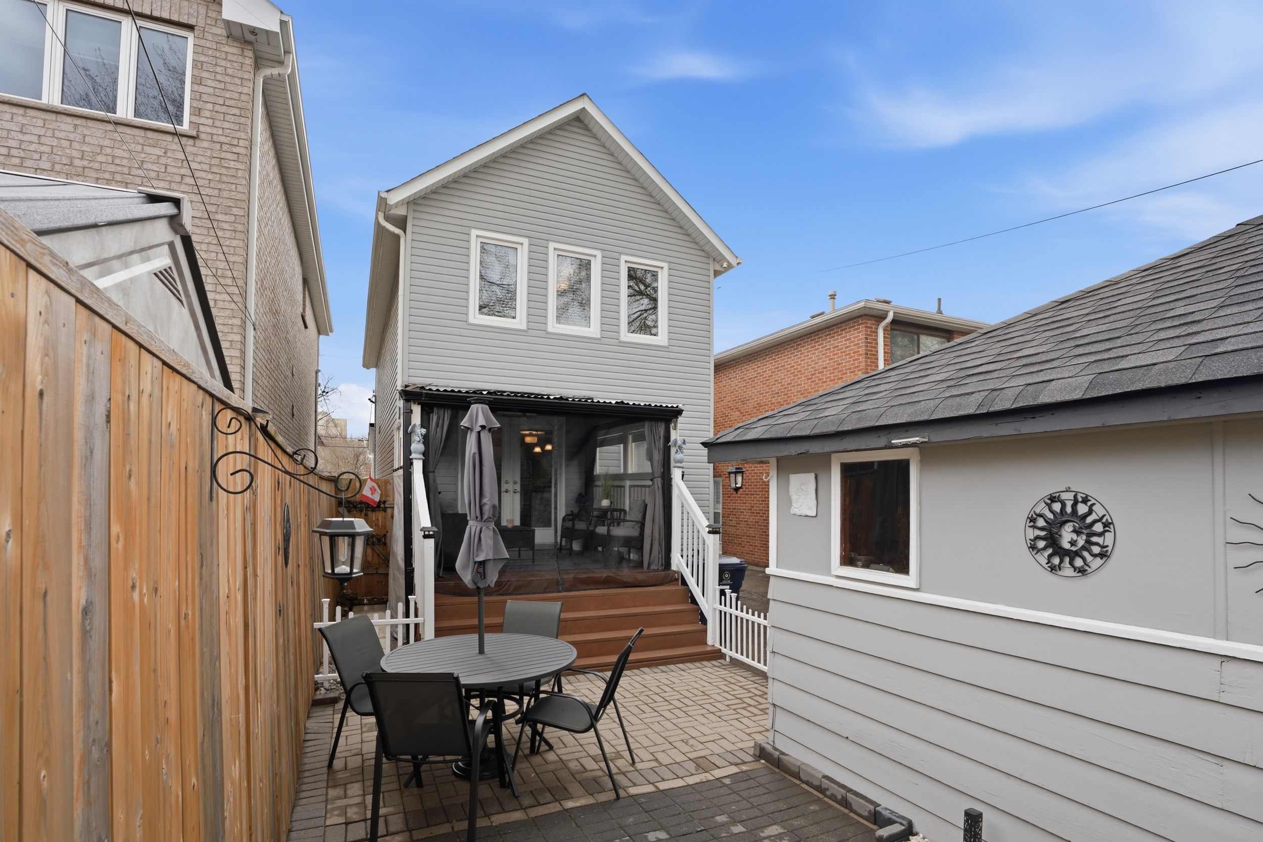 This beautifully maintained 2-storey detached home, built to last in 2015, is situated on a quiet street in the highly sought-after waterfront community of mimico. Located steps from the waterfront, mimico go station, ttc, quality schools, parks and everyday amenities. Inside, the main level showcases a bright and spacious open-concept layout with a separate family room. The modern black-and-white kitchen features quartz countertops, a large island with additional storage and seating, and ample cabinetry. Solid oak hardwood flooring runs throughout the main and upper levels, complemented by a stylish main floor powder room. A stunning double-door walkout leads to the covered back porch. Upstairs, you'll find three well-appointed bedrooms with high ceilings and abundant natural light. The primary bedroom offers a double closet with built-in lighting and large windows, as well as the second bedroom. The third bedroom includes a single closet and bright exposure. A sleek, modern full 3-piece bathroom with quartz countertops and a glass walk-in shower completes the upper level. The finished basement is a rare find, boasting approximately 8. 5 ft ceilings and a bright, open-concept layout. It includes a full modern bathroom, a spacious laundry room w/ barn door, utility room, and a cold room for additional storage. Basement upgrades: drywall and paint (2024), paint and new baseboards (2026). Outside offers exceptional curb appeal with a bright white front porch, mature trees, a fully fenced yard, and professionally landscaped grounds. Detached garage adds convenience, parking and additional storage. No rental items! Roof 2023. Enjoy being moments from local favourites such as san remo bakery, jimmy's coffee, revolver pizza, and monte's meat market