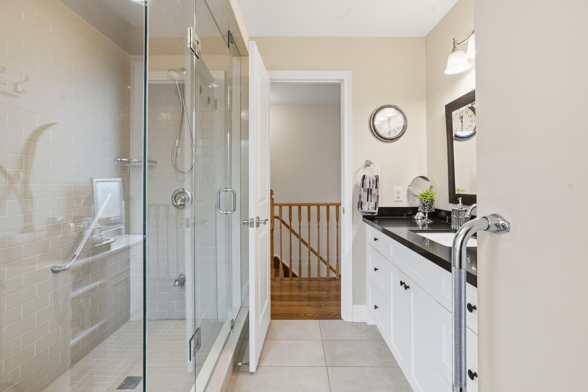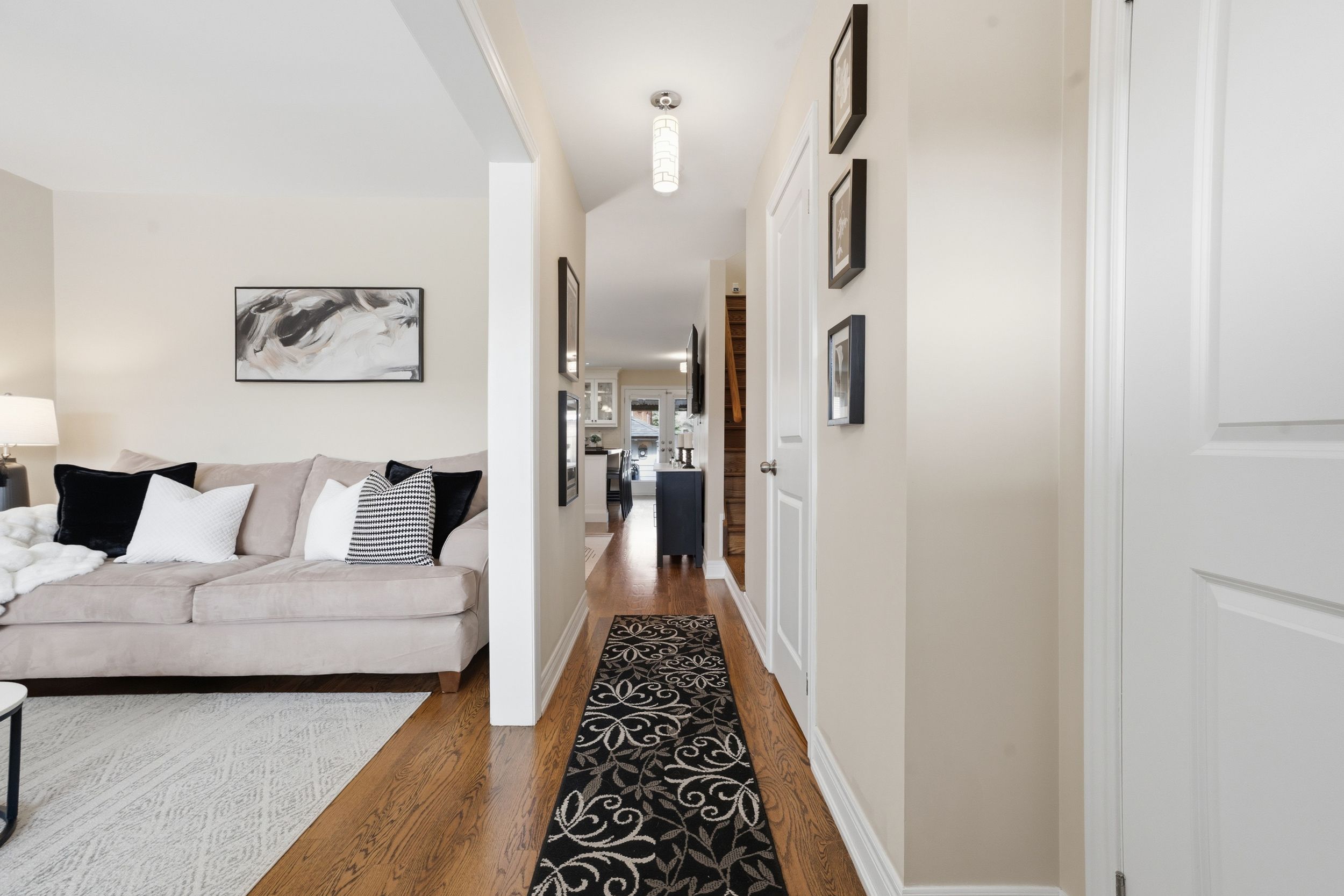 • Bright open-concept main level with modern kitchen and spacious family room.