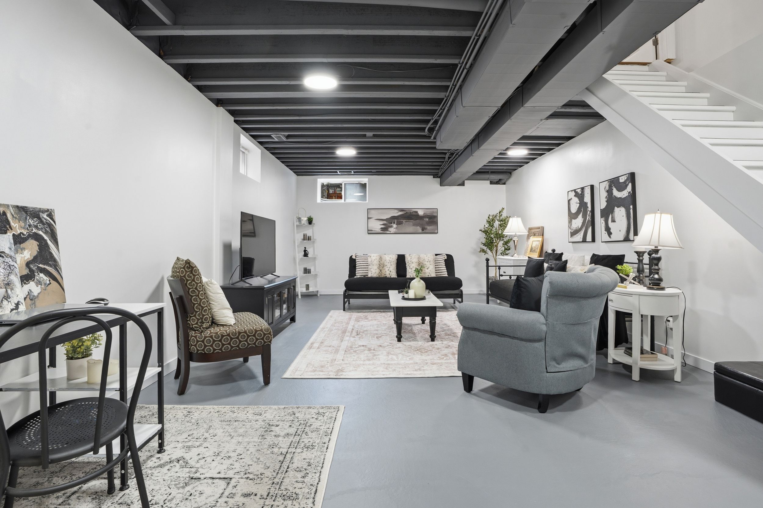 • Finished basement with ample space, a full bathroom, and laundry room.