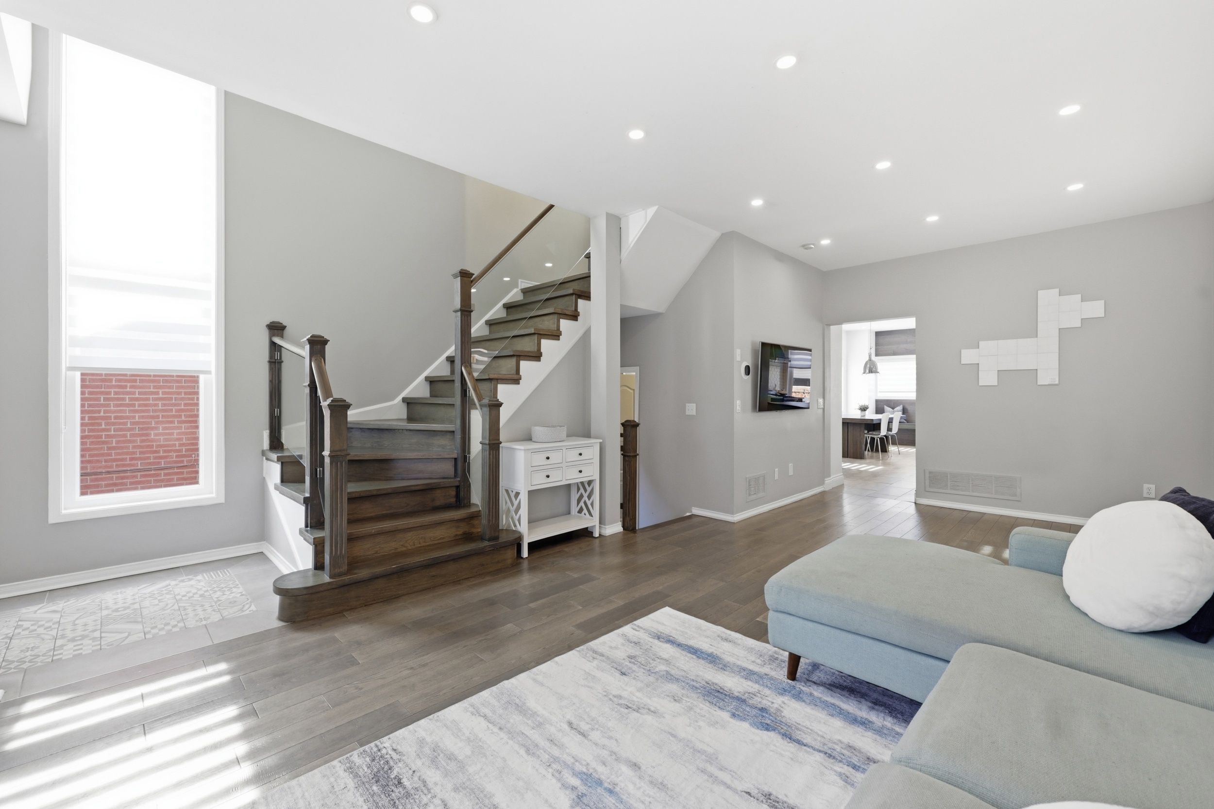 Don't miss this modern, bright carriage home which is one of the largest models on the street, with 3+1 bedrooms, 3 full bathrooms and powder room with almost 2,100 sqft of living space on a quiet, child-friendly crescent in oakville's desirable river oaks community. Enter into a spacious, open concept main floor with 9ft ceilings, large windows and hardwood flooring throughout the living and dining areas, plus renovated custom chef's kitchen with stainless steel appliances, oversized pantry, and walk-out to a large deck and backyard. Upper level with 3pc main bath and 3 bedrooms, including large primary suite with walk-in closet and 3pc ensuite bath. Fully finished lower level with rec room, additional bedroom, full bathroom, laundry and plenty of storage space. The spacious driveway boasts 2 side-by-side parking spaces at the front, so no need to juggle cars in the morning. The detached garage offers an additional parking space, so you can park up to 6 cars! Ev charger included! New heat pump/furnace and water filter (2024), tankless water heater (owned, 2022), most windows updated (2019), updated flooring and stairs (2017). Close to otmh hospital, highways, transit, and walking distance to great schools, parks, trails, shopping and loads of fantastic amenities.