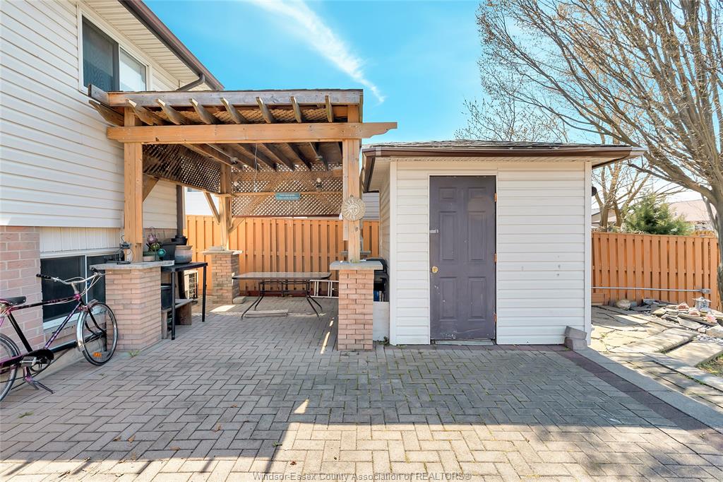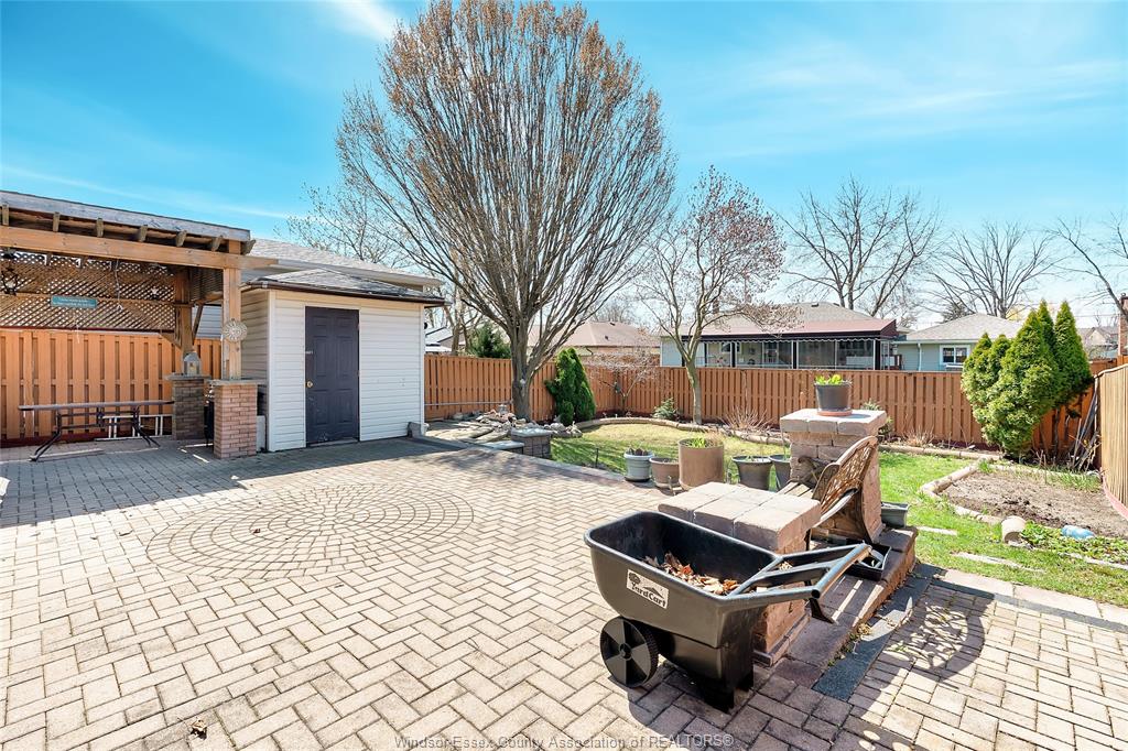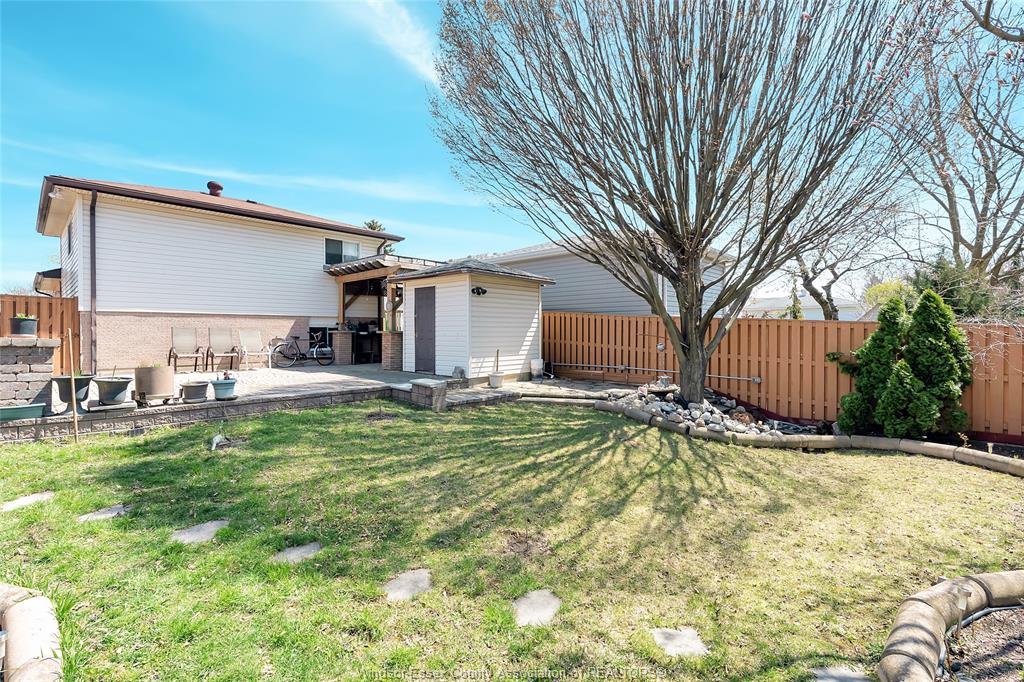 Great family area of fine homes, on a quiet cul de sac. 4 level backsplit with 3 bedrooms, 2 bathrooms, family room, games room, and even a fruit cellar. Full finished basement complete with ceramic flooring. Games room or office, and a full bathroom. Enjoy peaceful access to a fully finished fenced and private backyard with a large finished patio, and gazebo eating area, storage shed and beautiful surrounding gardens. Easy access parking with a paved driveway. On a quiet cul de sac in an area of fine homes. Close to schools, parks, shopping, dining, amazon delivery center, chrysler assembly plant, ymca, and e c row. Enjoy the private rear yard complete with a patio, gazebo dining area, storage shed, and a custom water fall surrounded by gardens.