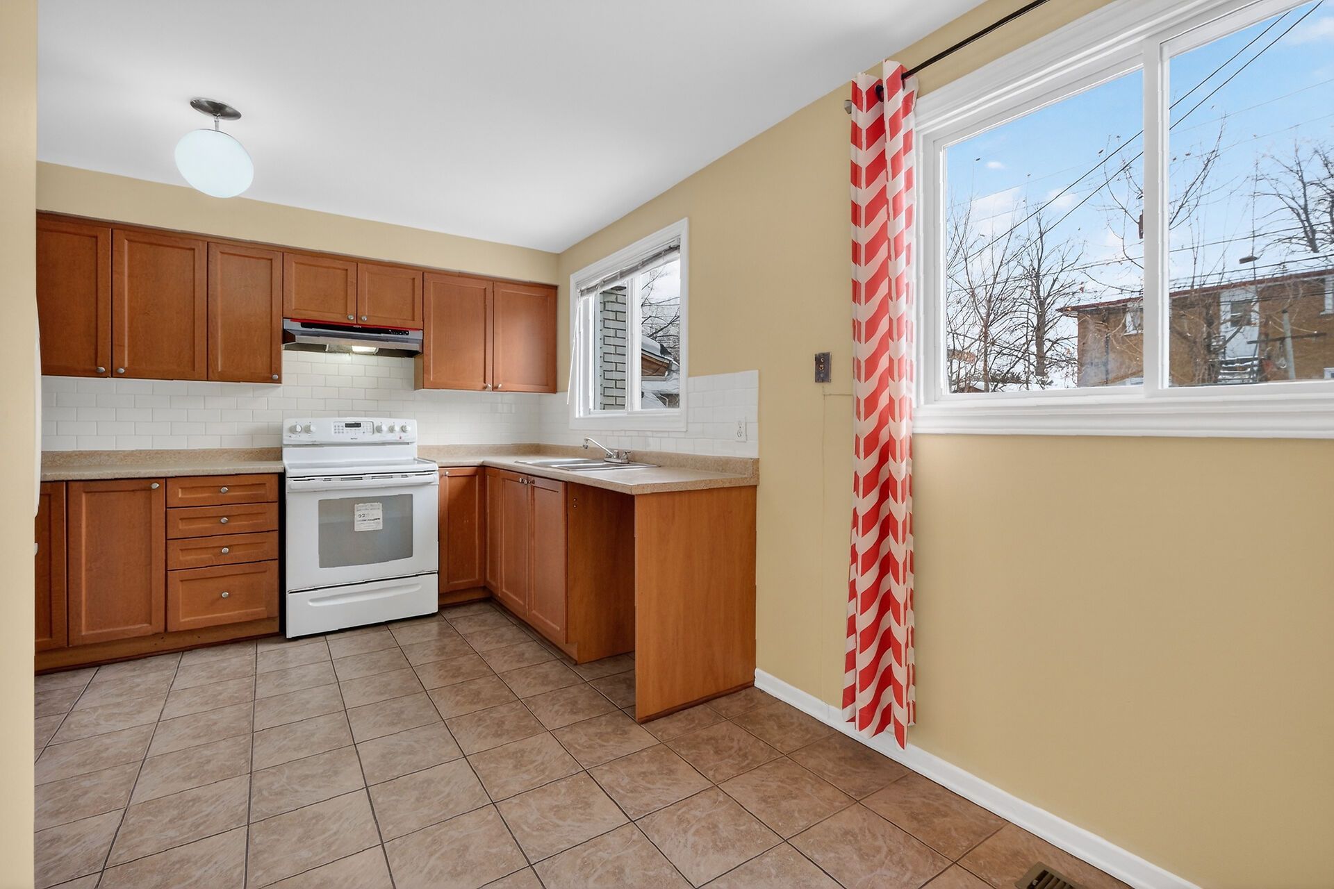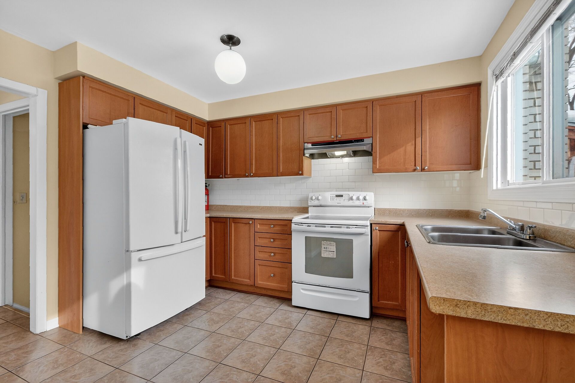 • Bright eat-in kitchen with views of a fully fenced backyard.