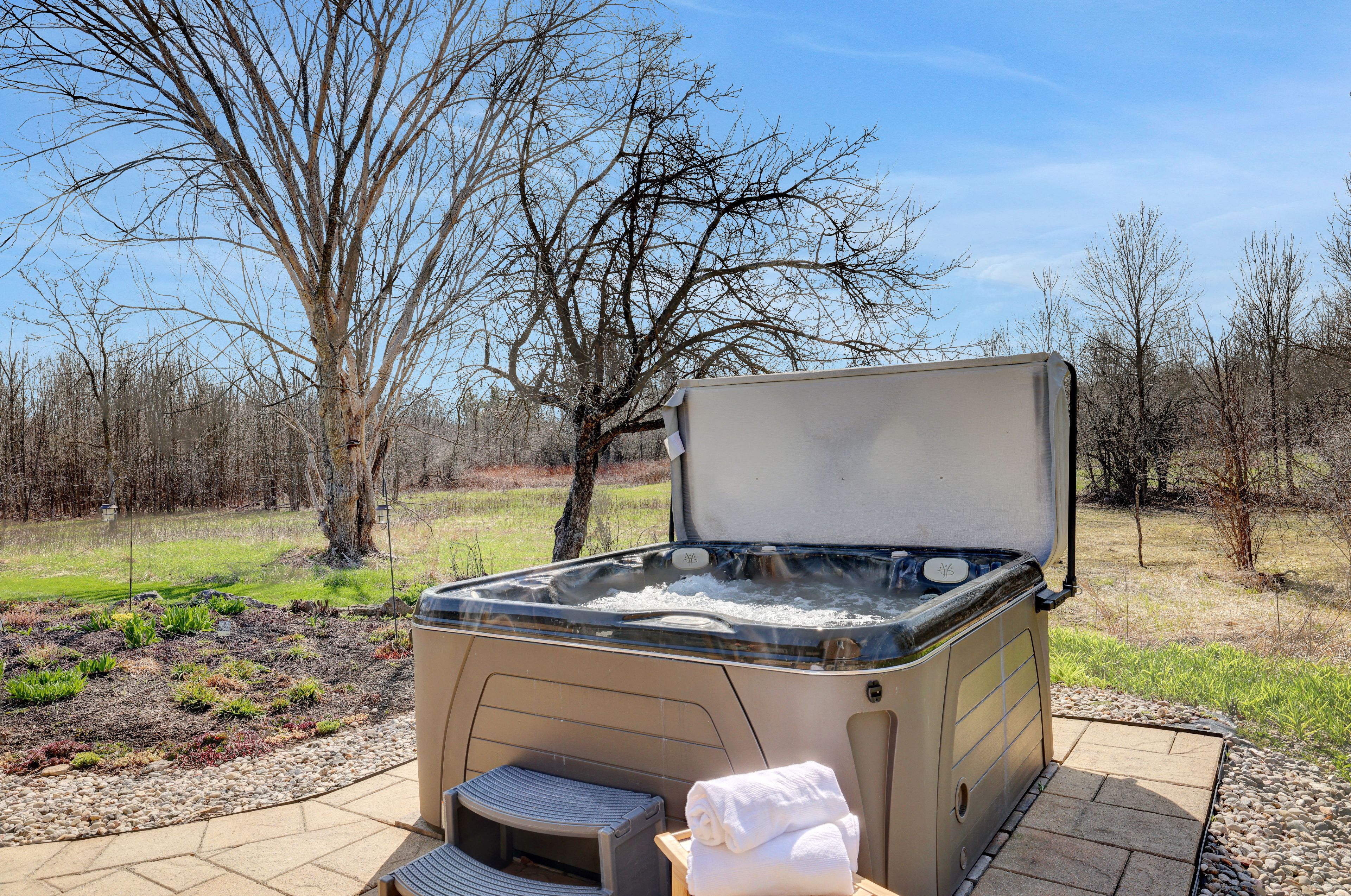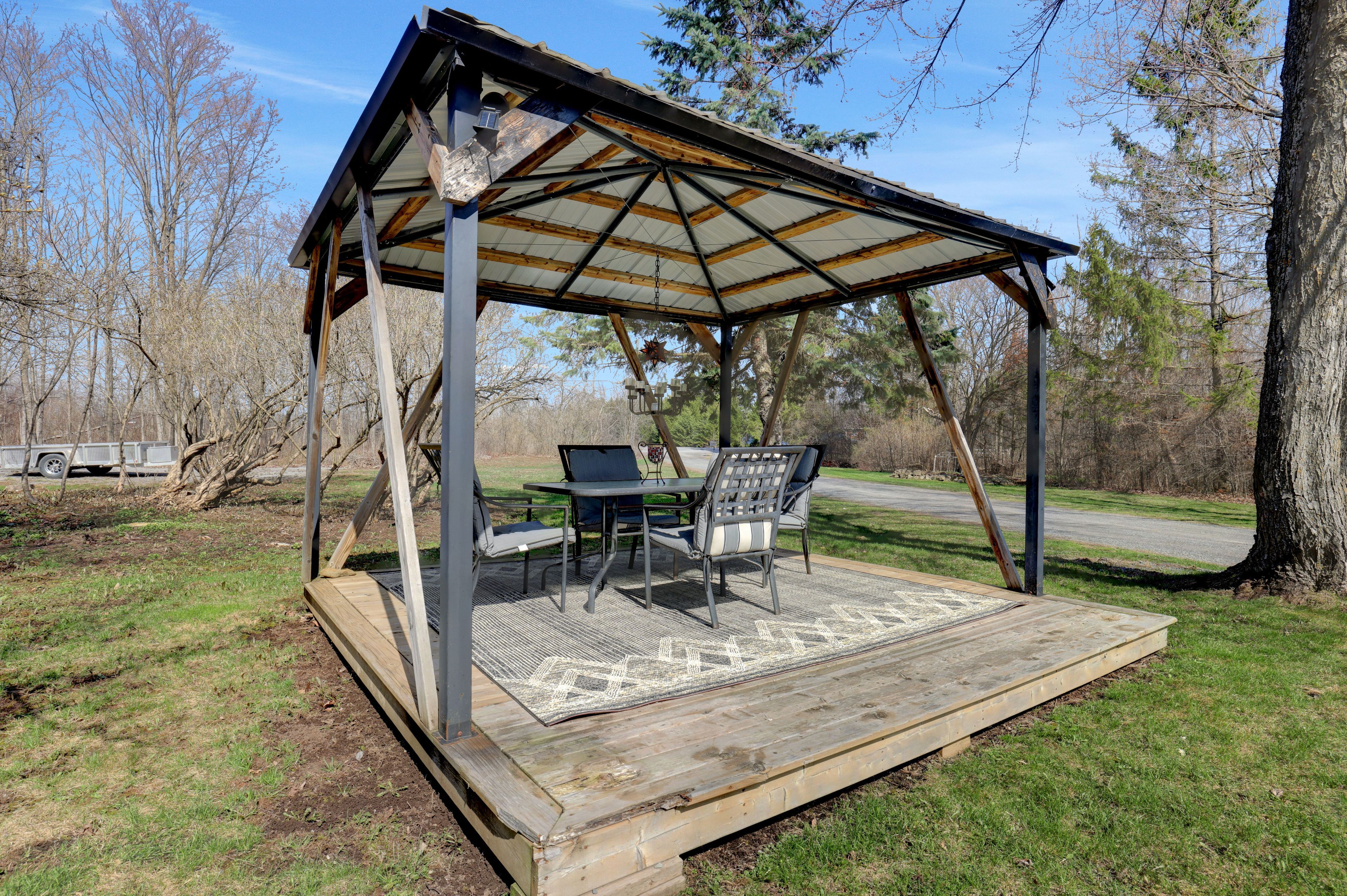• Outdoor features include a hot tub, gazebo, and classic old barn.