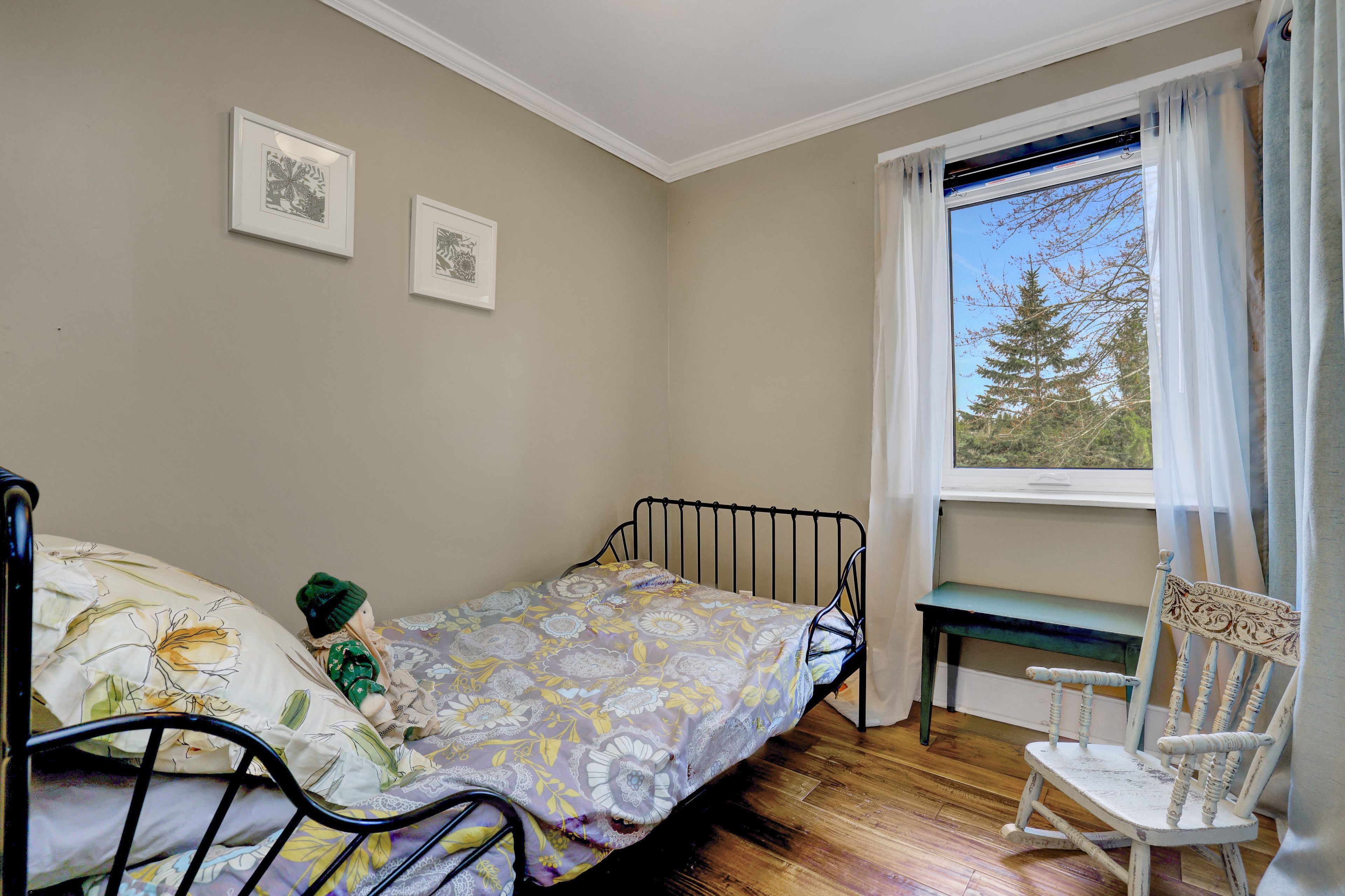 • Inviting front veranda with peaceful views of open fields.