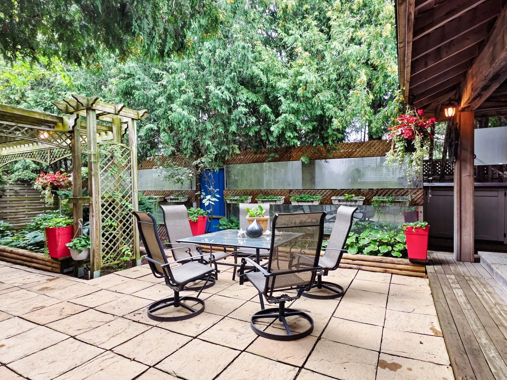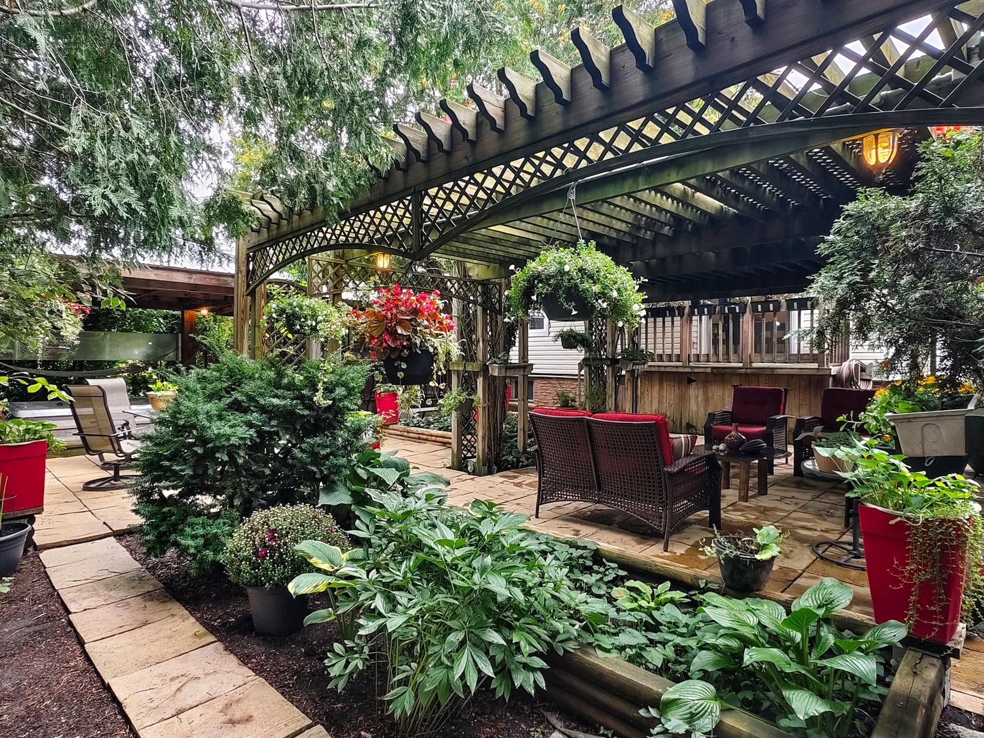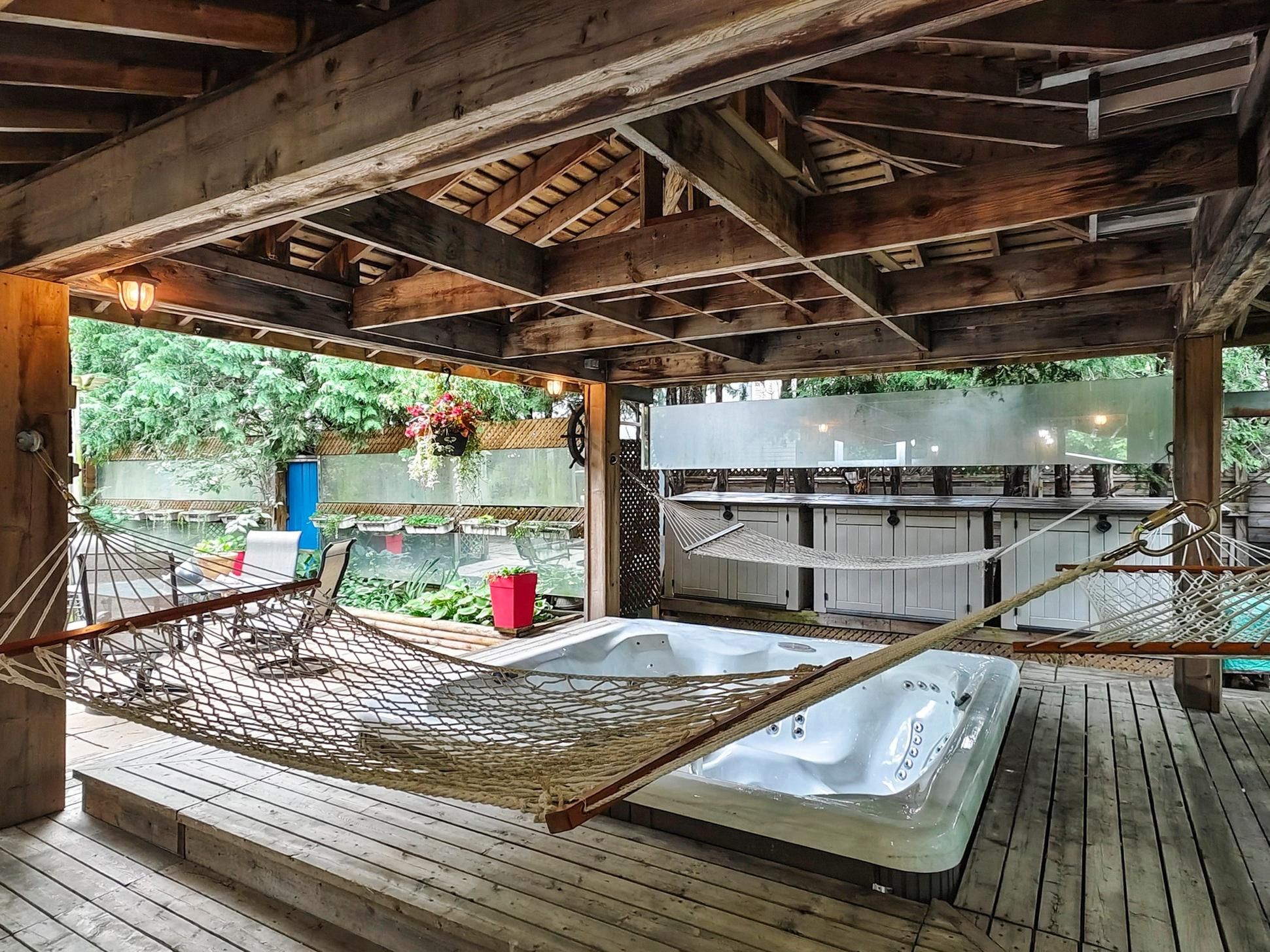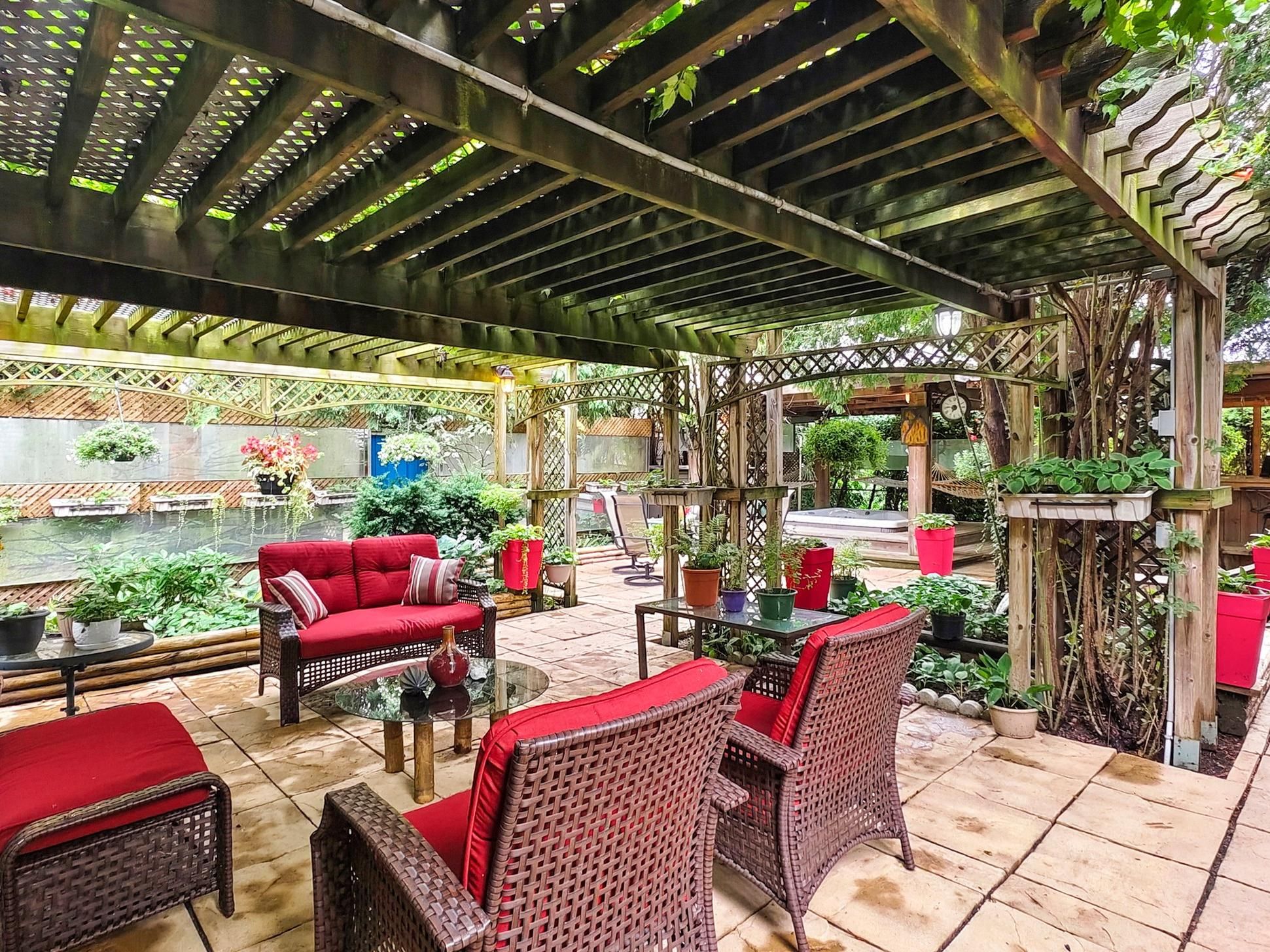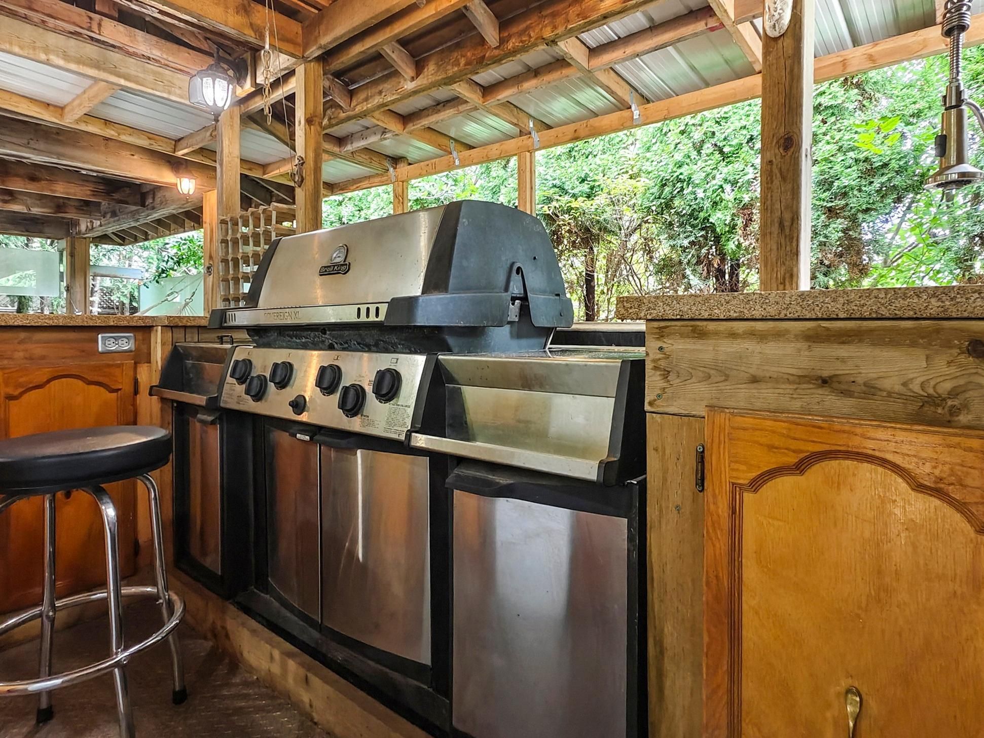 • Exceptional backyard with hot tub, outdoor kitchen, and mature trees.