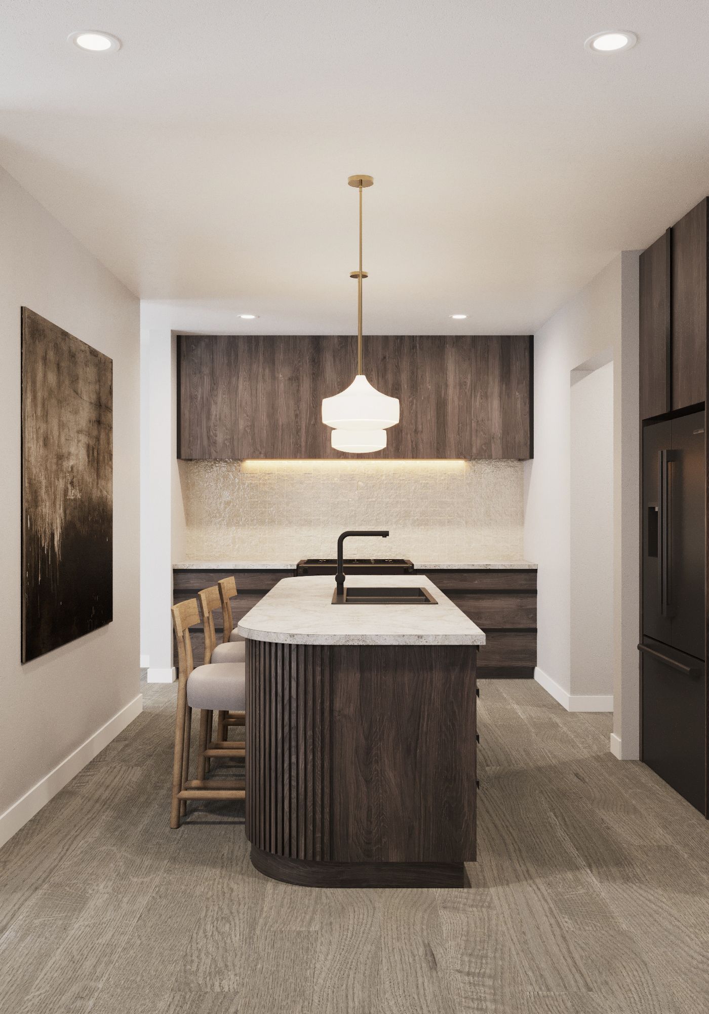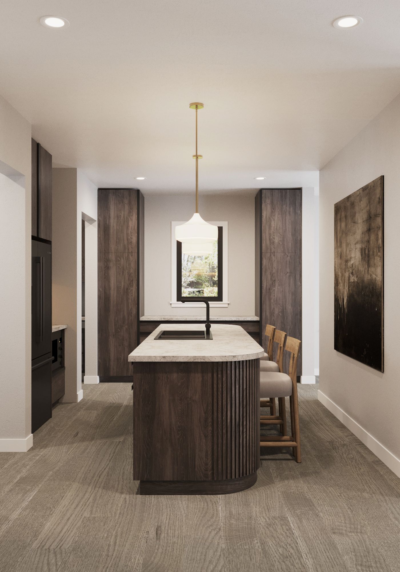 • Customizable kitchen with a large island and choice of finishes.