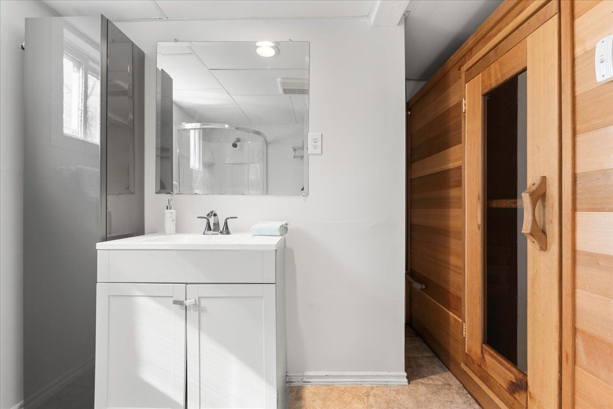 • Walk-out basement with two bedrooms, sauna, and private entrance for guests.