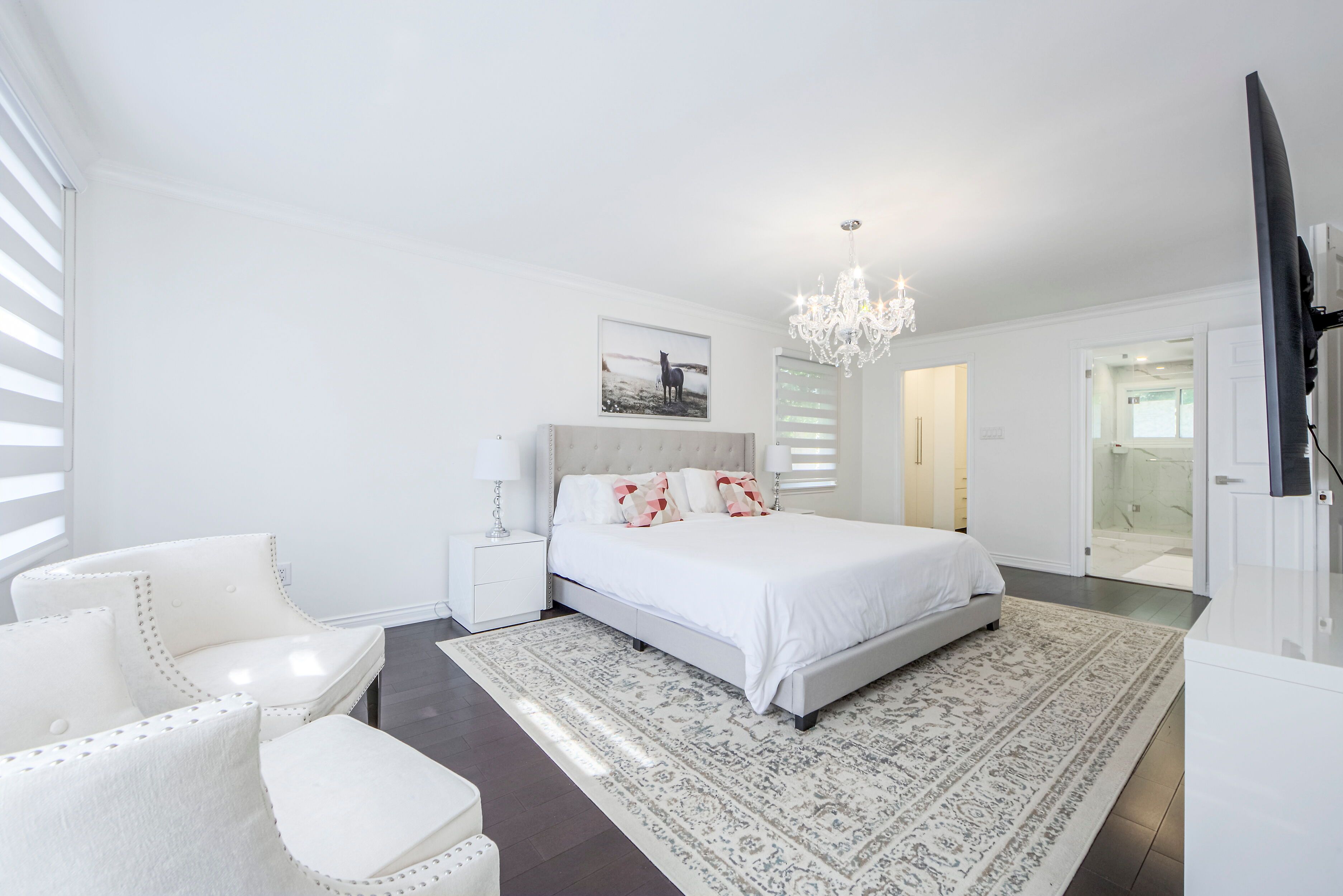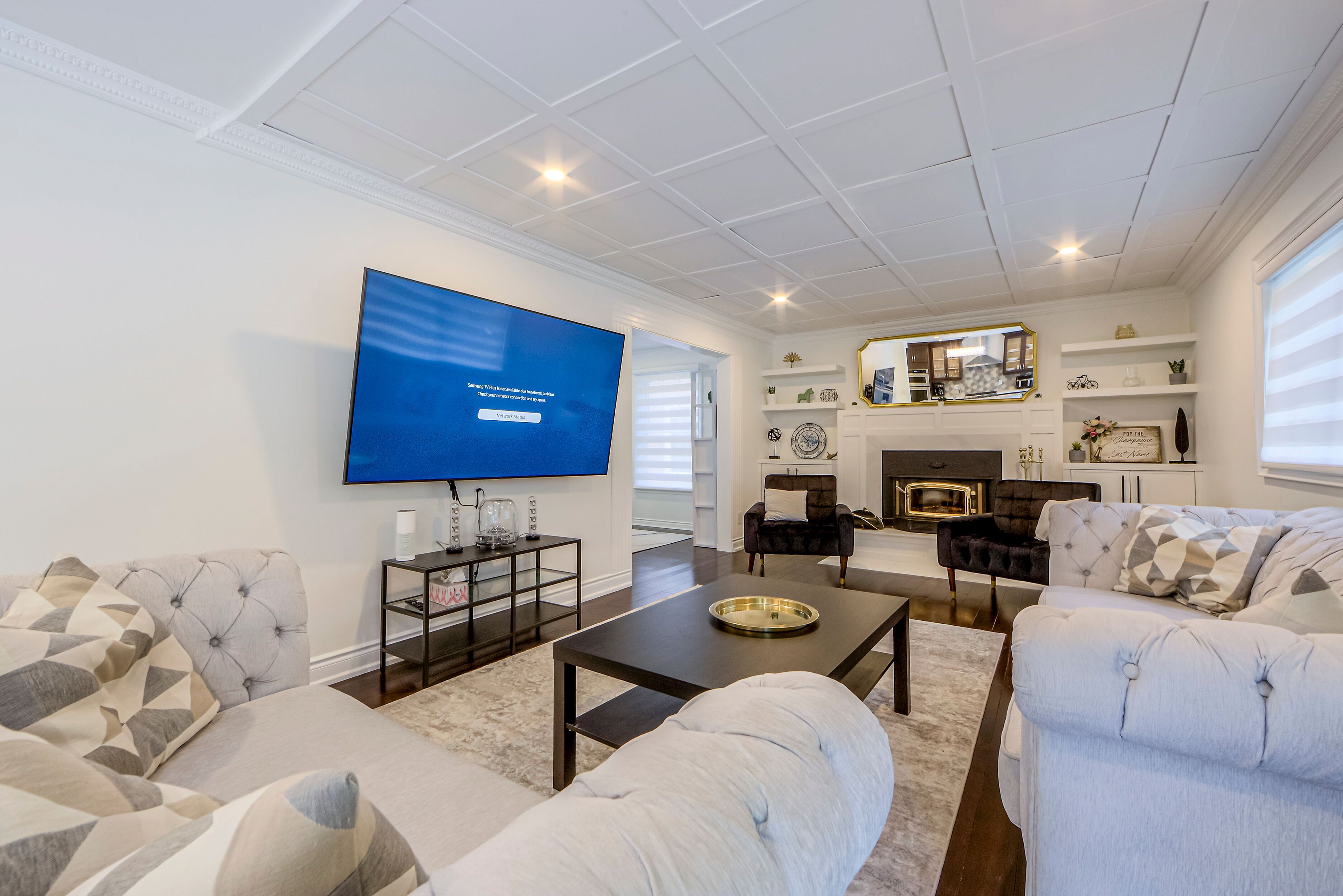 Welcome to this exceptional short term & furnished, two-story luxury detached home, ideally situated in a private, quiet, and highly sought-after neighborhood. Offering approximately 3,000 sq. Ft. Of beautifully designed living space, this residence features four generously sized bedrooms and premium finishes throughout. The bright, fully renovated eat-in kitchen showcases a large center island with breakfast bar and seamlessly opens to an elegant family room, highlighted by a high-efficiency wood-burning fireplace insert, hardwood flooring, decorative wood ceiling, and custom barn doors providing direct access to an oversized double-car garage. A fully fenced and private backyard offers an ideal setting for outdoor relaxation and entertaining. All appliances, furnishings, and household items are new, ensuring a turnkey luxury living experience. Conveniently located near parks, top-rated schools, hospitals, public transit (ttc), and major highways. Short term or long term